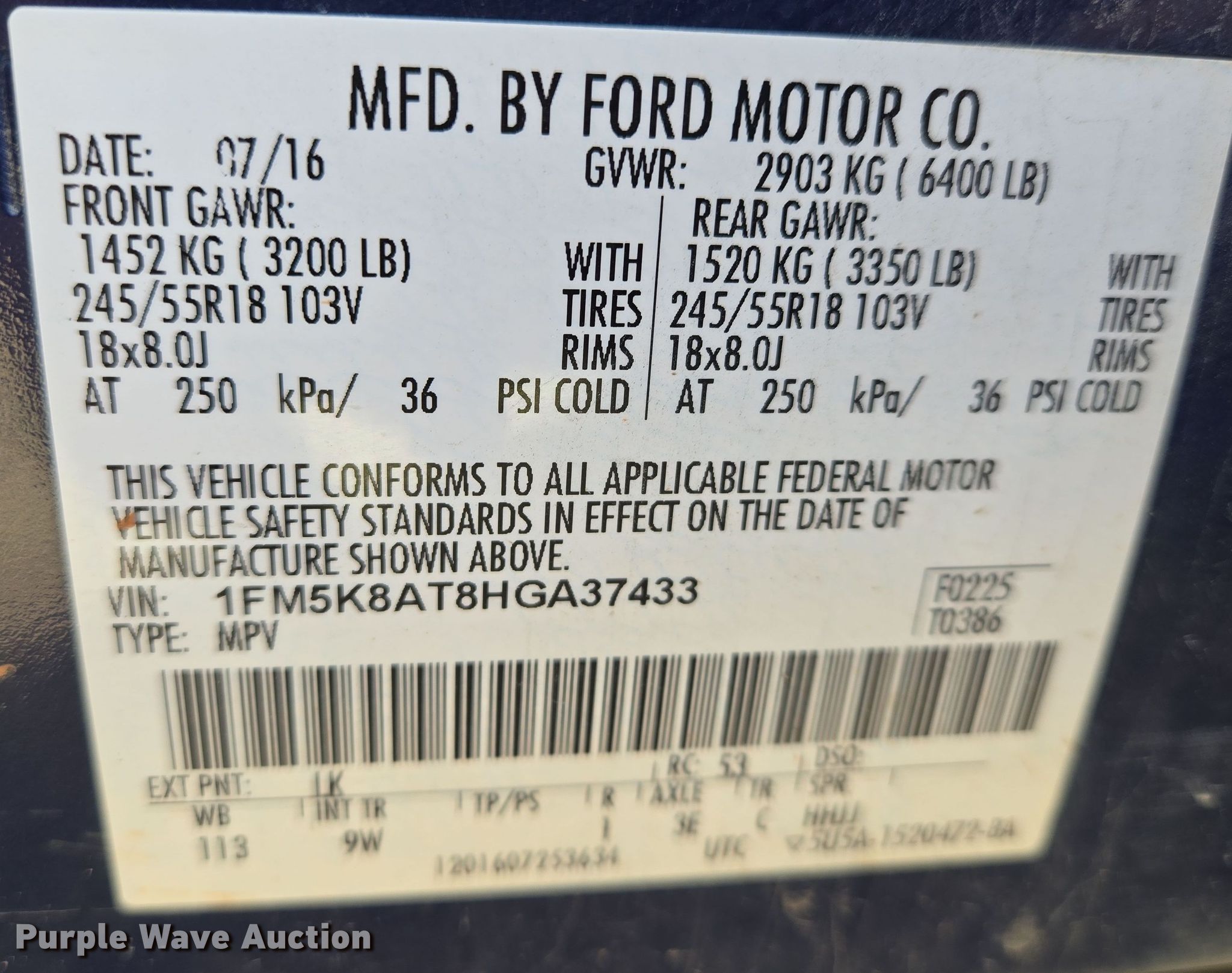 Purple Wave is selling a used Passenger Vehicle in Kansas. This item is a 2017 Ford Explorer Police Interceptor SUV with the following: Miles: 186,790 on odometer, VIN: 1FM5K8AT8HGA37433, Unit #: 3930