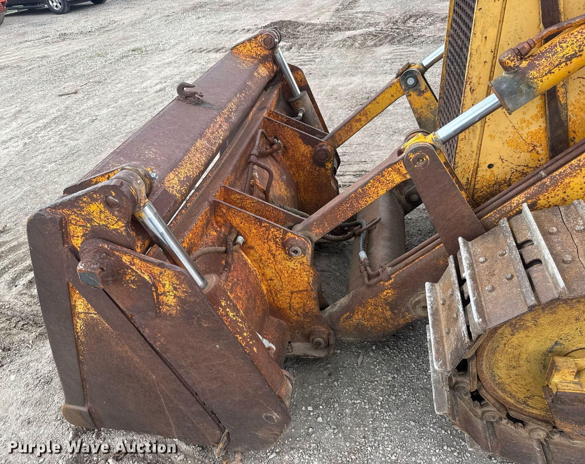 1977 John Deere 555A track loader. Hours: 3,369 on meter, Serial: 276119T. Engine Cylinders: 4, Fuel type: Diesel. Transmission Powershift, 3F - 3R. Operators station OROPS, Bucket controls: Two-lever. Features Bucket Width: 72", Four-in-one. Tracks Width: 14", Grouser pads: Single. Notes Hydraulic leaks. Labette County, KS. Altamont, KS 67330