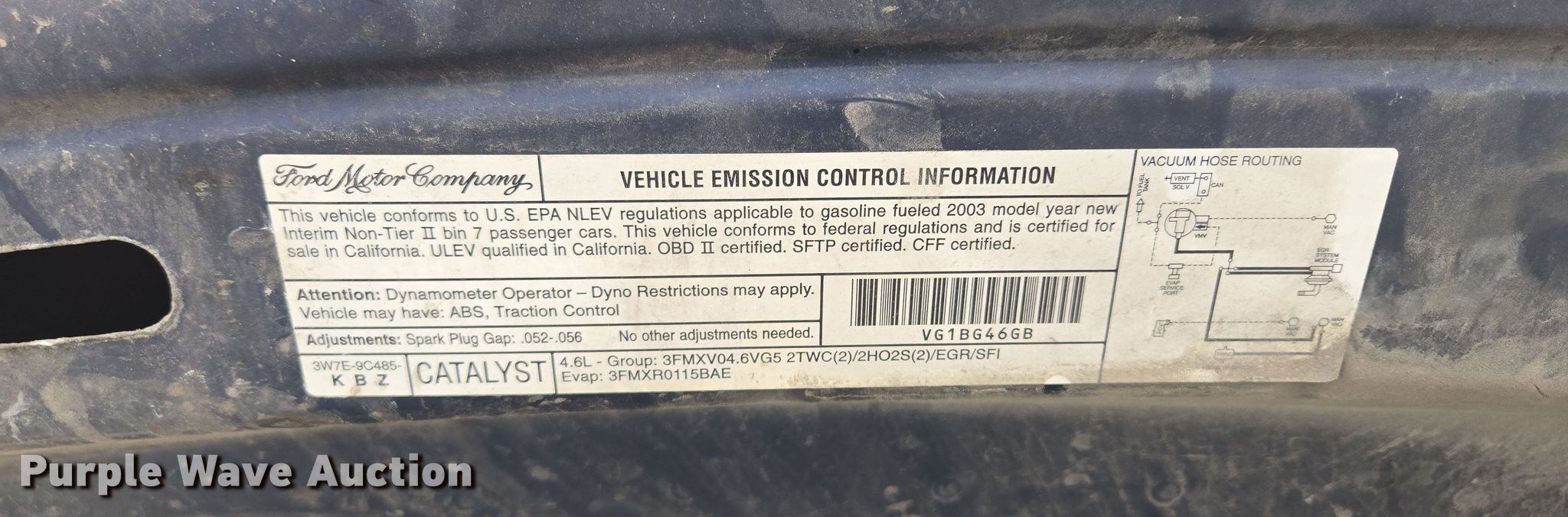 2003 Ford Crown Victoria Police Interceptor. Miles: 186,956 on odometer, VIN: 2FAFP71W93X176428. Engine Displacement: 4.6L V8 SOHC, Cylinders: 8, Fuel type: Gas. Transmission Automatic. Interior AC, Heat, Heated mirrors, Power windows, Power locks. Tires Size: 225/60R16. Notes Driver door issues, missing buttons, Dead battery. Missouri title. Title distribution may be delayed up to 14 days from verification of funds. Board of Police Commissioners. Kansas City, MO 64127