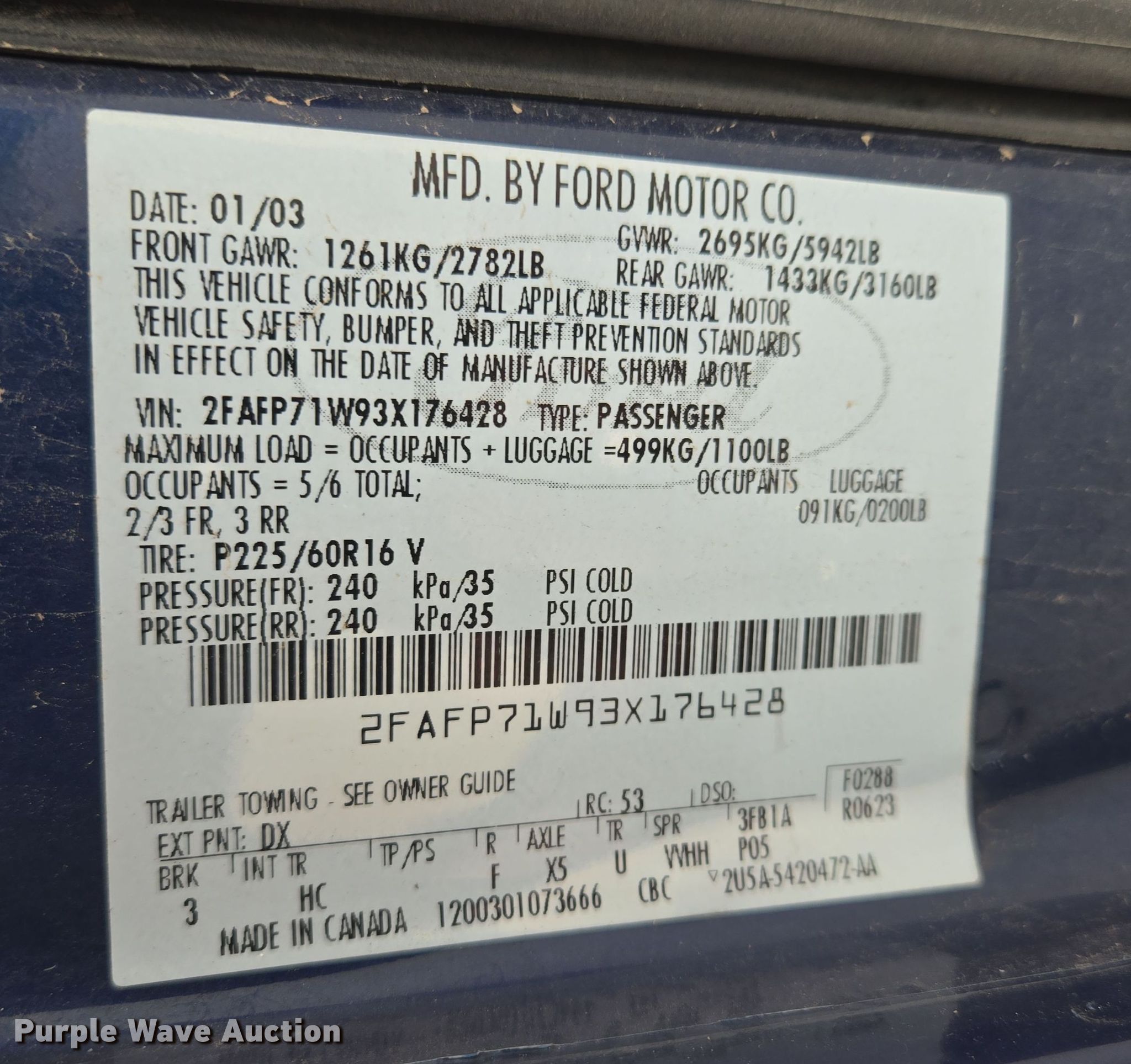 Purple Wave is selling a used Passenger Vehicle in Missouri. This item is a 2003 Ford Crown Victoria Police Interceptor with the following: Miles: 186,956 on odometer, VIN: 2FAFP71W93X176428