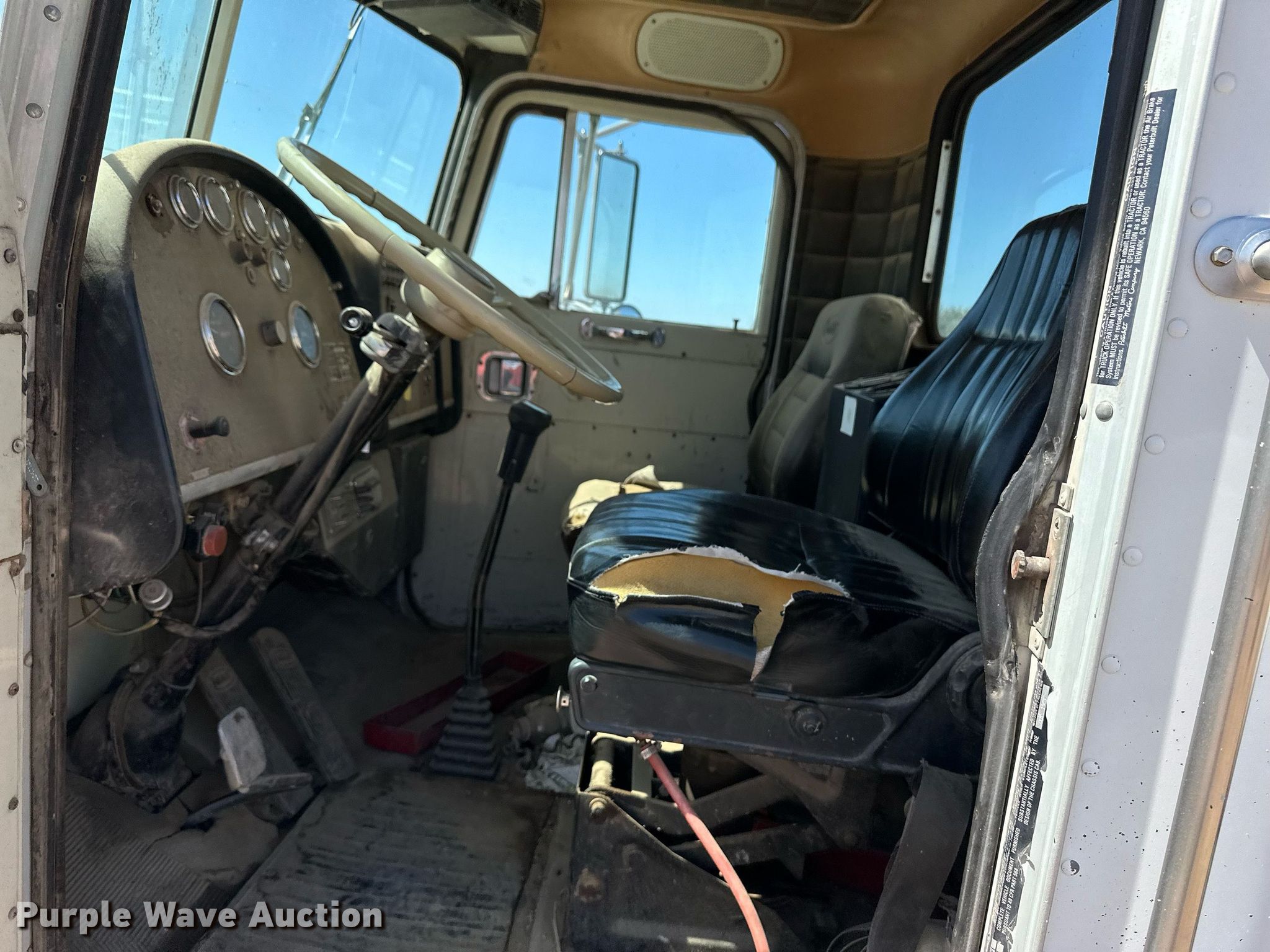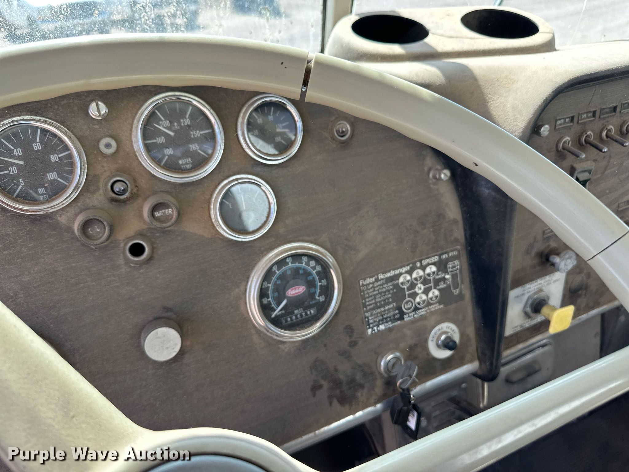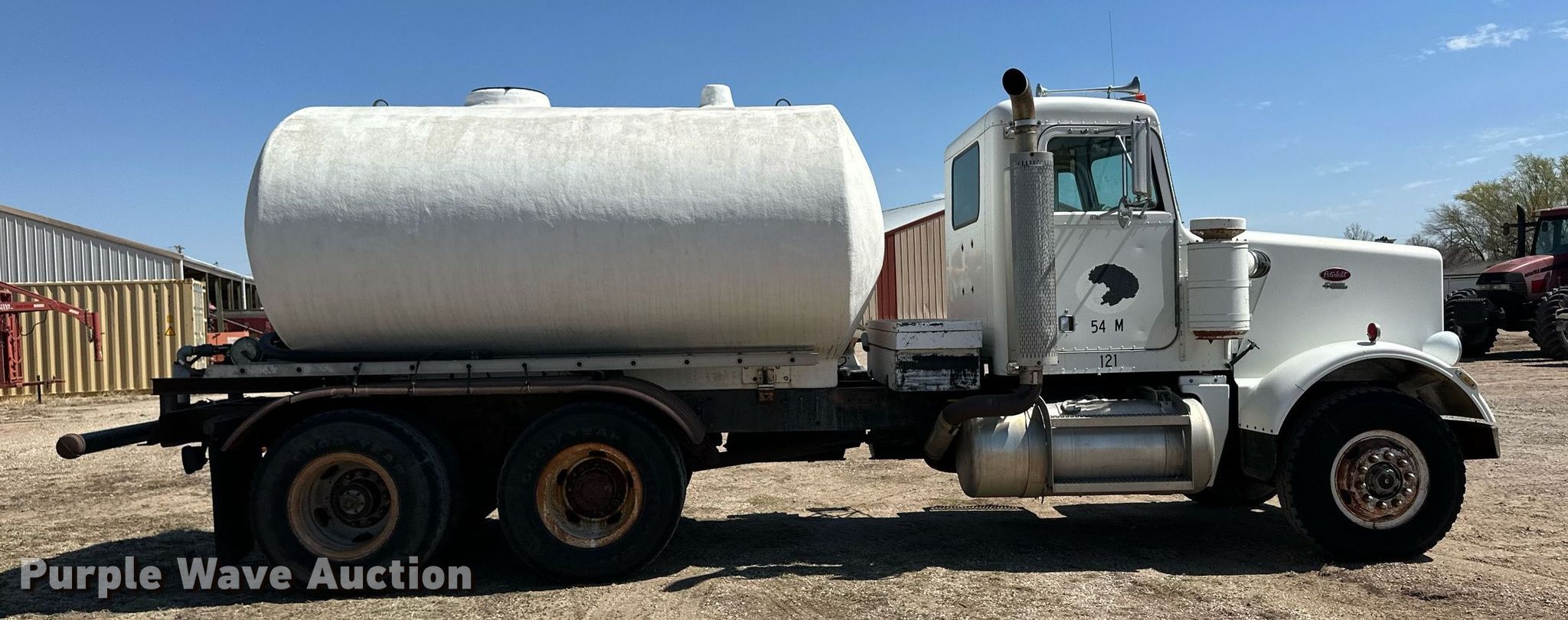 1986 Peterbilt 349 water truck. Miles: 180,529 on odometer, VIN: 1XP4KA9X1GP196404. Engine Displacement: 10.5L, Cylinders: 6, Fuel type: Diesel. Transmission Eaton Fuller Roadranger, Manual, Speed: 9. Chassis Axles: Tandem, Suspension: Spring, Brakes: Air. Interior AC, Heat, Auxiliary controls. Features Bed / tank 12' L x 100" W, Spray bar: Rear, Top fill. Tires Size: 10.00R20. Notes Non-operational AC, Pump issues, locked up. Kansas title. Title distribution may be delayed up to 14 days from verification of funds. Haskell County, KS. Sublette, KS 67877