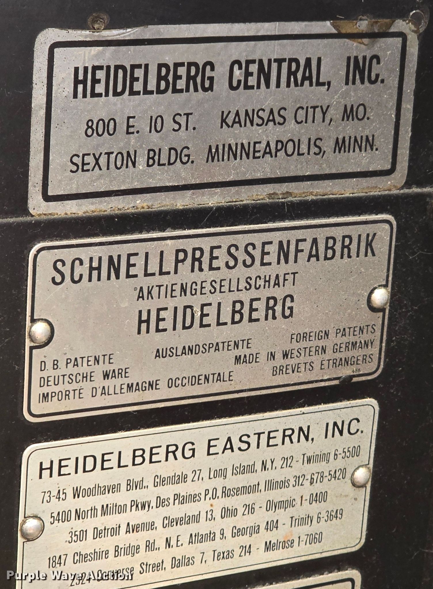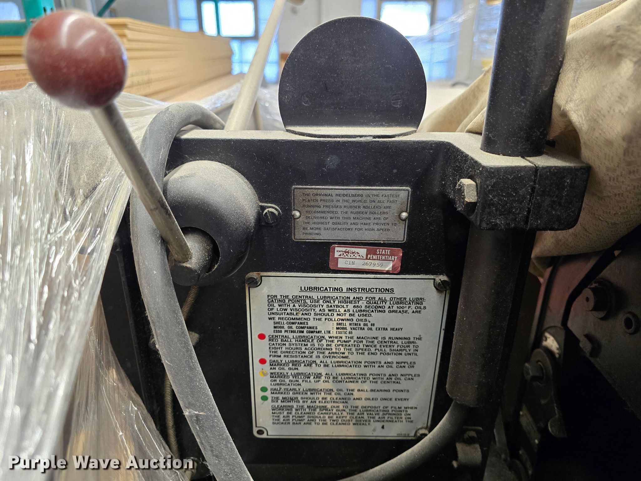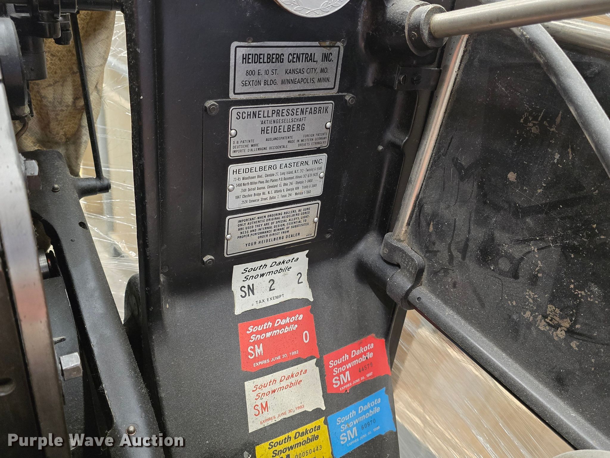 Purple Wave is selling a used Copy or Printing Machine in South Dakota. This item is a Heidelberg printing press with the following: Unit #: PLI01