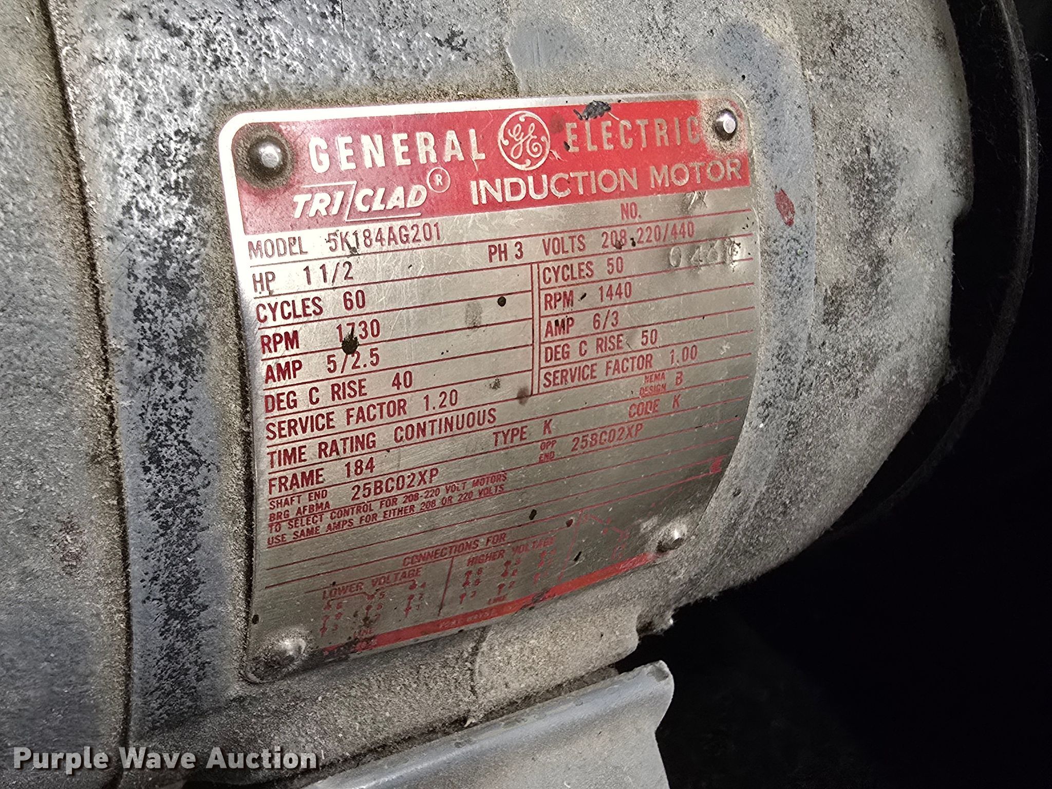 Heidelberg printing press. Unit #: PLI01. Electric Motor General Electric 5K184AG201, HP: 1.5, Phase: Three, Volt: 208-220/440. State of South Dakota. Sioux Falls, SD 57104