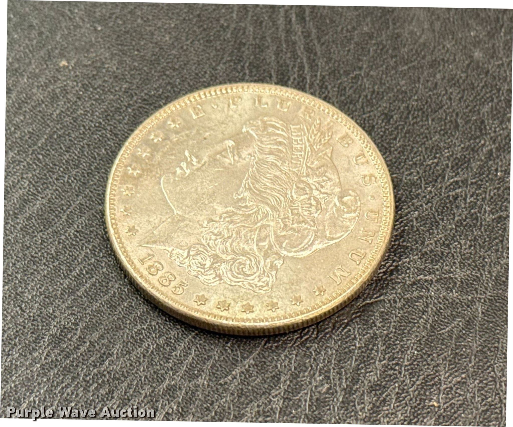 Purple Wave is selling a used All Other Household Items in Oklahoma. This item is a 1885 Morgan silver dollar coin with the following: Unit #: 1003