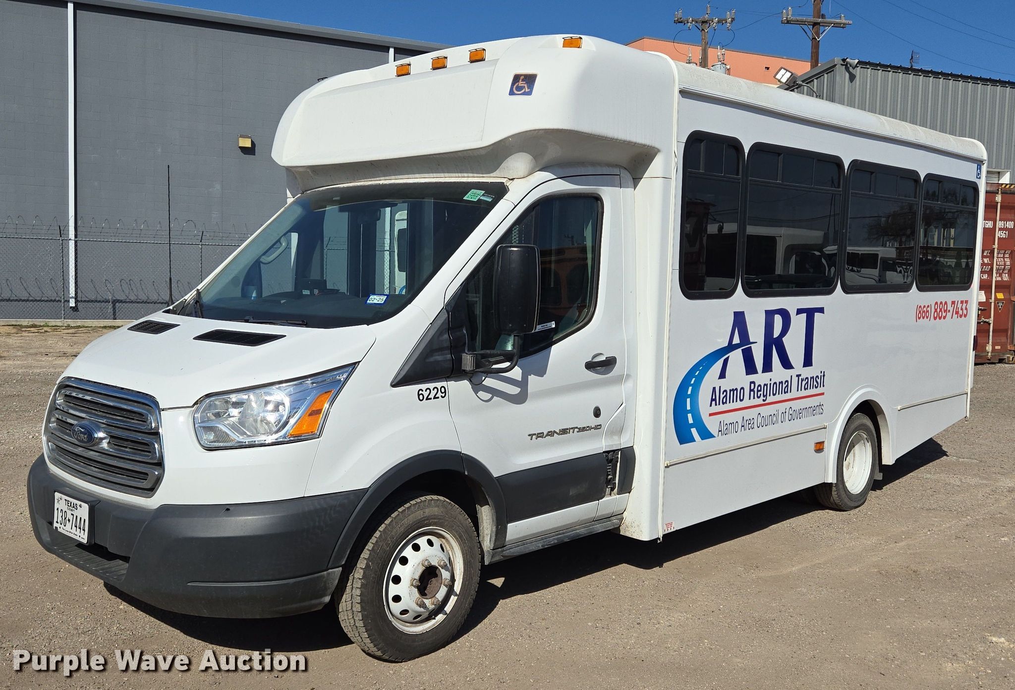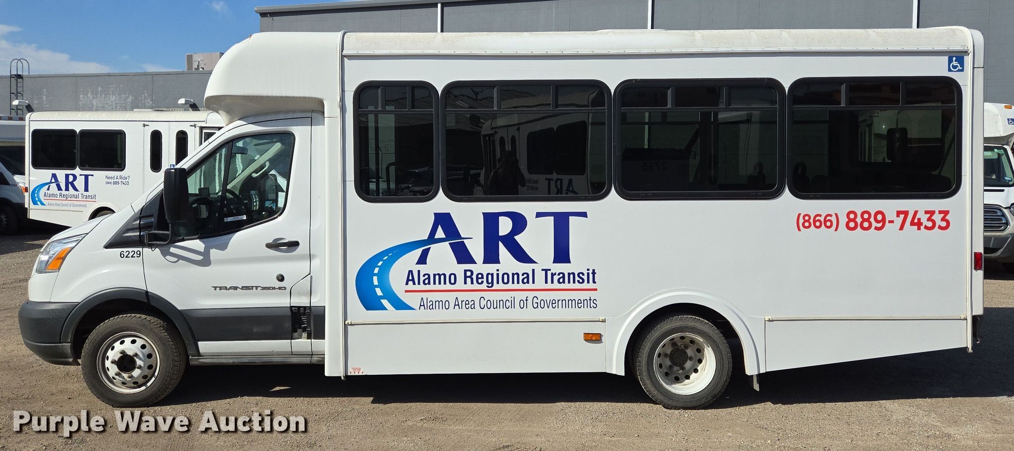2018 Glaval Ford Transit 350 shuttle bus. Miles: 177,804 on odometer, VIN: 1FDES8PM4JKA06229, Unit #: 6229. Engine Displacement: 3.7L V6 DOHC, Cylinders: 6, Fuel type: Gas. Transmission Automatic. Chassis Axles: Single, Suspension: Spring, GVWR: 10,360 lbs, Wheelbase: 156". Interior AC, Heat, Cruise control, Backup camera, Auxiliary controls, Electric passenger sliding door, Passengers: 12, Wheelchair lift. Tires Size: 195/75R16. Notes Dash warning indicator: Check engine, Dead battery, Decals coated with paint, Engine issues, overheats , Non-operational electric passenger sliding door. Texas title. Title distribution may be delayed up to 14 days from verification of funds. Alamo Area Council of Governments. San Antonio, TX 78216