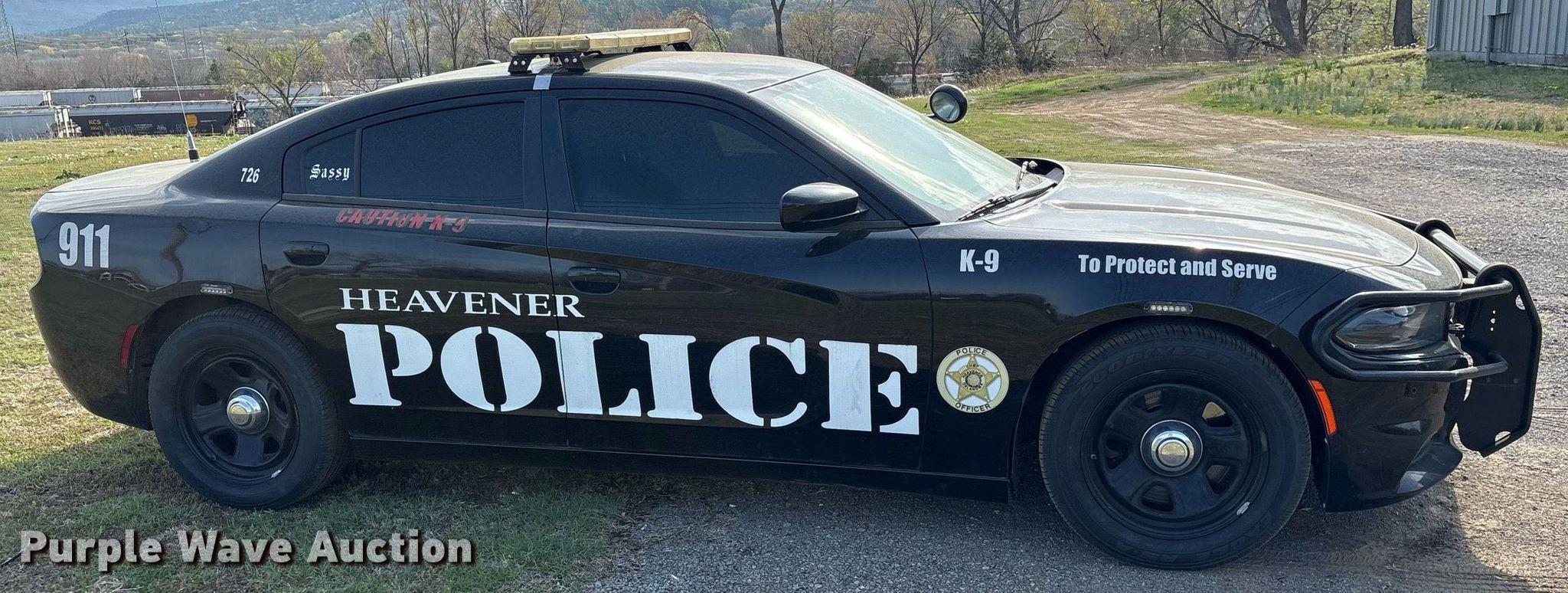 2018 Dodge Charger Police. Miles: 59,043 on odometer, VIN: 2C3CDXAG9JH182157, Unit #: 726. Engine Displacement: 3.6L V6 DOHC, Cylinders: 6, Fuel type: Gas. Transmission Automatic. Interior AC, Heat, Seat: Power driver, Heated mirrors, Power windows, Power locks, Cruise control, Backup camera. Feature K9 unit. Tires Size: P225/60R18. Notes Dash warning indicator: Check engine, TPMS, Traction control, Possible engine issues, runs rough. Oklahoma title. Seller is a government entity who will be assigning and distributing the title. Please contact the seller for distribution questions. Title distribution may be delayed up to 14 days from verification of funds. Heavener, OK 74937