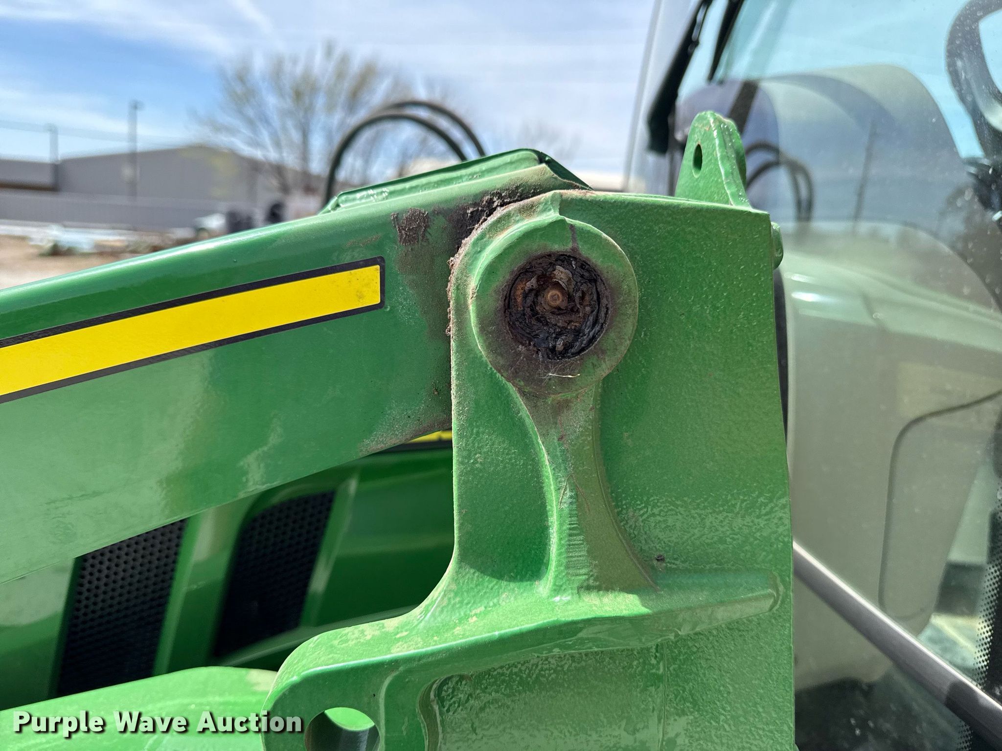 2022 John Deere 4052R MFWD tractor. Hours: 1,017 on meter, Serial: 1LV4052RLNN406154. Engine Yanmar, Cylinders: 4, Fuel type: Diesel. Transmission Hydrostatic, Differential lock. Operators station AC, Heat. Features PTO: 540, Three point Top link, Hydraulic remote sets Front: 1, Loader John Deere 440R, Controls: Joystick, Bucket Width: 71", Box blade Bush Hog, Width: 73", Ripper teeth: 6, Hydraulic grapple John Deere, Width: 34", Quick coupler Manual. Tires Front: 260/70-16, Rear: 440/80-24. Tri Star Construction LLC. Tulsa, OK 74116