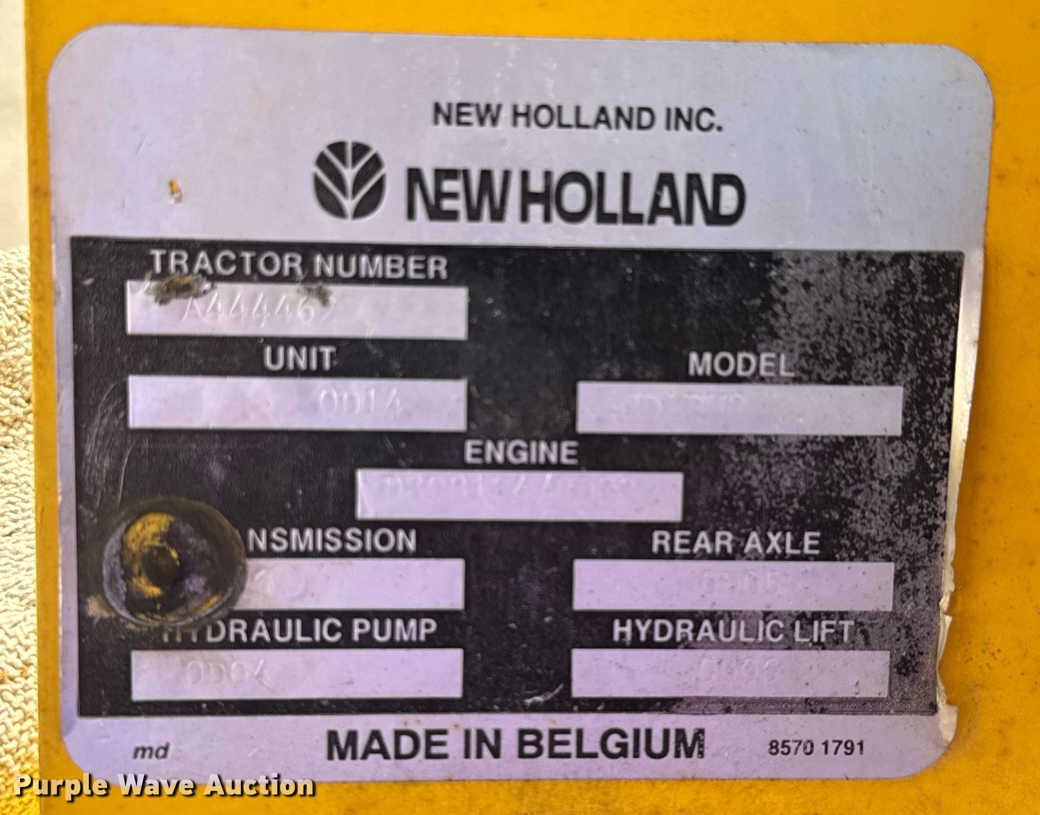 Purple Wave is selling a used Tractor in Oklahoma. This item is a New Holland 345D MFWD tractor with the following: Hours: 4,510 on meter, Serial: A444462, Unit #: F4