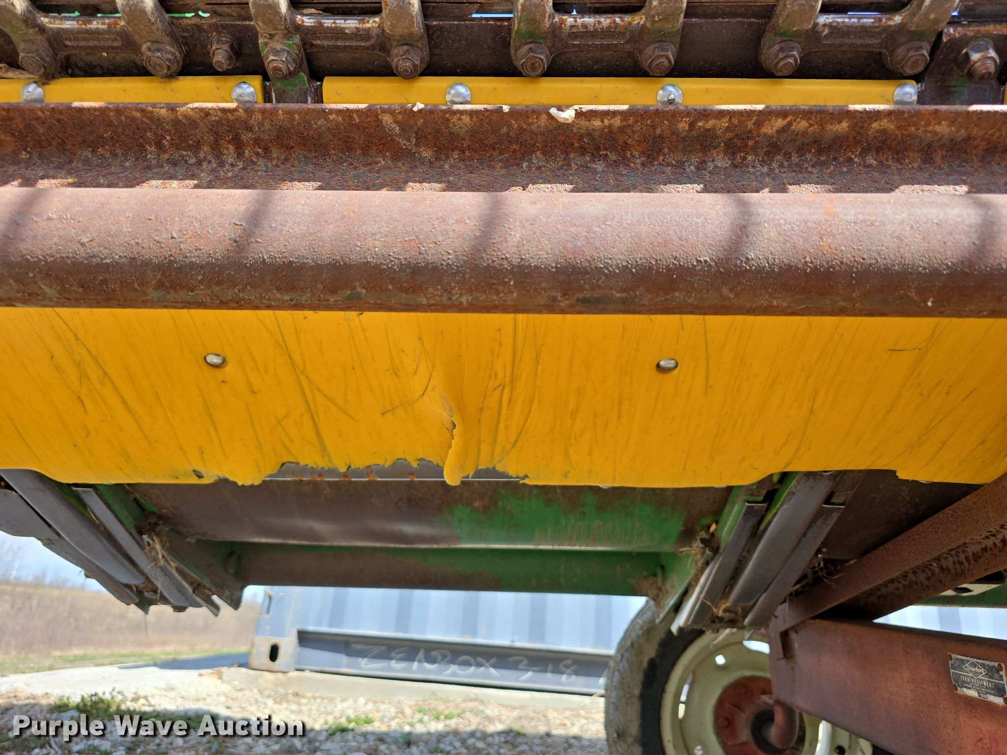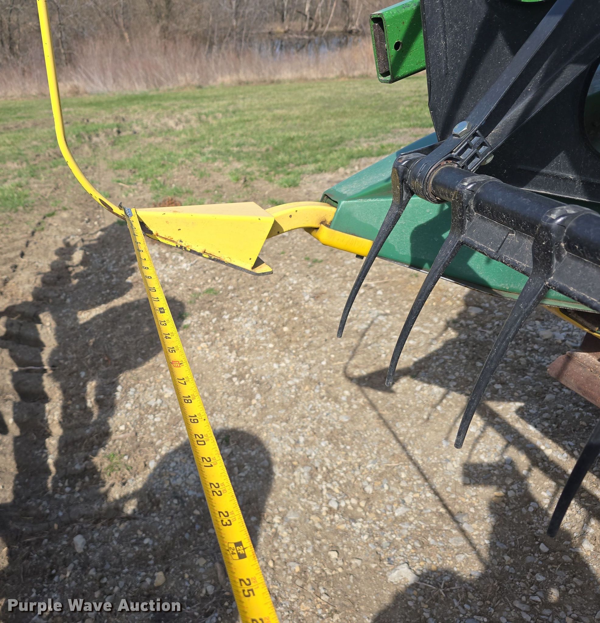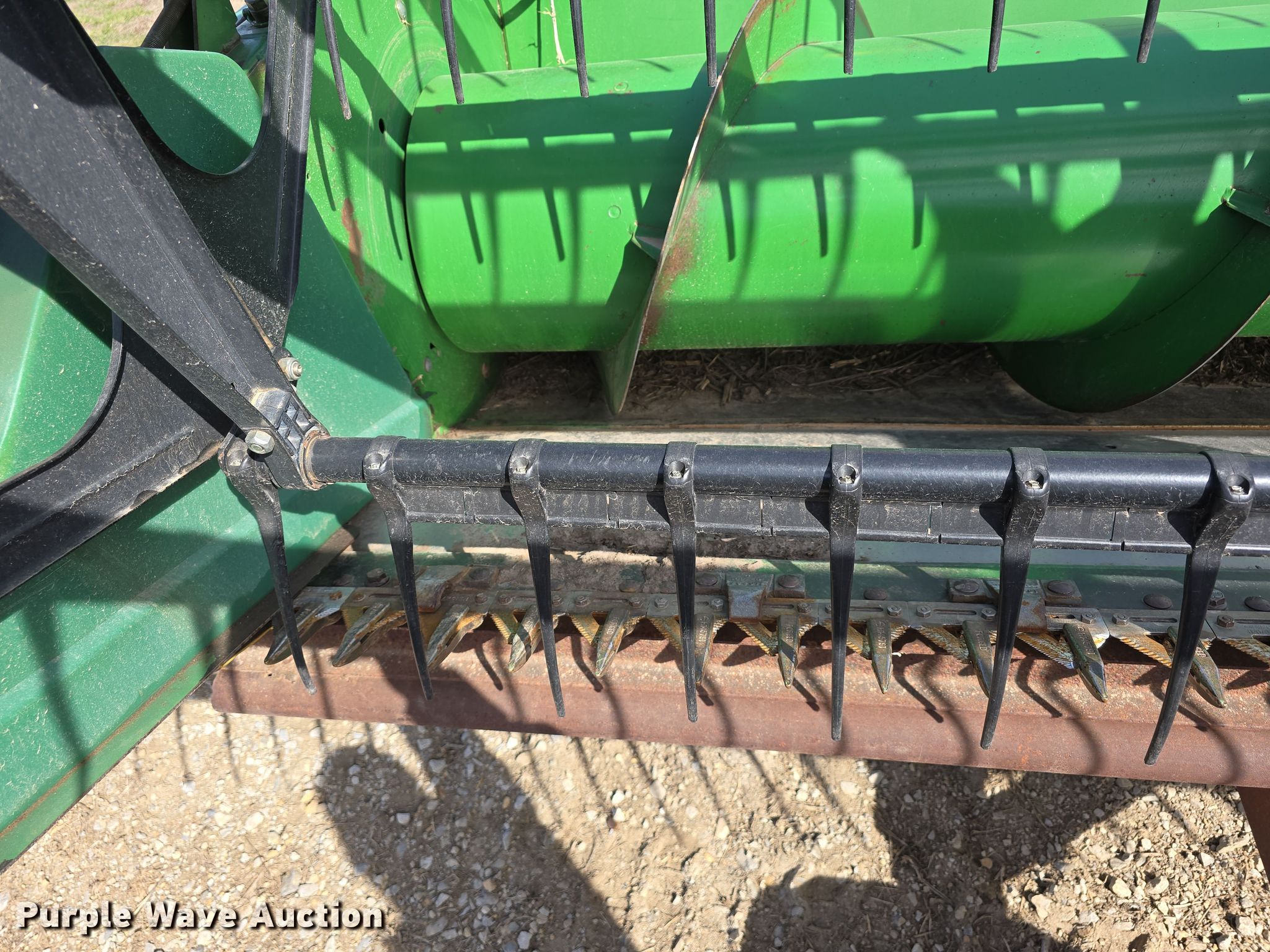 1999 John Deere 920 flex head. Serial: H00920F680699. Features Width: 20', Reel: Finger Hydraulic fore/aft, Hydraulic reel height control, Skid plates: Poly, Drivelines: Dual. Tires Tire size: 195/65R15 195/60R15, P205/75R15. Trailer Dearborn 21-2 running gear, 25' L x 80" W. King City, MO 64463