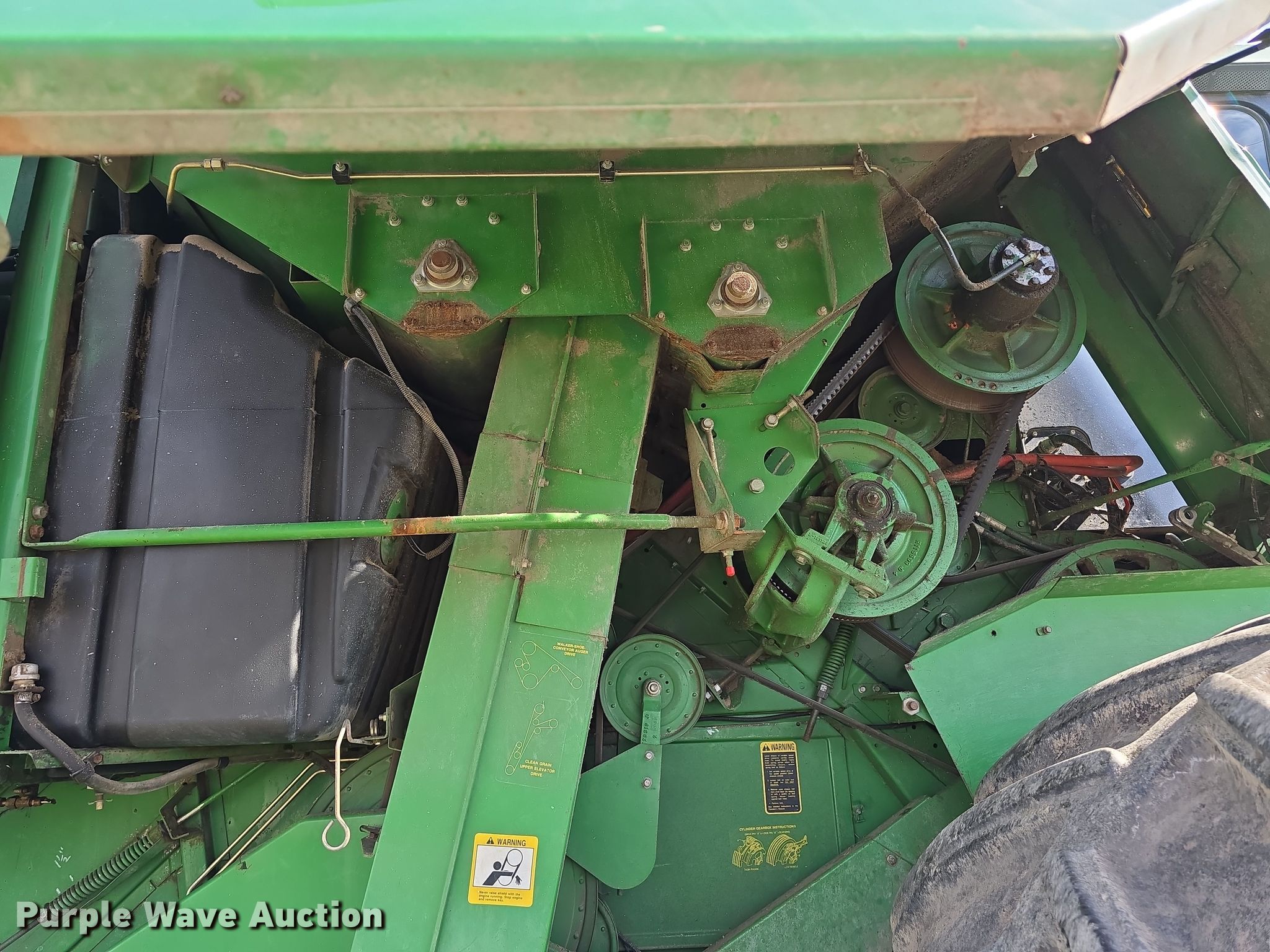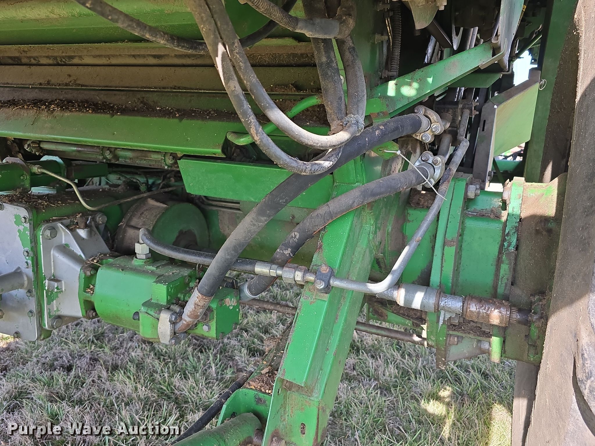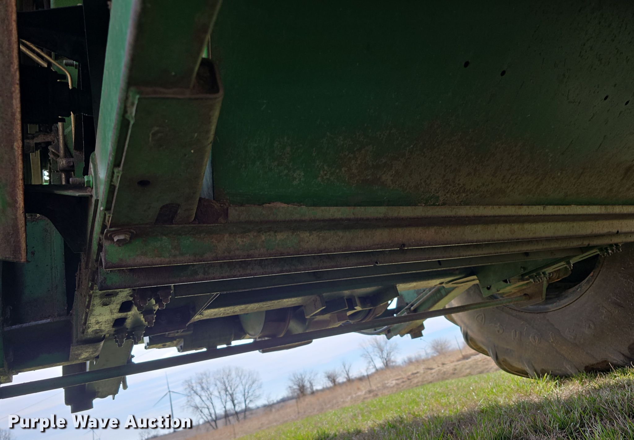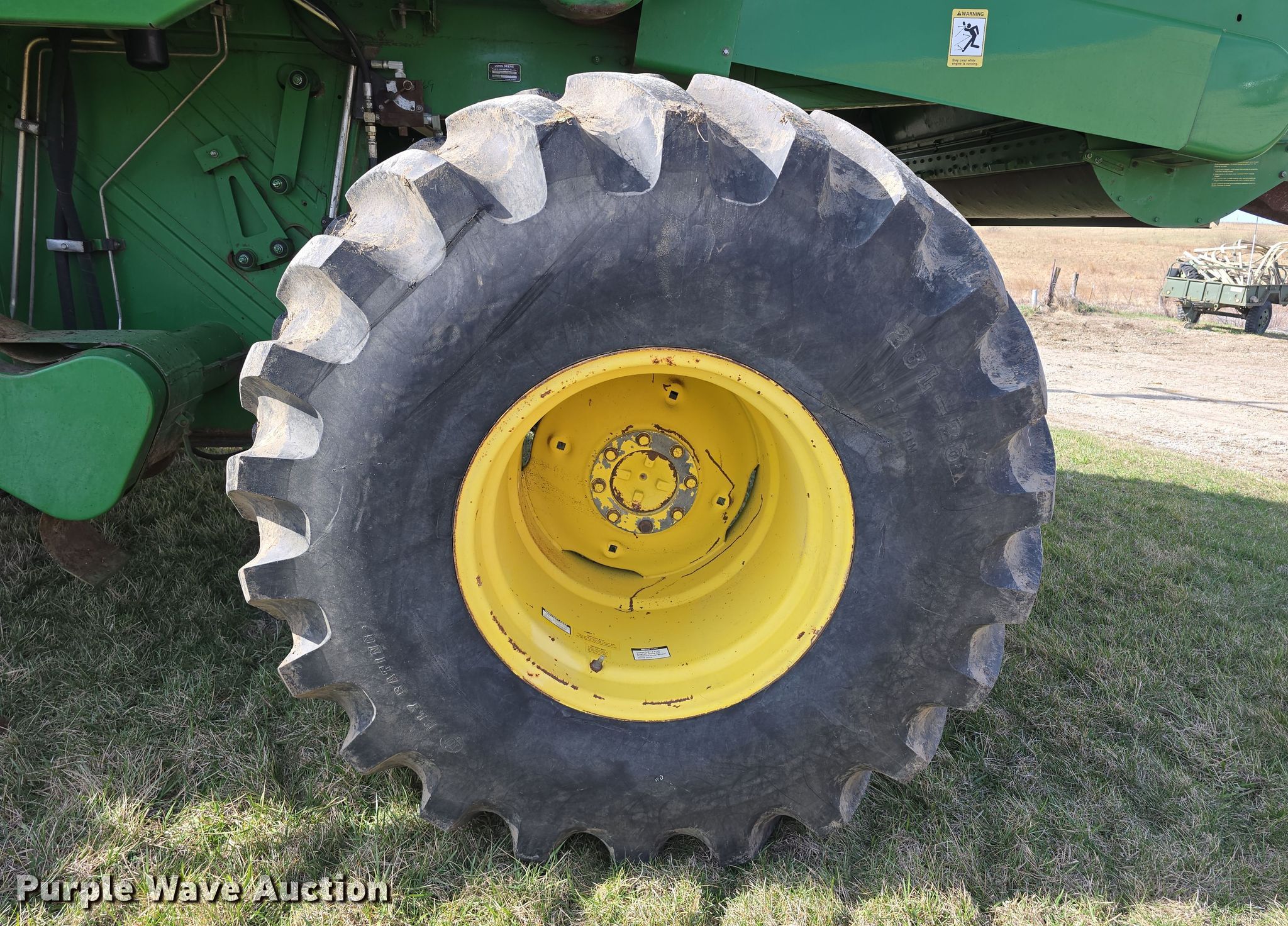 1989 John Deere 9600 RWA combine. Engine hours: 2,936 on meter, Separator hours: 2,072 on meter, Serial: H09600X632469. Engine John Deere, Cylinders: 6, Fuel type: Diesel. Transmission Hydrostatic, 6F - 6R. Operators station AC, Heat. Features Feederhouse: Reverser, Chaff spreader, Straw chopper, Bin: Extensions, Unloading auger length: 20'. Tires Front: 68x50.00-32 Flotation, Rear: 28L-26. King City, MO 64463