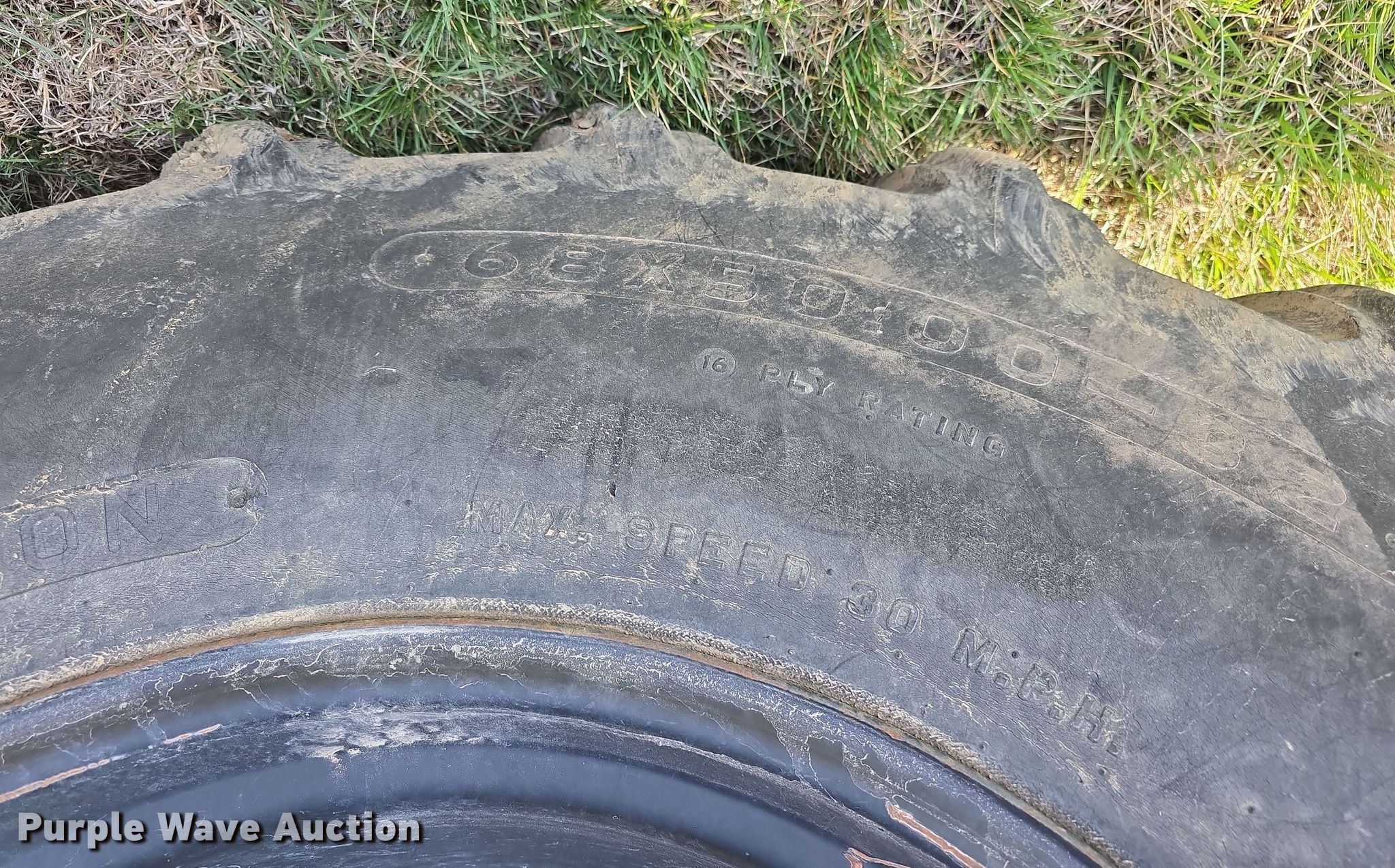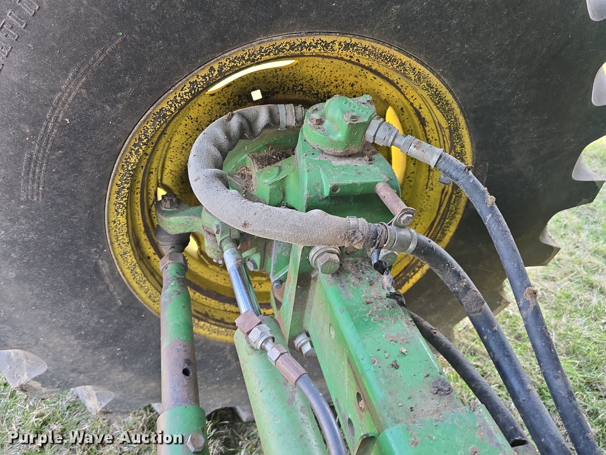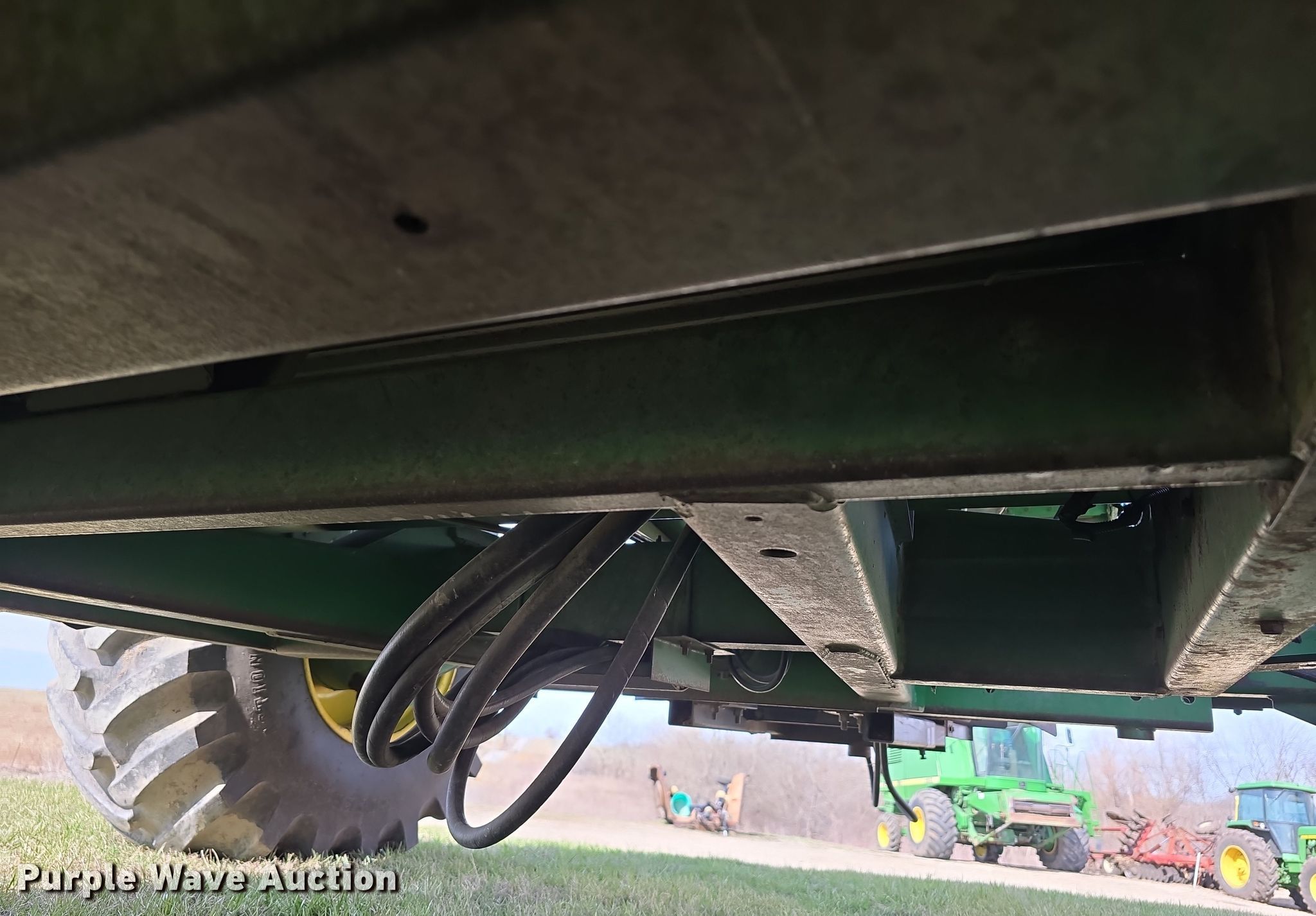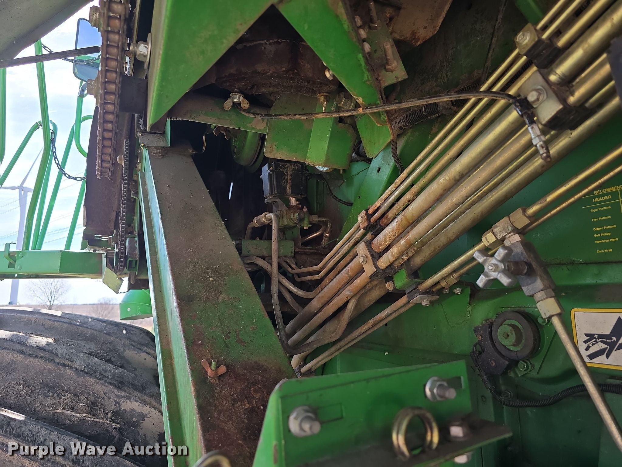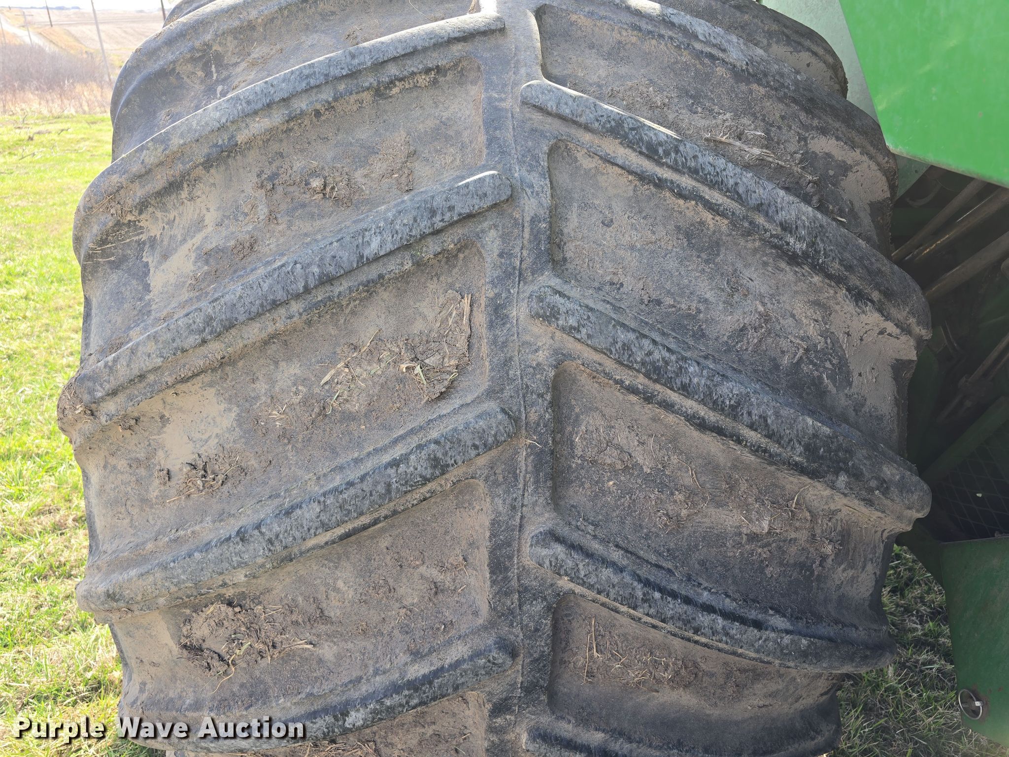 1989 John Deere 9600 RWA combine. Engine hours: 2,936 on meter, Separator hours: 2,072 on meter, Serial: H09600X632469. Engine John Deere, Cylinders: 6, Fuel type: Diesel. Transmission Hydrostatic, 6F - 6R. Operators station AC, Heat. Features Feederhouse: Reverser, Chaff spreader, Straw chopper, Bin: Extensions, Unloading auger length: 20'. Tires Front: 68x50.00-32 Flotation, Rear: 28L-26. King City, MO 64463