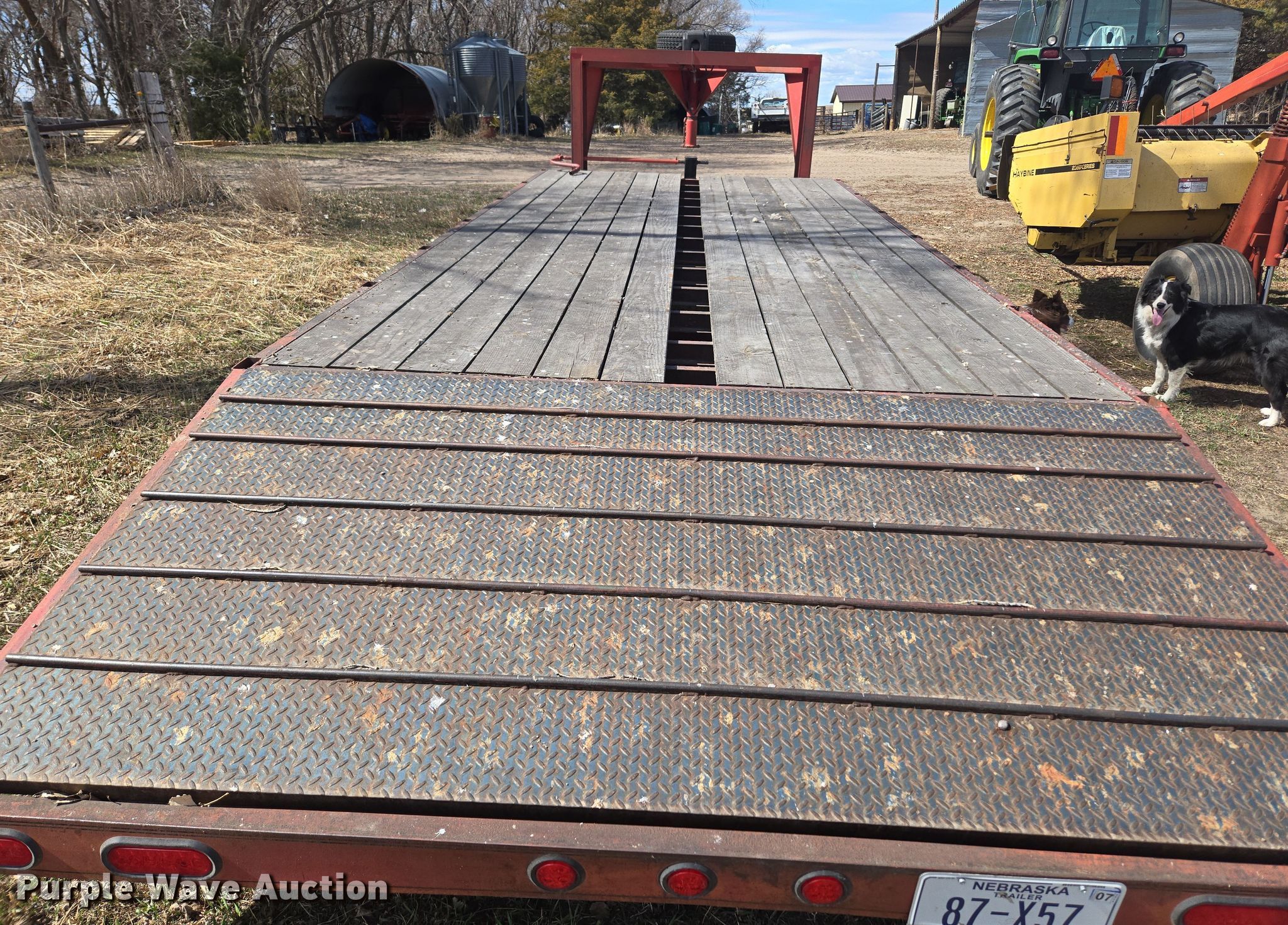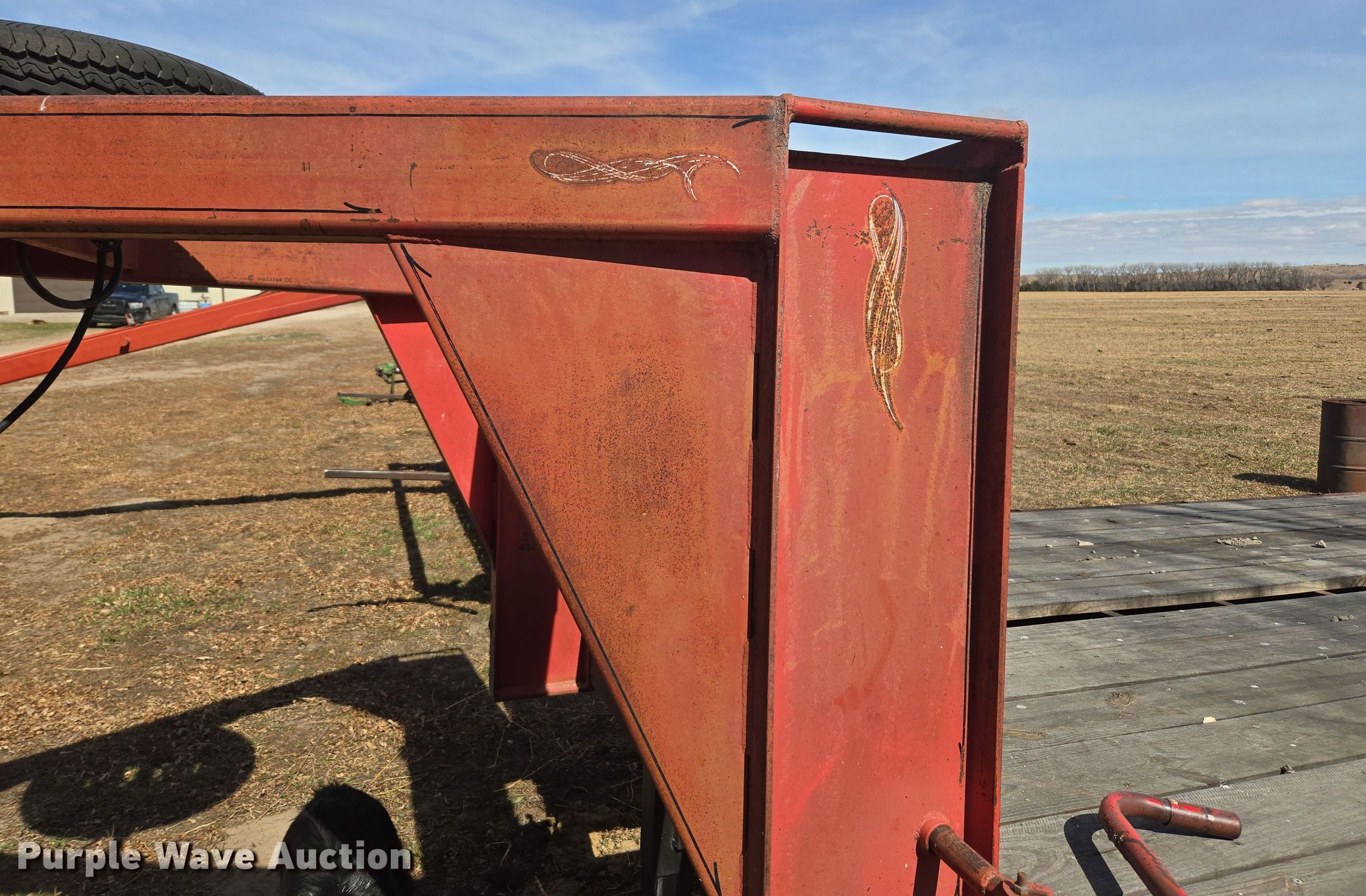 1991 equipment trailer. VIN: 06021706. Dimensions Overall: 30' 5" L x 99" W, Deck: 17' 11" L x 99" W, Tail length: 4' 6". Features Deck type: Wood, Winch. Chassis Hitch: Gooseneck, Landing gear: Single, Brakes: Electric, Axles: Tandem. Tires Steel wheels, Size: 8.75R16.5. Notes Unknown operating condition of winch. Transfer of ownership documentation will be a bill of sale. Stapleton, NE 69163