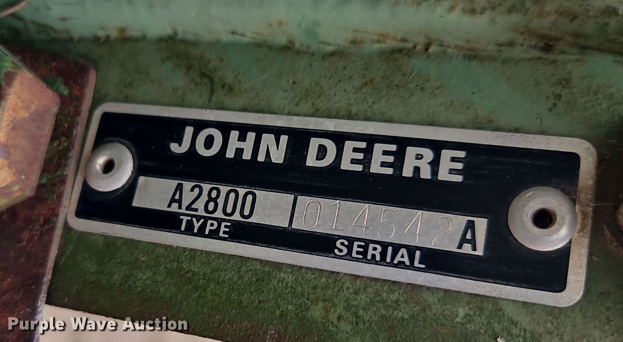 John Deere A2800 seven bottom plow. Features. Hydraulic lift, Hitch: Three point. Tires Tire size: 7.60-15, Gauge wheels Size: 11L-15. Butler, MO 64730