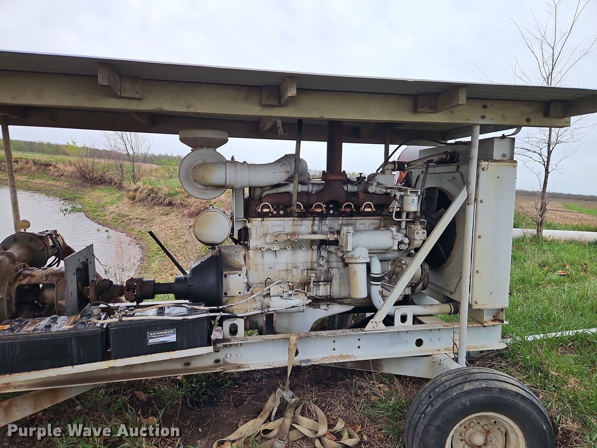 Irrigation pump. Engine. Cummins N855P235, Serial: 45595, Cylinders: 6, Fuel type: Diesel. Features Inlet: 8", Outlet: 6", Hose length: Approx. 30'. Tires Size: 11L-15. Butler, MO 64730