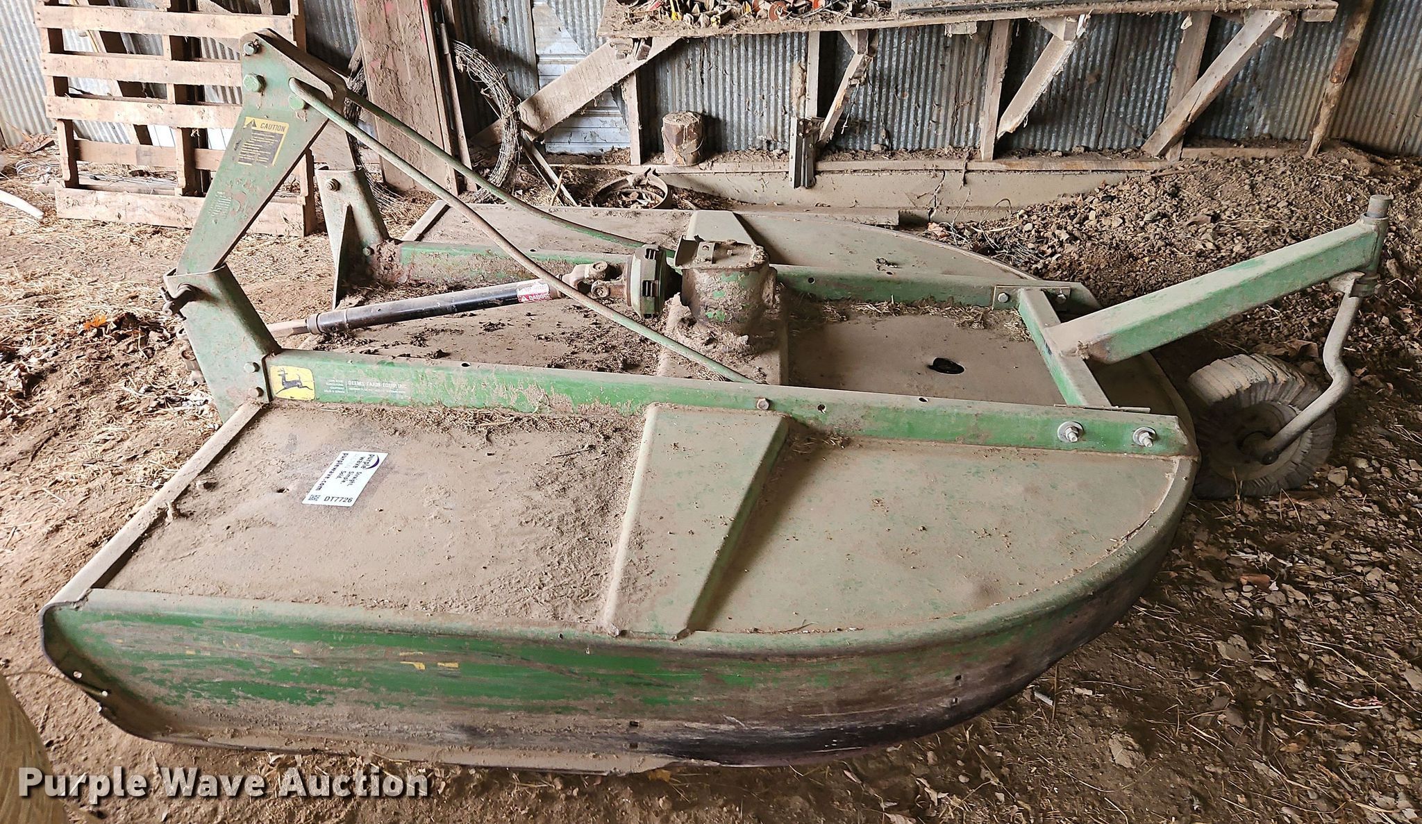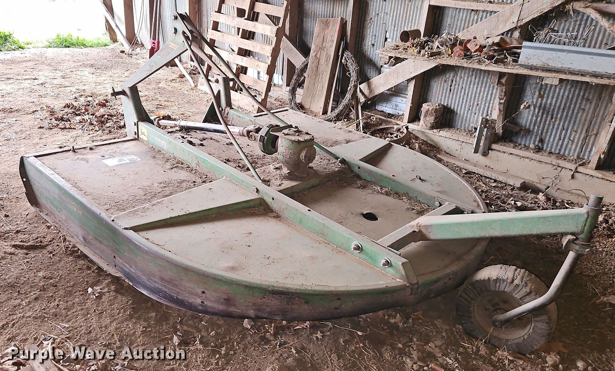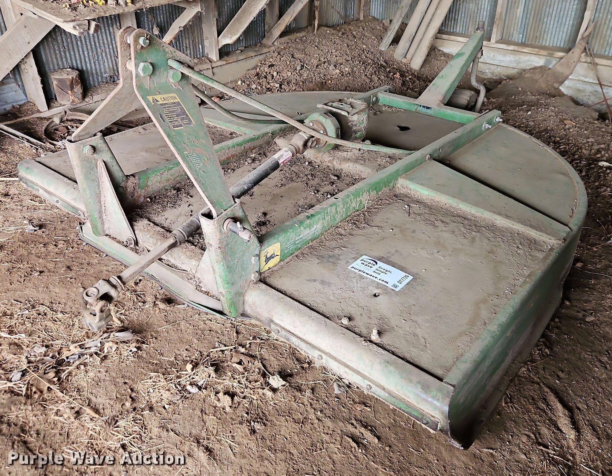 Purple Wave is selling a used Mower, Cutter, Shredder in Missouri. This item is a John Deere rotary mower with the following: Width: 7', PTO: 540, Hitch: Three point
