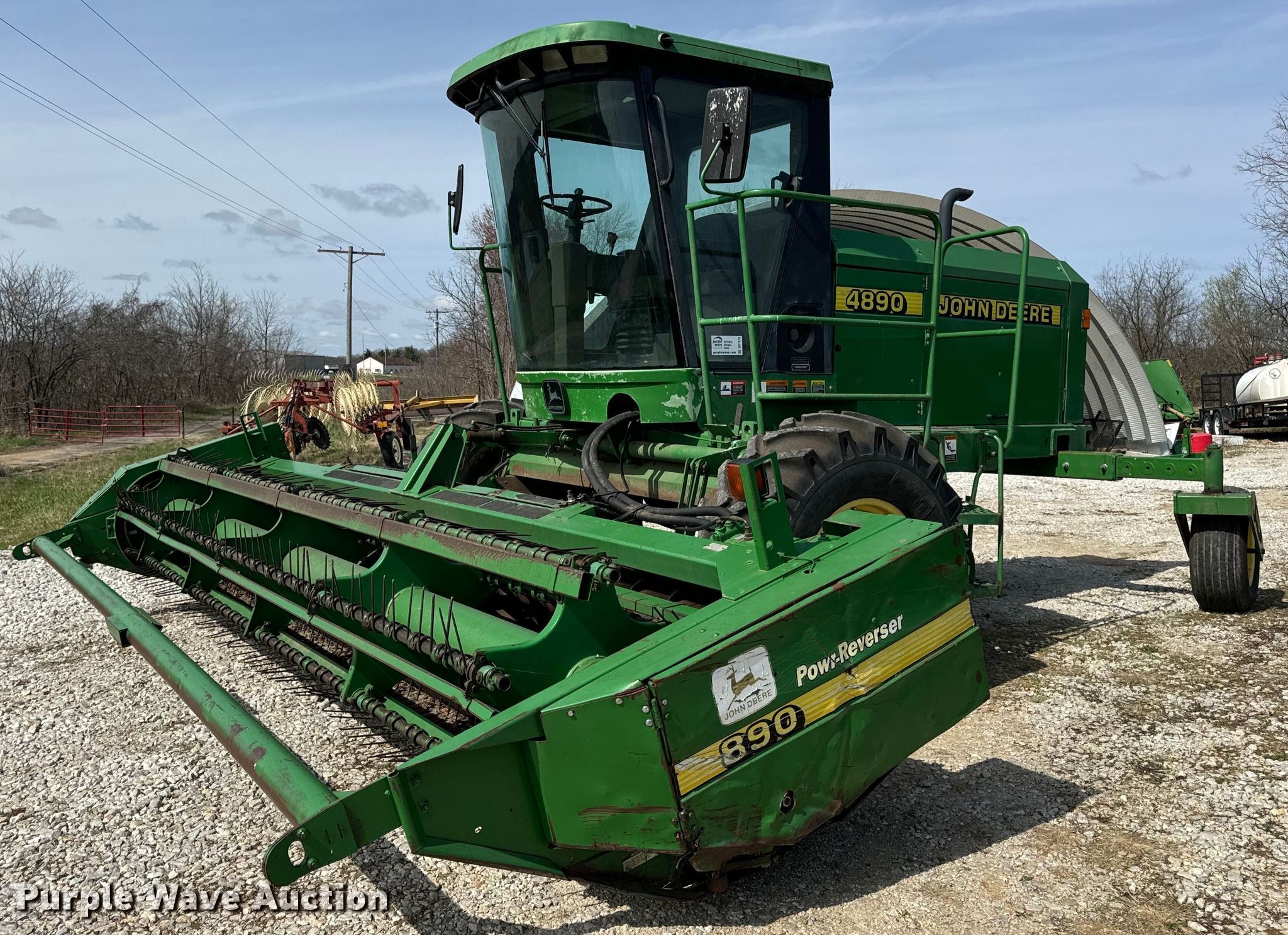 Purple Wave is selling a used Windrower Self Propelled in Missouri. This item is a 1998 John Deere 4890 swather / windrower with the following: Engine hours: 5,392 on meter, Header hours: 3,847 on meter, Serial: E04890X120231