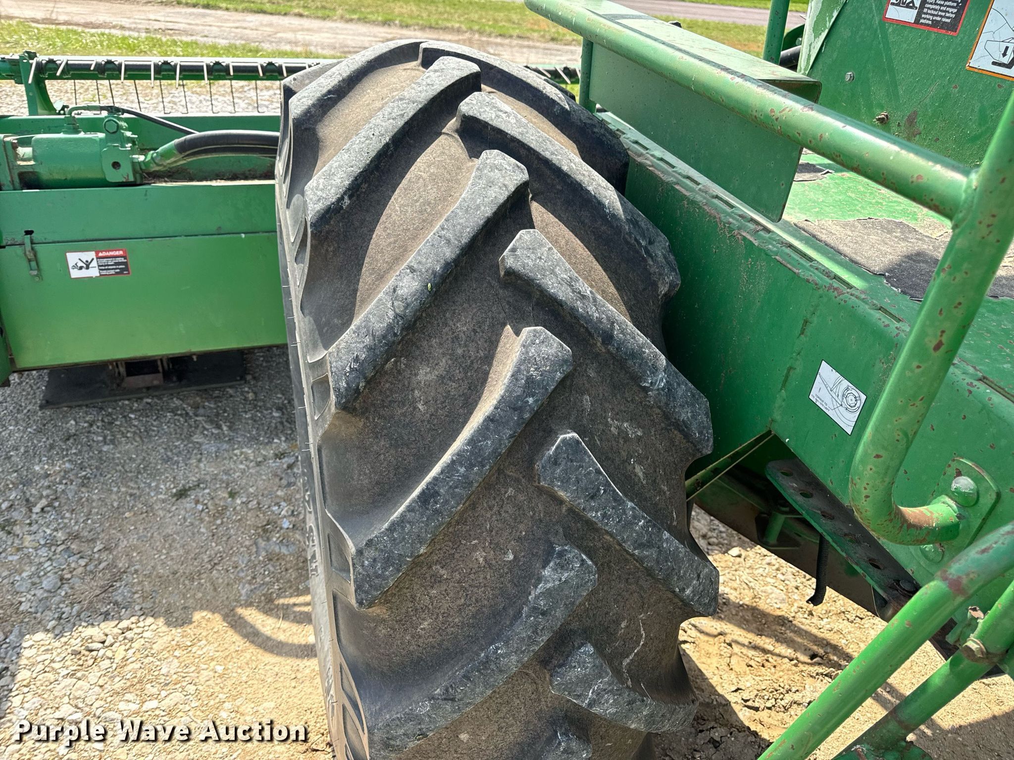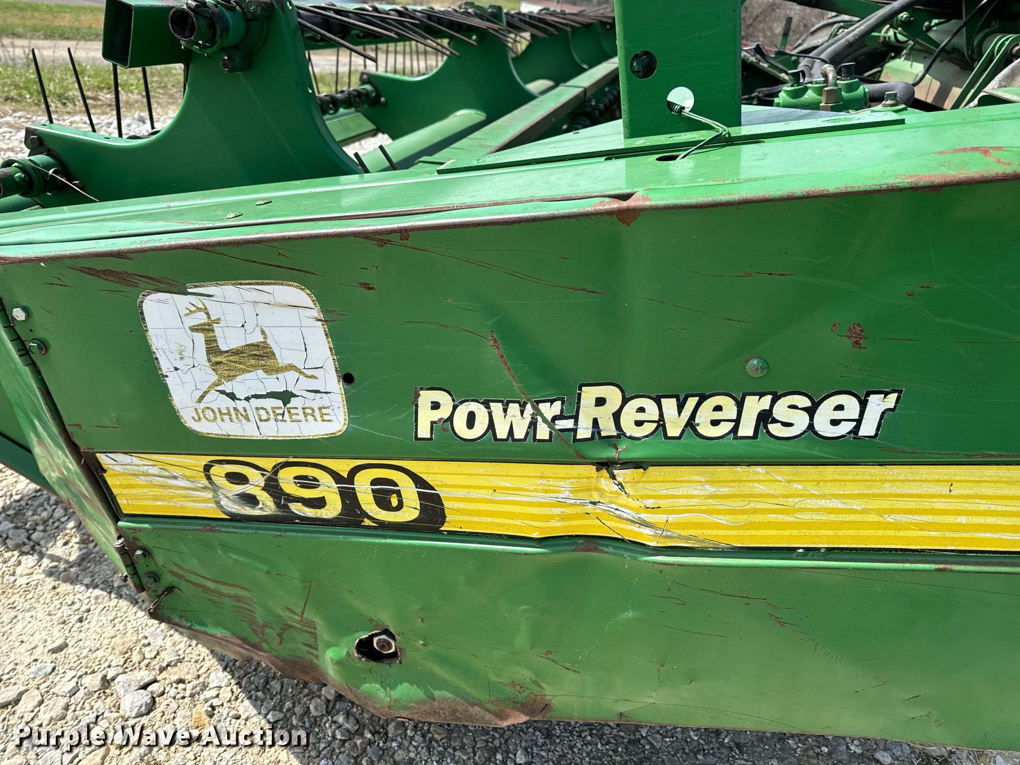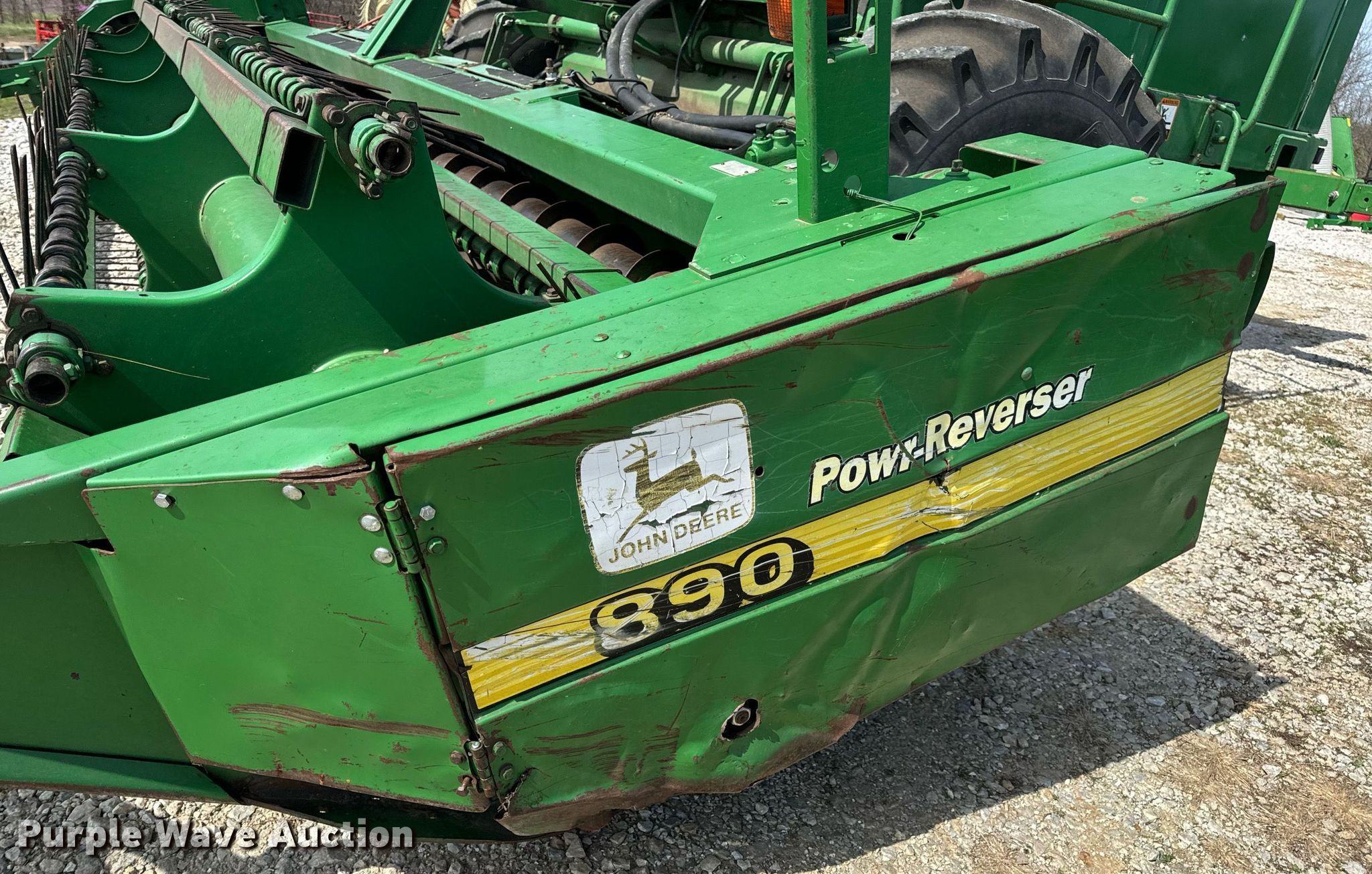 1998 John Deere 4890 swather / windrower. Engine hours: 5,392 on meter, Header hours: 3,847 on meter, Serial: E04890X120231. Engine John Deere 4045TE050, Displacement: 4.5L, Cylinders: 4, Fuel type: Diesel. Transmission Hydrostatic, Two speed travel. Operators station AC, Heat. Features Head Sickle, John Deere 890, Serial: E00890X123041, Width: 18', Power reverser, Hydraulic fore/aft, Conditioners: Rubber/ rubber. Tires Front: 18.4-26, Rear: 12.5-16SL. Notes Possible AC issues, may need charged. Blackwater, MO 65322