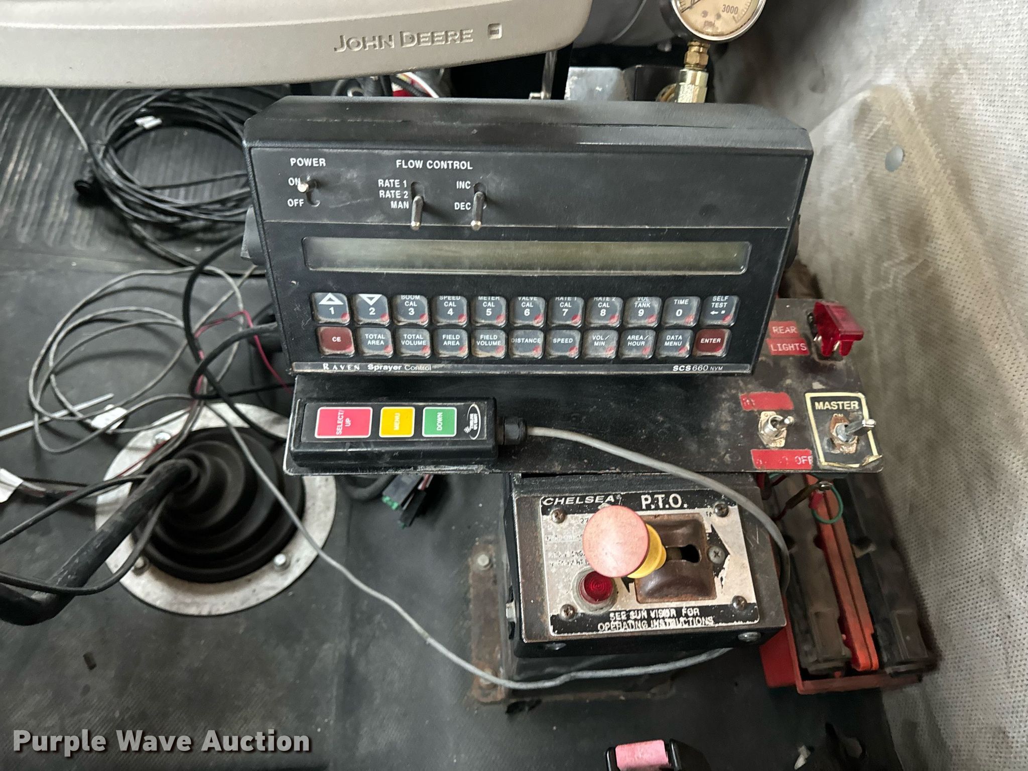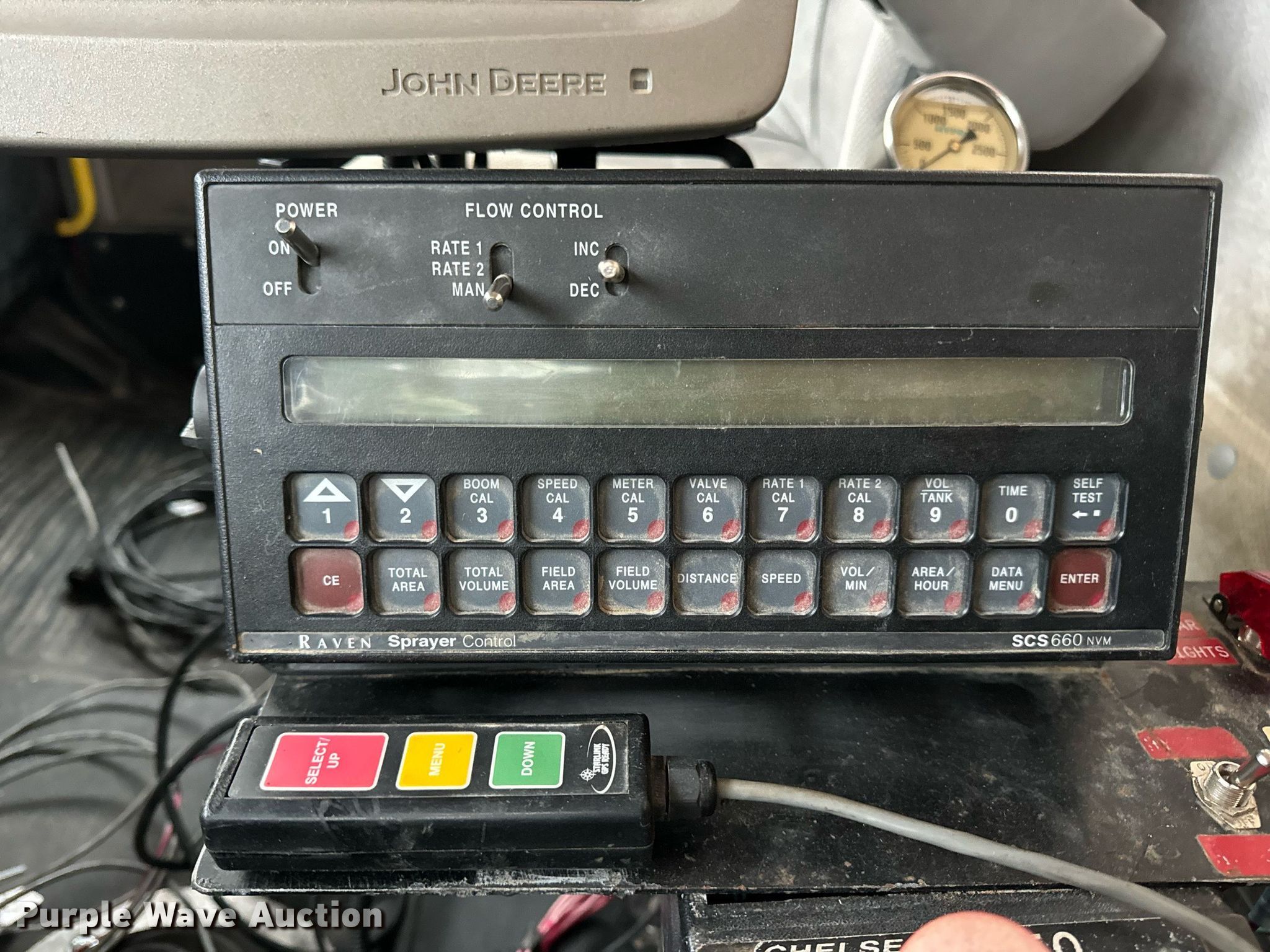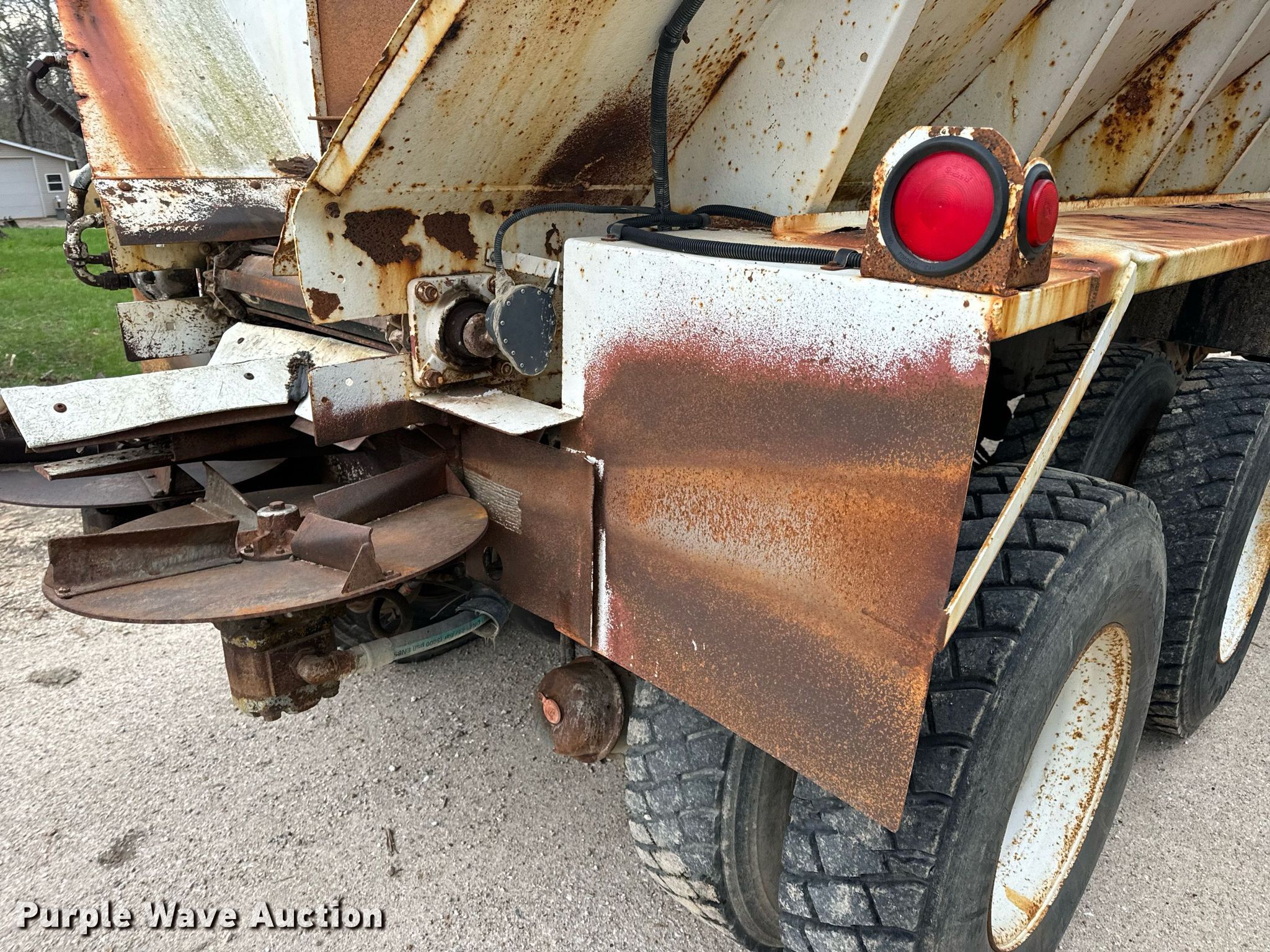 1999 Freightliner FL80 applicator truck. Miles: 43,342 on odometer, Engine hours: 9,441 on meter, VIN: 1FVXJLBB0XHA16343. Engine Cummins, Displacement: 8.3L, Cylinders: 6, Fuel type: Diesel. Transmission Eaton Fuller 8LL, Manual, Speed: 10. Chassis Axles: Tandem, Suspension: Spring over walking beam, Brakes: Air, PTO, GVWR: 58,000 lbs IAWR: 20,000 lbs, RAWR: 20,000 lbs. Operators station AC, Heat. Features Dry fertilizer spreader bed Highway Equipment Company L-3020-15, Serial: 86835, Length: 15', Dual spinners, Conveyor belt Width: 24", Electronics GPS monitor John Deere, GPS receiver John Deere StarFire ITC, Spray controls Raven SCS660NVM.. Tires Front: 425/65R22.5, Rear: 11R22.5. Notes Windshield chipped or cracked, Dash warning indicator: Check Engine, AC issues, needs charged, Bed issues, rust, Rear tire issues, damaged. Missouri title. Title distribution may be delayed up to 14 days from verification of funds. Eldon, MO 65026