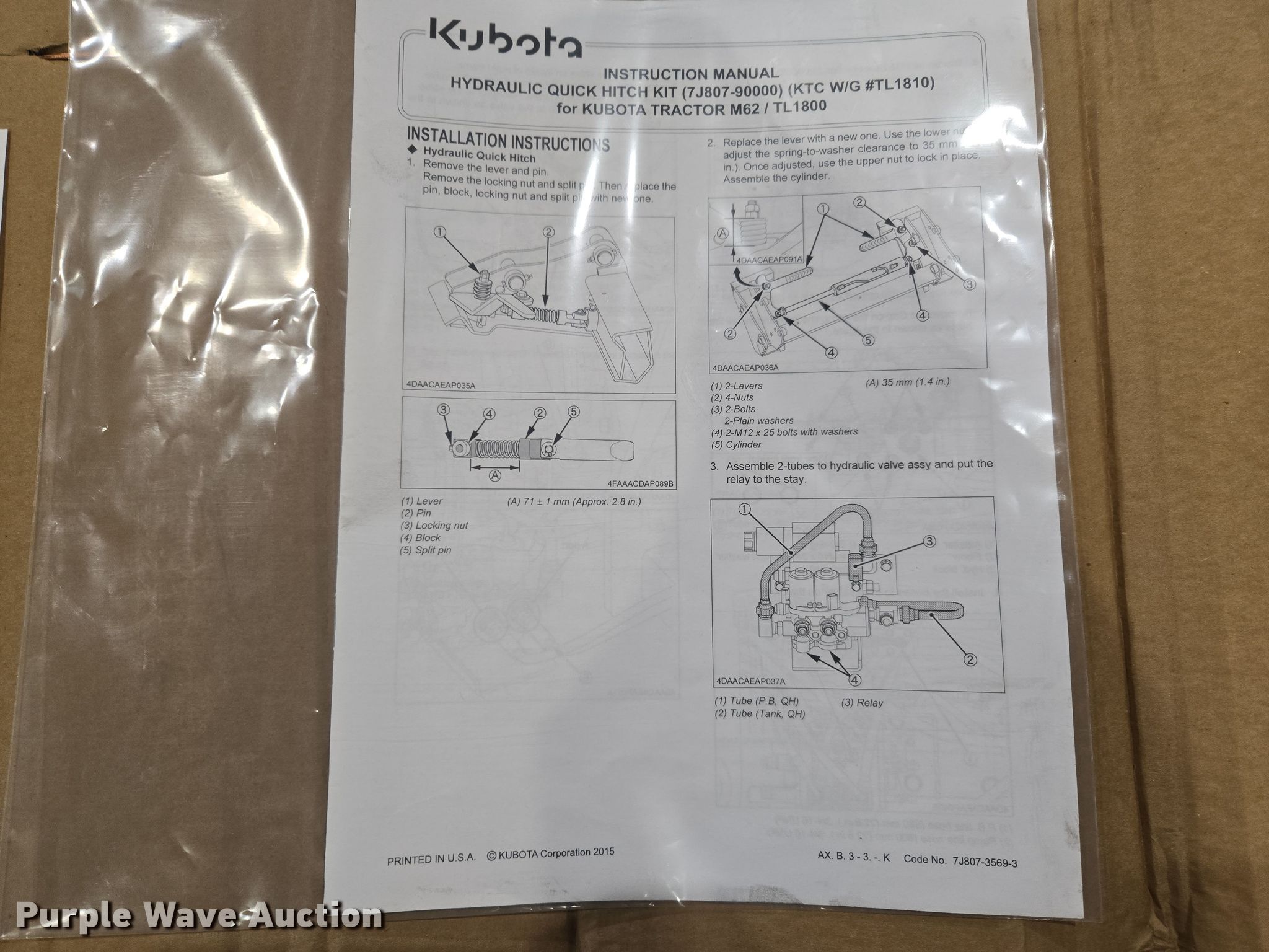 Purple Wave is selling a used Ag Equip. Other in Texas. This item is a Kubota tractor parts with the following: B0103 hydraulic control lever, TL1810 hydraulic quick hitch, Universap Canopy Kit, fits ROPS 22" to 45" wide