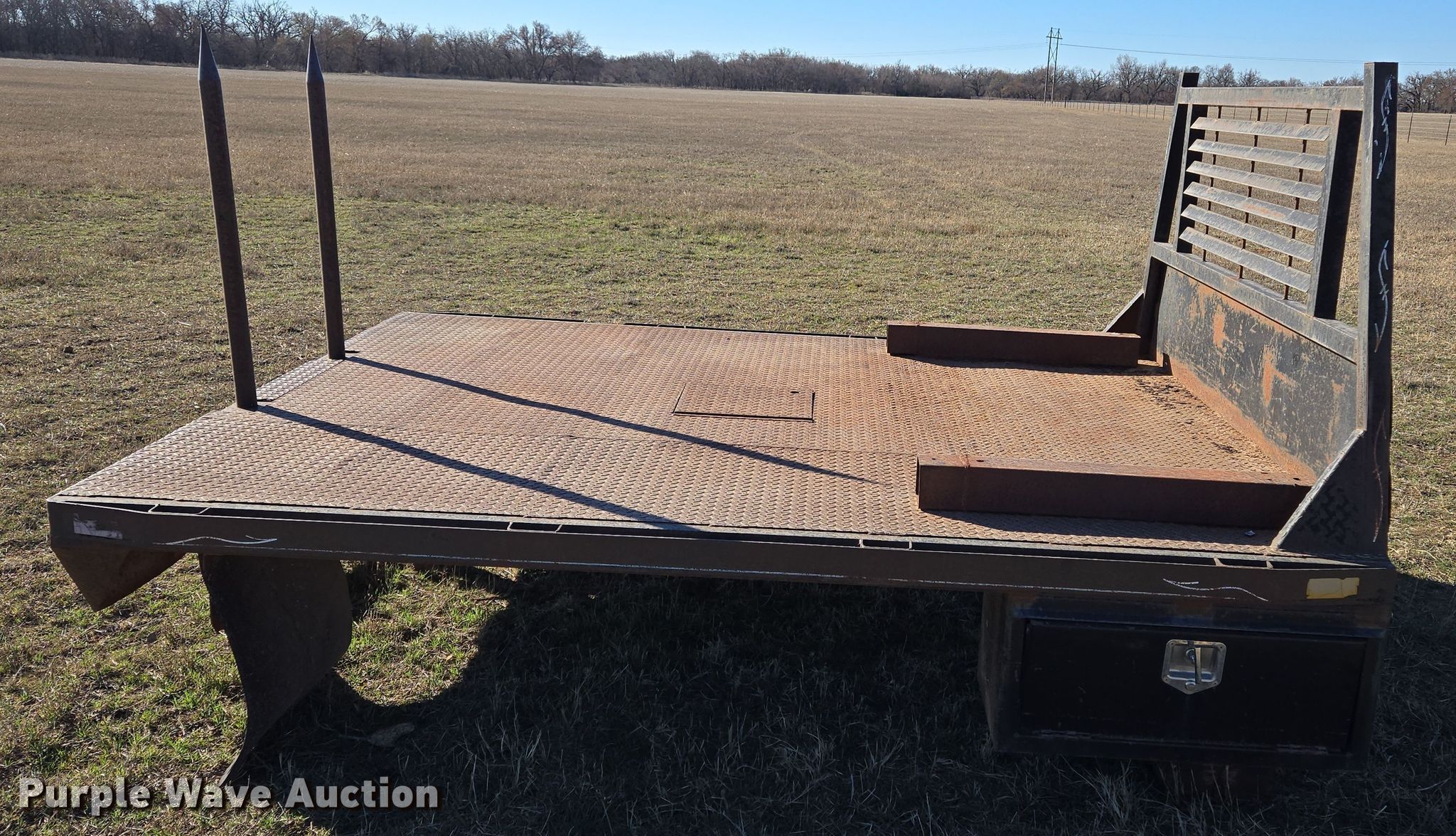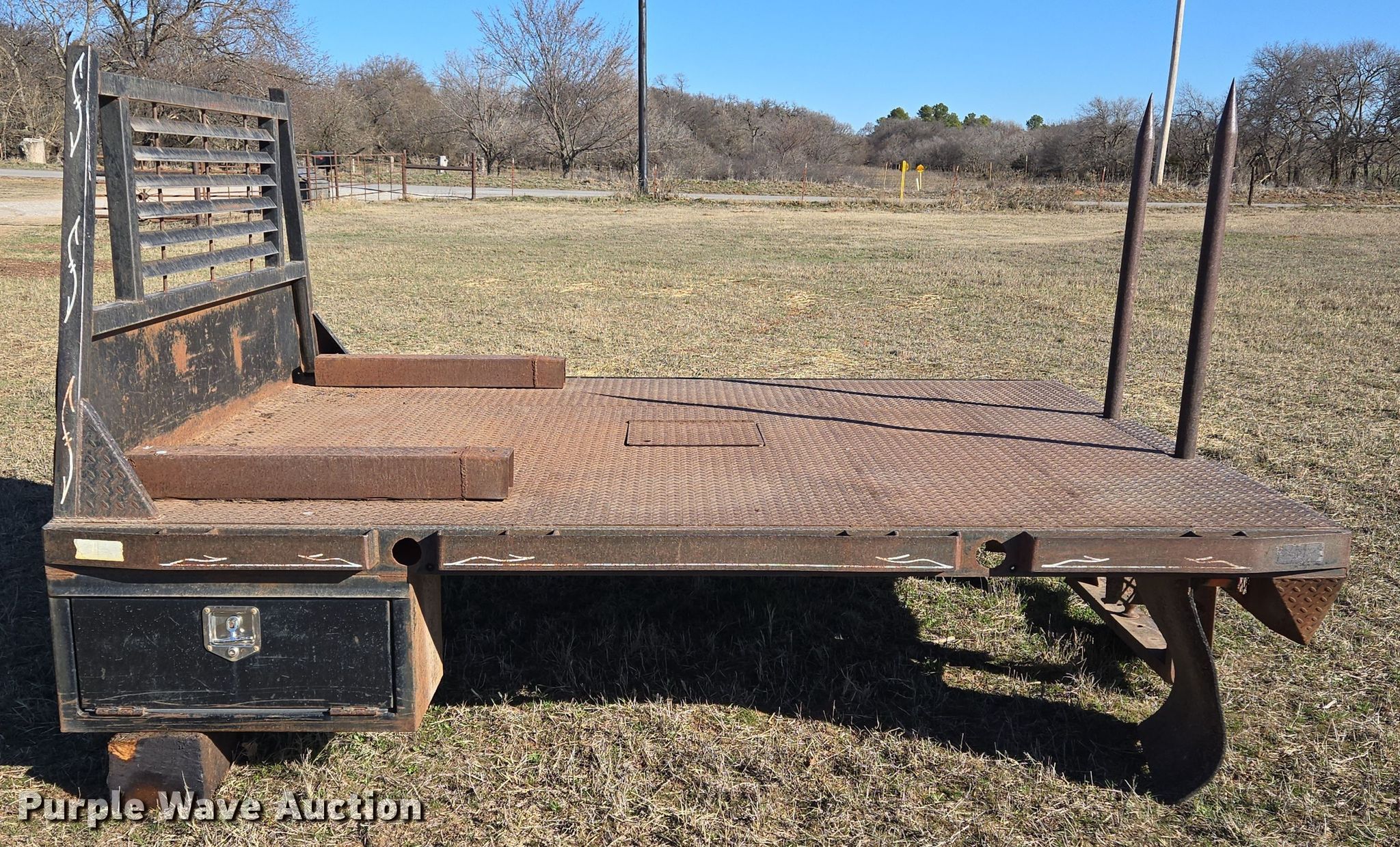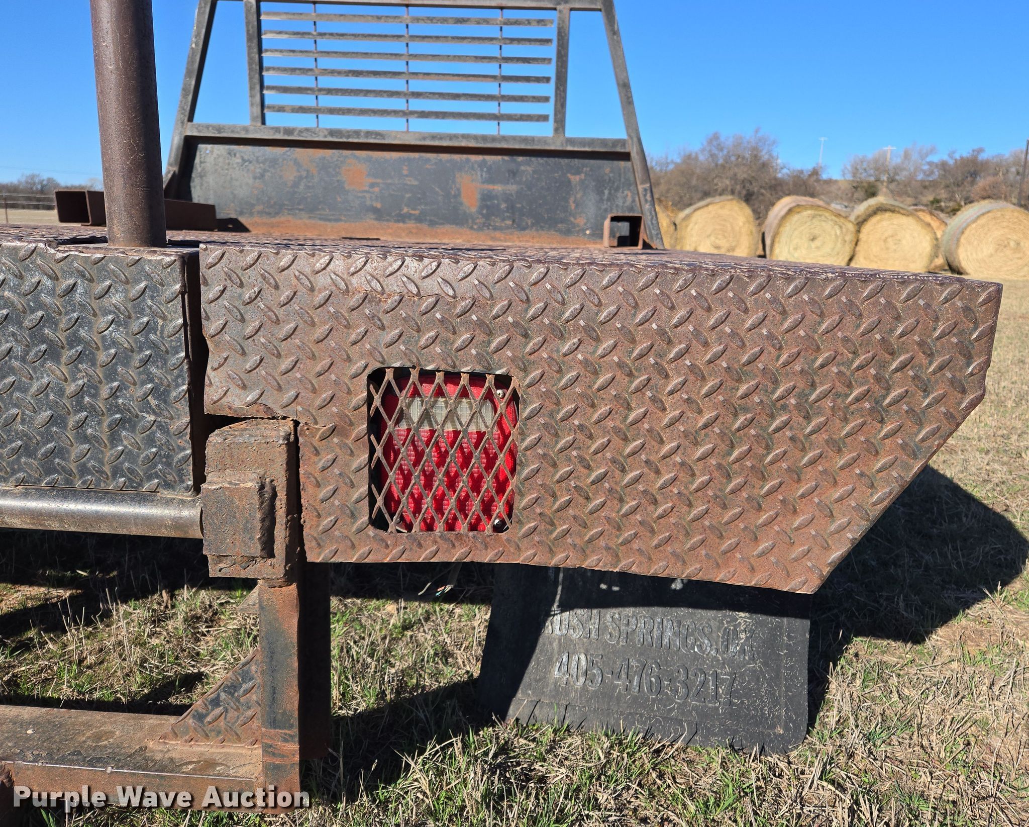 Purple Wave is selling a used Automotive Parts or Acces. in Oklahoma. This item is a Hydraulic bale bed with the following: 9' L x 7' 6" W, Hitch: Gooseneck