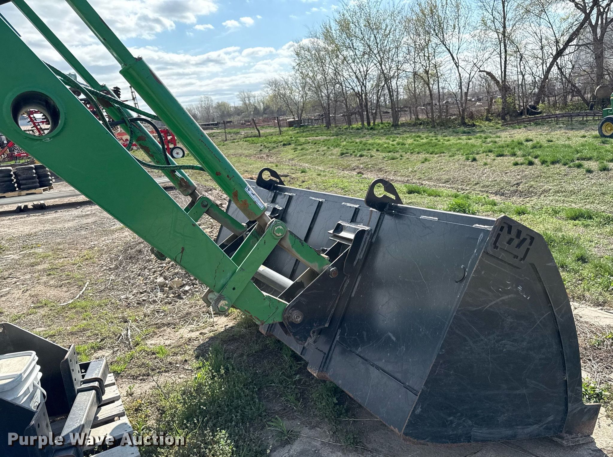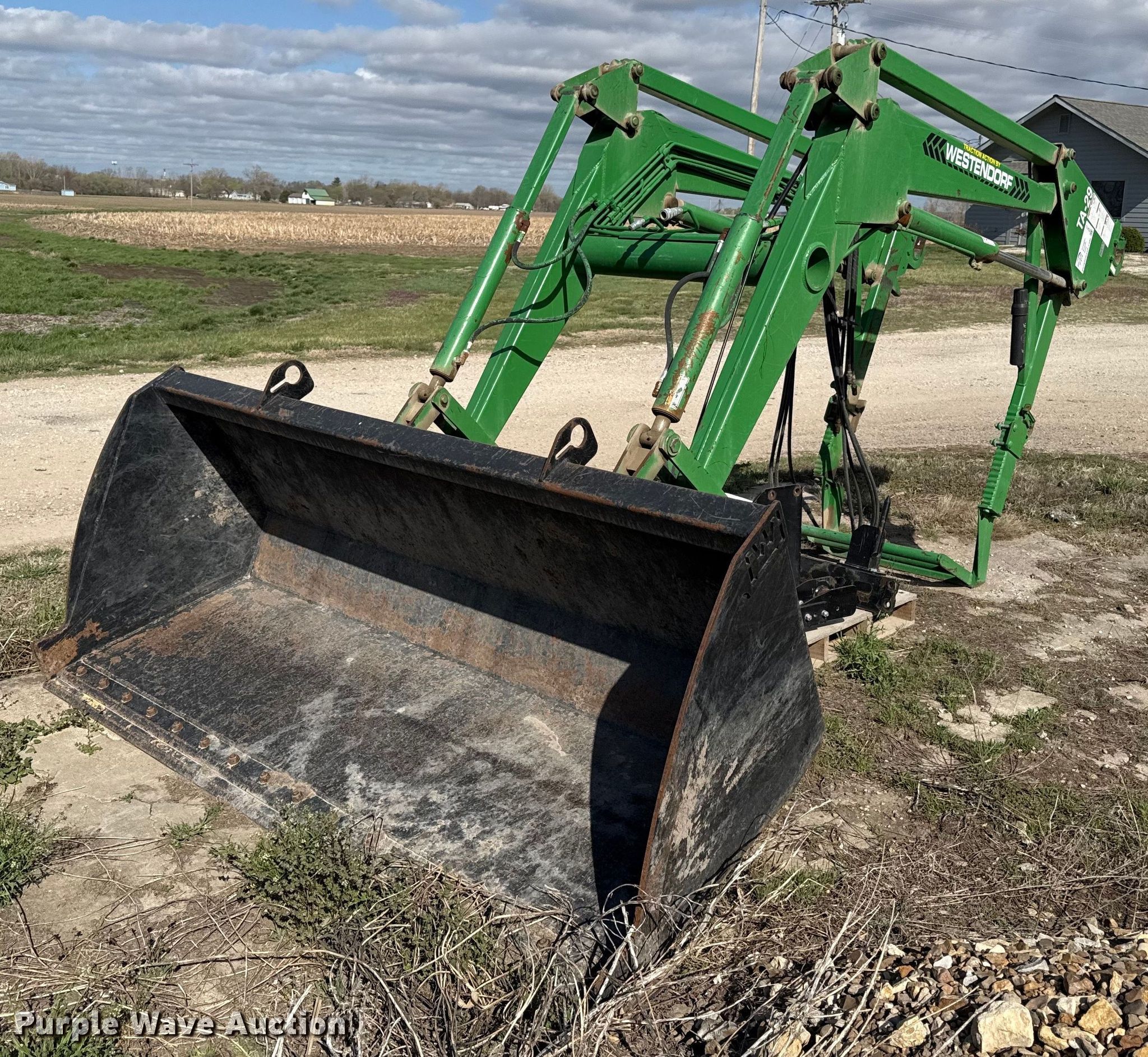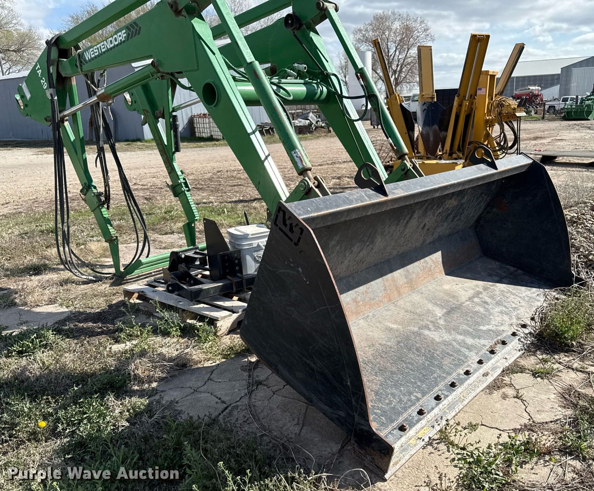 Purple Wave is selling a used Ag Tractor Loader or Attach. in Kansas. This item is a Westendorf TA-29 loader with the following: Quick attach, Bucket, Width: 98", Removed from John Deere 6120