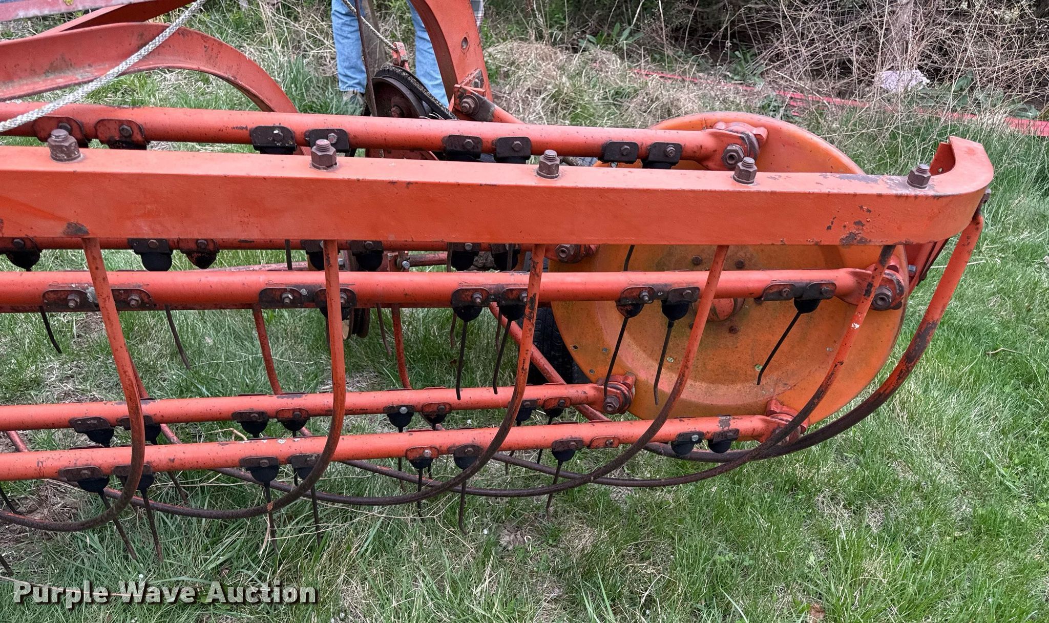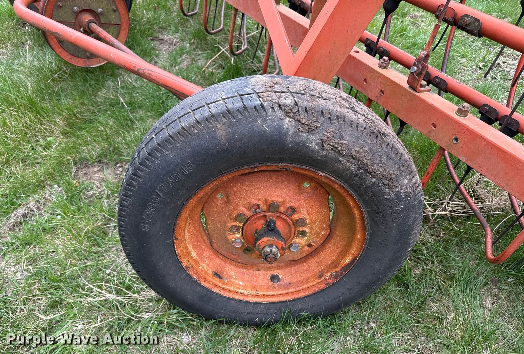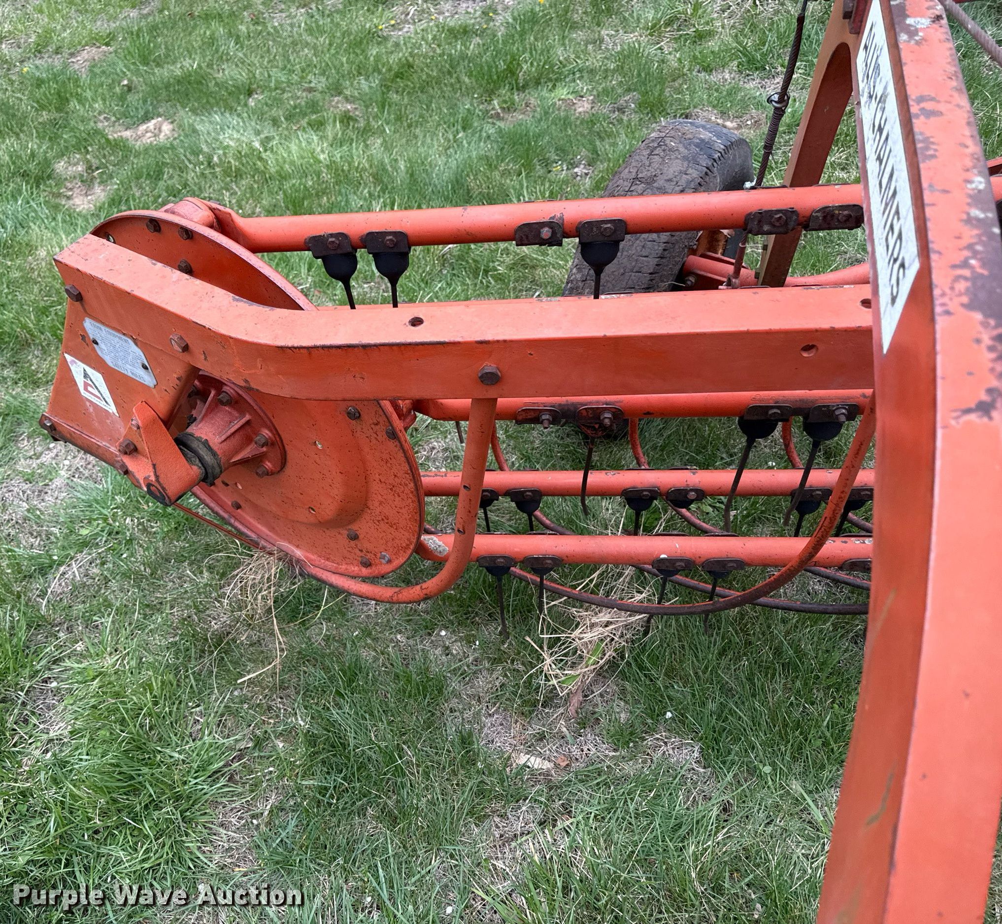 Purple Wave is selling a used Hay Rake in Kansas. This item is a Allis Chalmers hay rake with the following: Width: 8', Ground driven