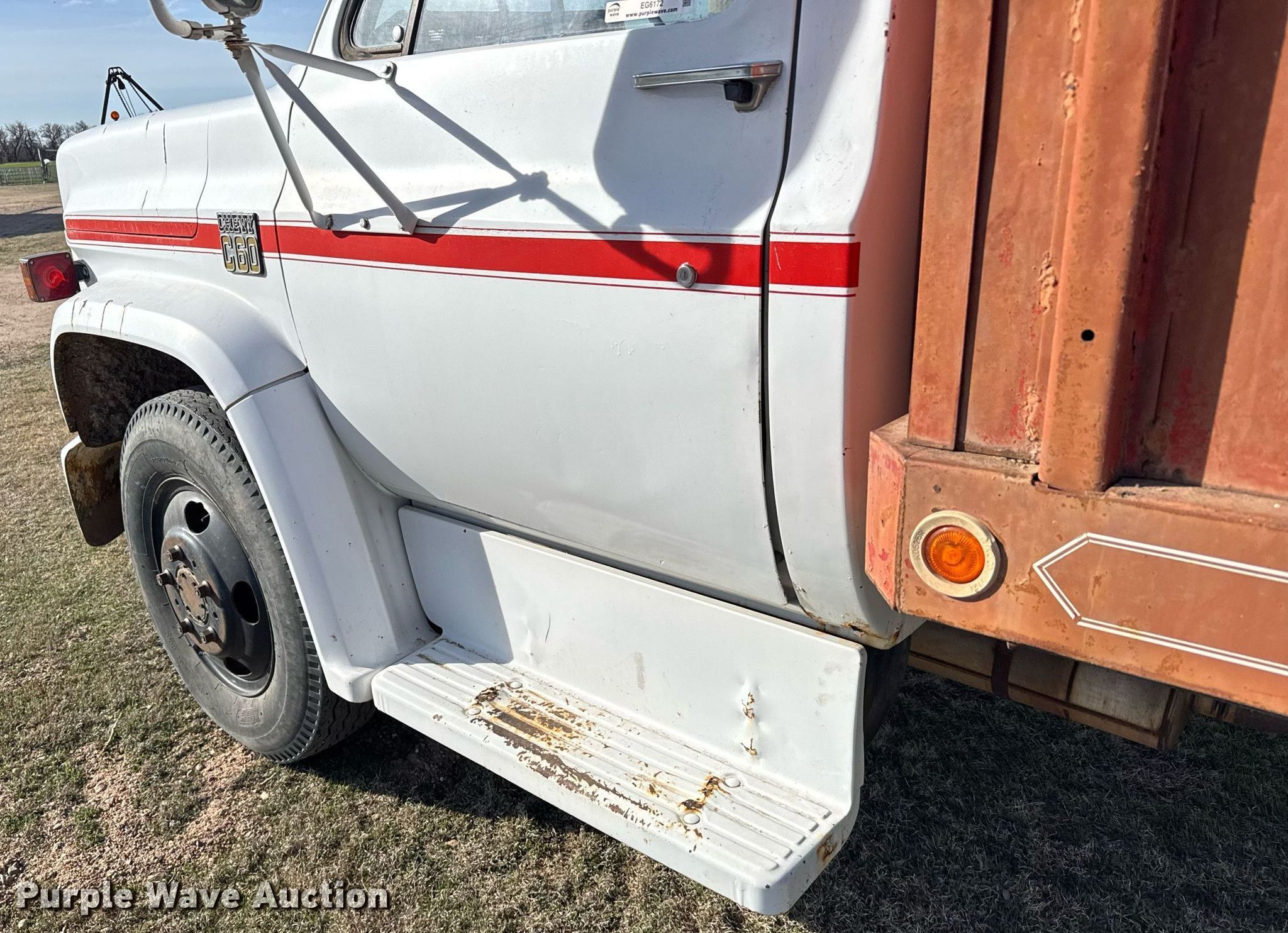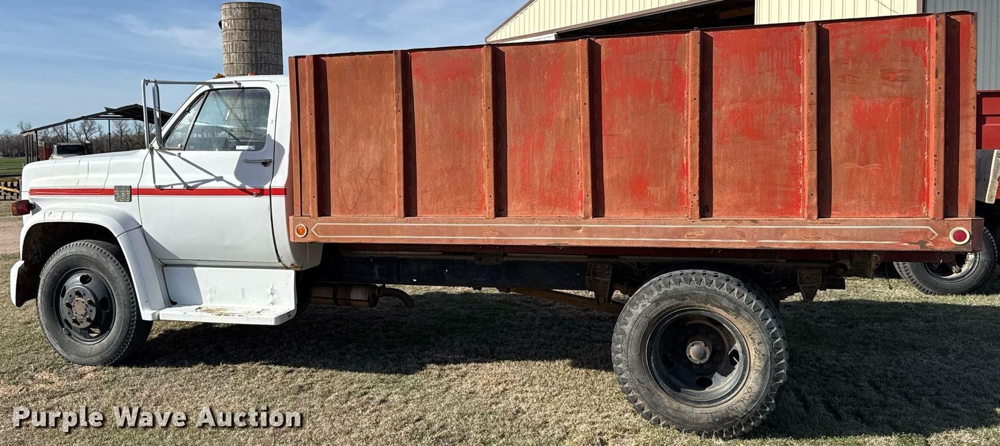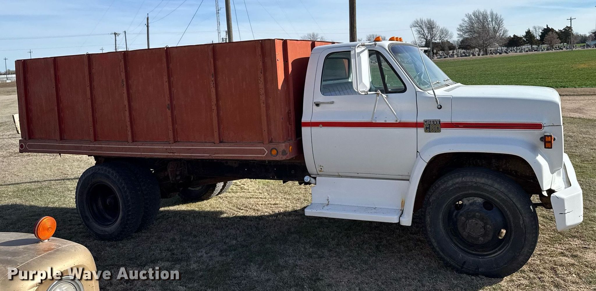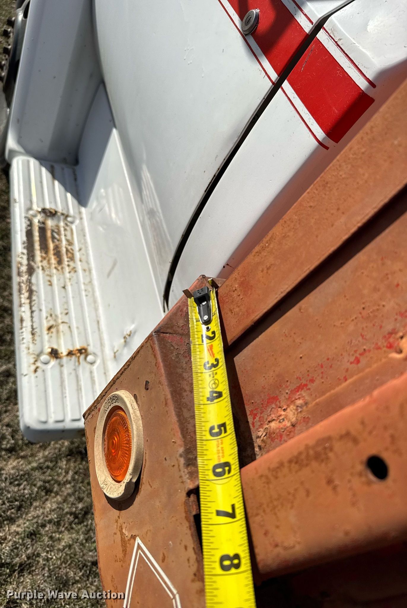 1974 Chevrolet C60 grain truck. Miles: 9,293 on odometer Actual mileage unknown, VIN: CCE614V106608. Engine Cylinders: 8, Fuel type: Gas. Transmission Manual, Speed: 4, plus 2. Chassis Axles: Single, Suspension: Spring, Brakes: Hydraulic, PTO, GVWR: 19,000 lbs FAWR: 5,000 lbs, RAWR: 14,200 lbs. Interior Heat. Features Dump bed 13' 6" L x 94" W, Side height: 42", Bed type: Steel, Ram: Single. Tires Size: 8.25-20. Kansas title. Mileage has not been verified. Exempt will be written in the odometer disclosure on the title. Title distribution may be delayed up to 14 days from verification of funds. Knop Farms. Ellinwood, KS 67526