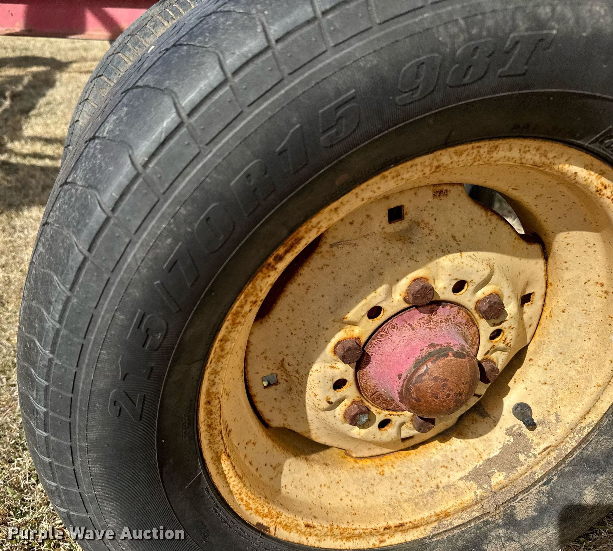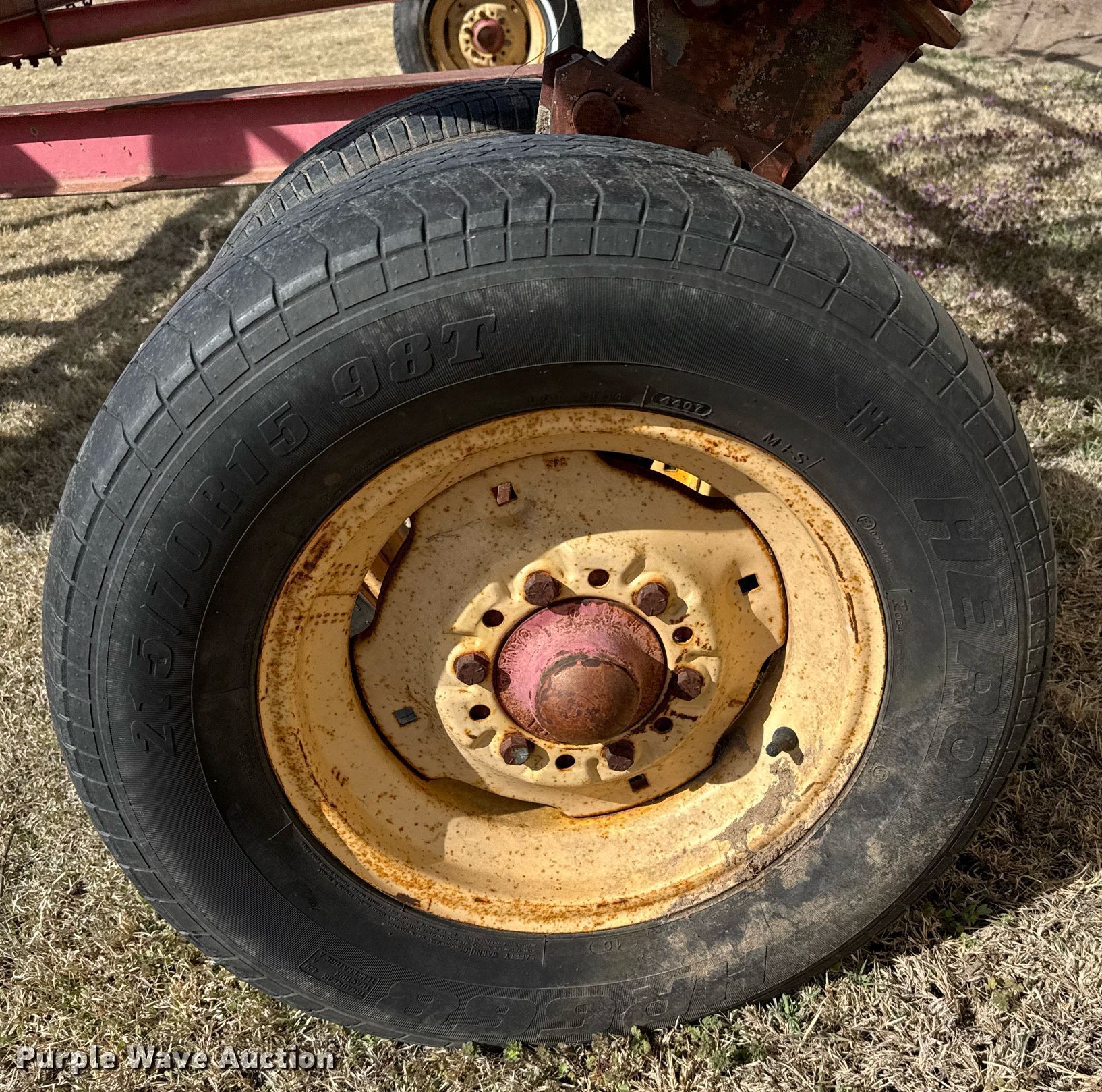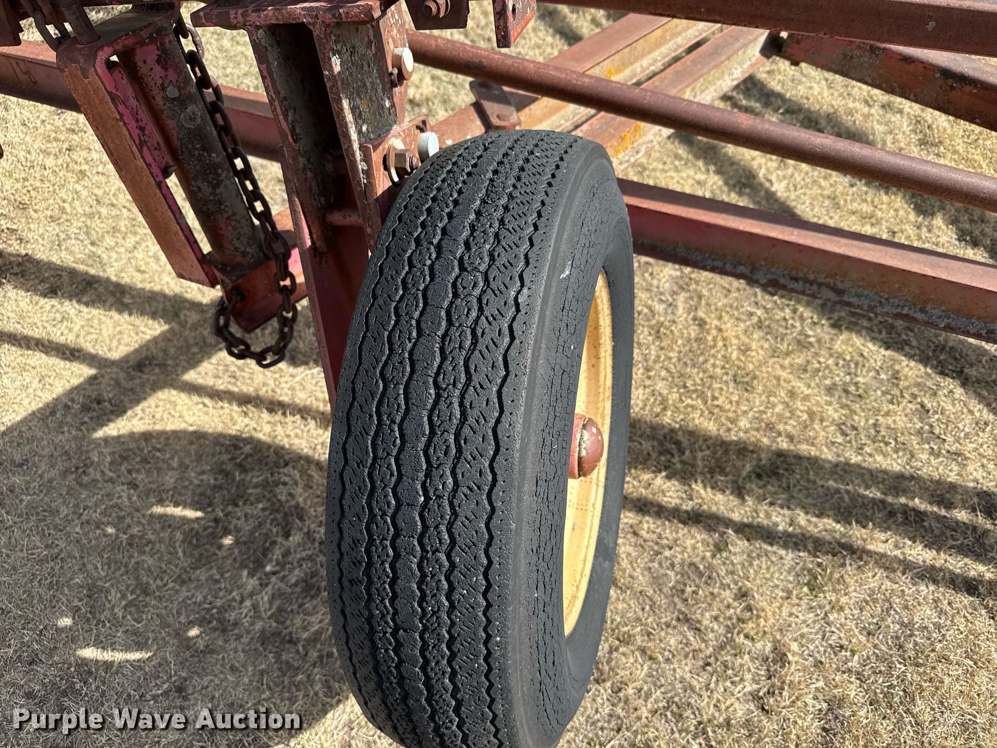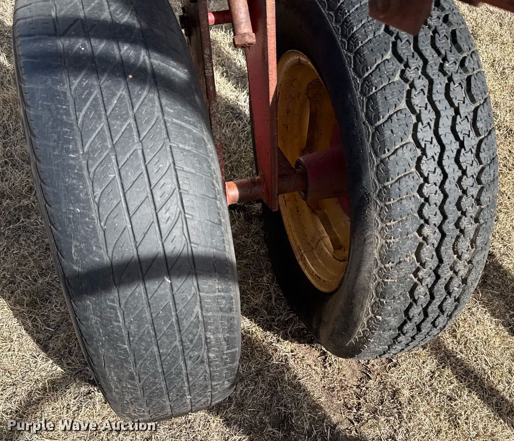 Massey-Ferguson 60 field cultivator. Overall width: 28', Serial: 1720001539. Features Shanks: 52, Sweep width: 4", Attachments Spike tooth harrow Harrow bars: 2.. Tires Tire size: 205/70R15, Gauge wheels. Knop Farms. Ellinwood, KS 67526