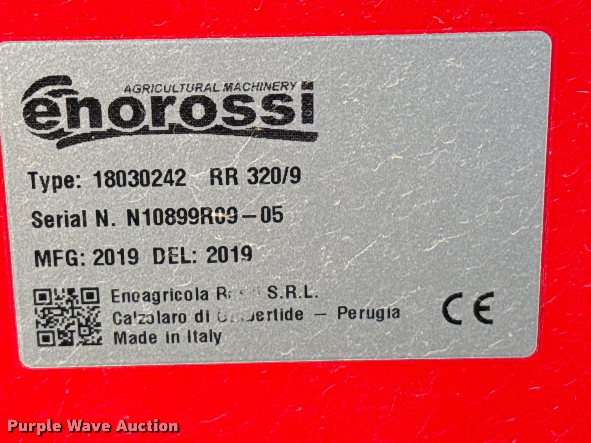 Purple Wave is selling a used Hay Rake in Kansas. This item is a 2019 Enorossi RR320 Evo rotary hay rake with the following: Serial: N10899R09-05
