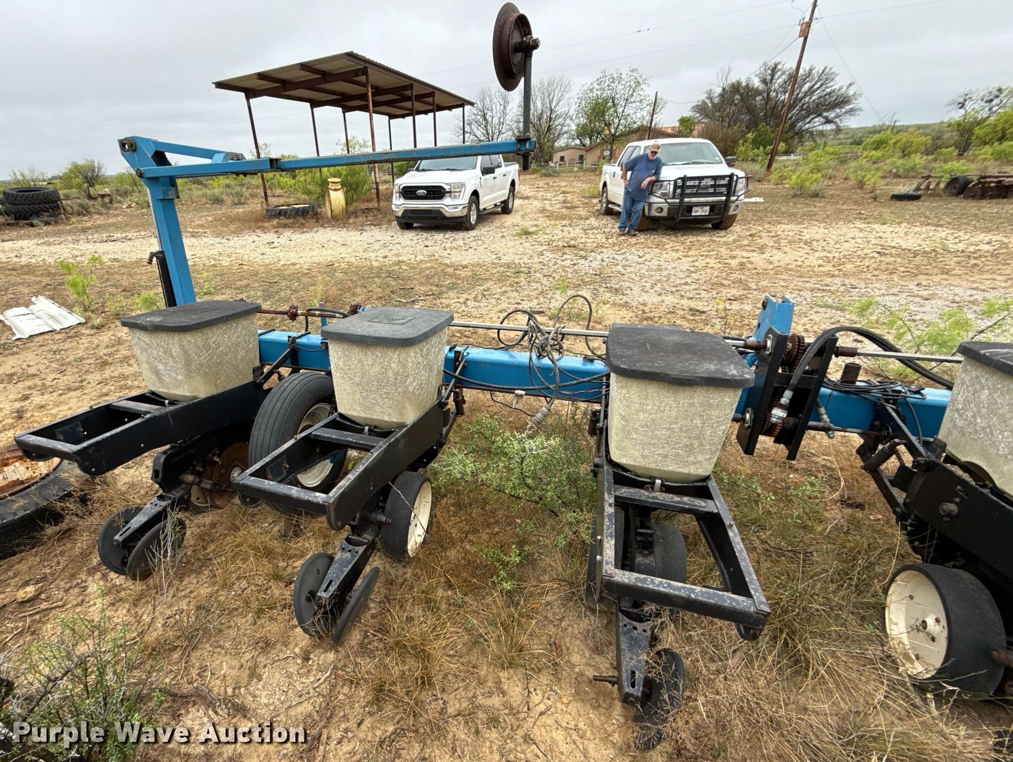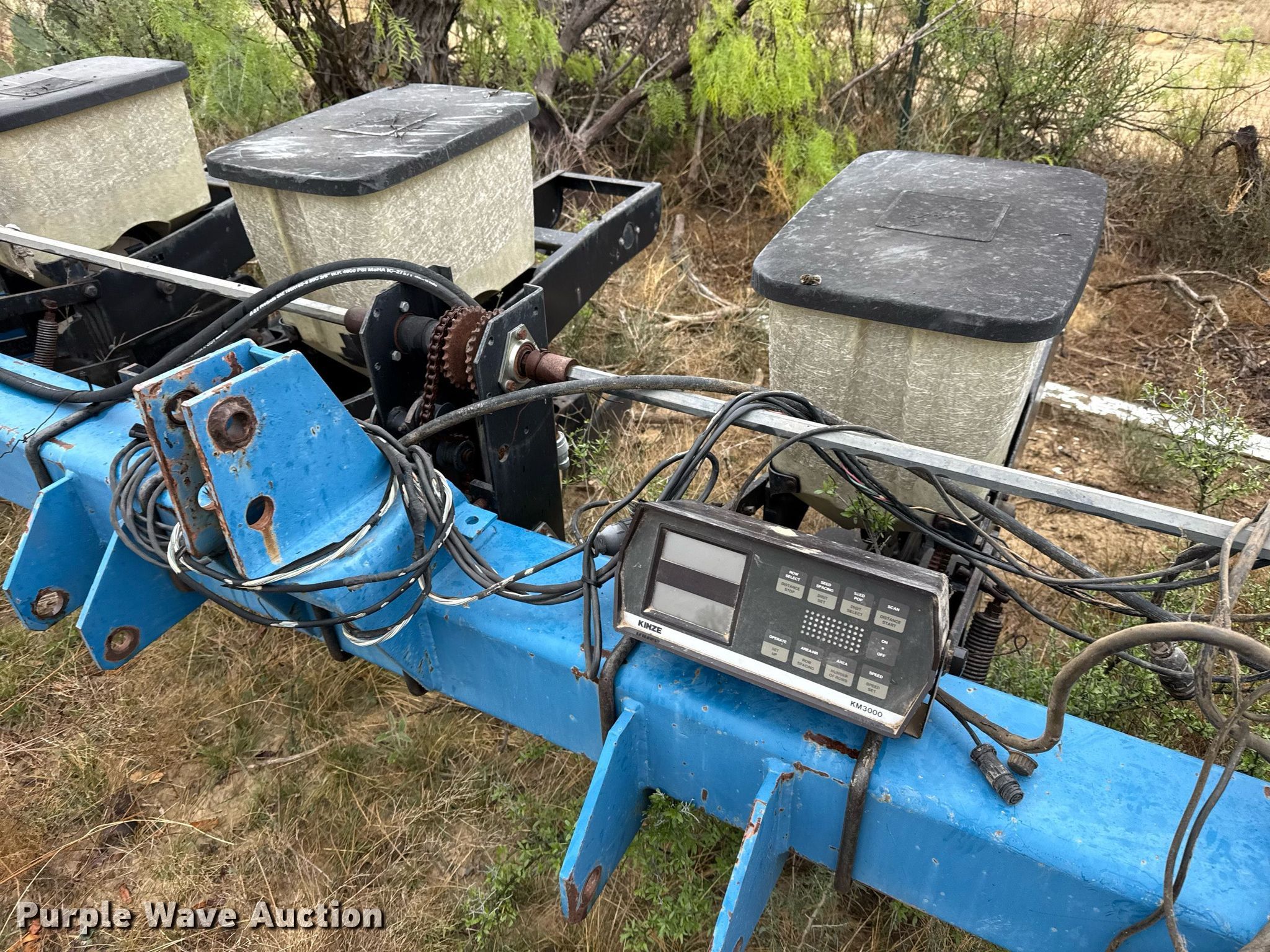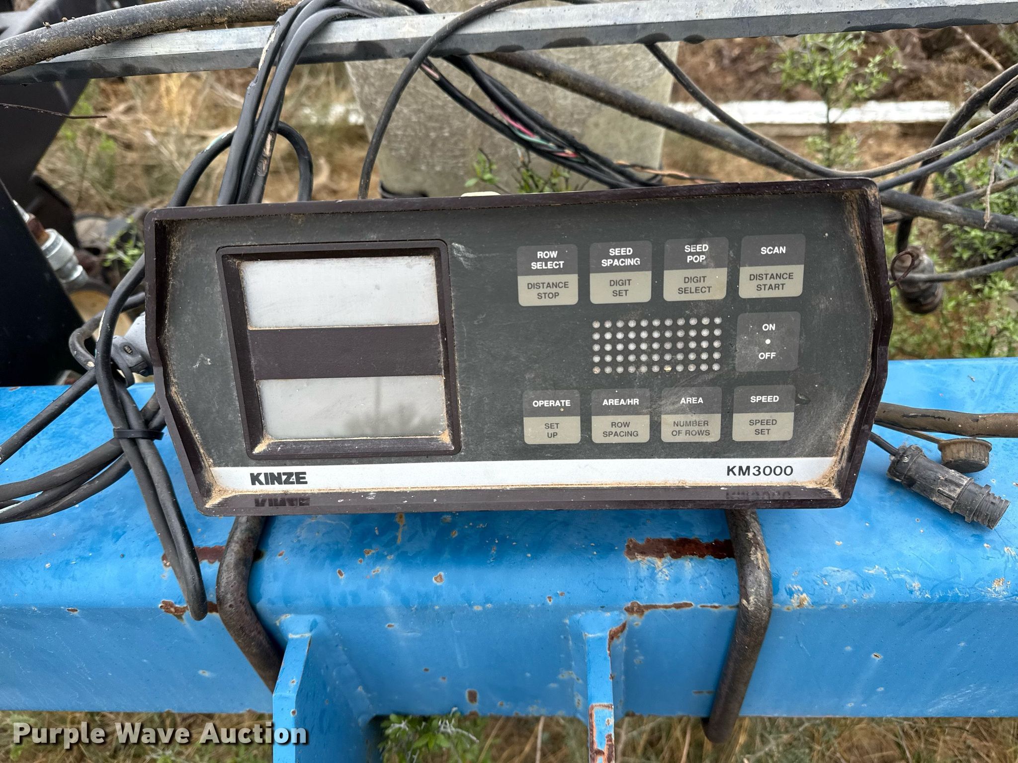 Kinze planter. Row units: 6, Row spacing: 40". Features Frame Hitch: Three point, Marker arm, Seed delivery Individual seed hoppers, Row units Meter drive: Ground, Down pressure: Spring, Disk openers: Double, Gauge wheels: Single, Closing system: Double Type: Rubber, Electronics Monitor Kinze KM3000.. Tires Transport tire size: 7.60-15 Quantity: 2. Gouldbusk, TX 76845