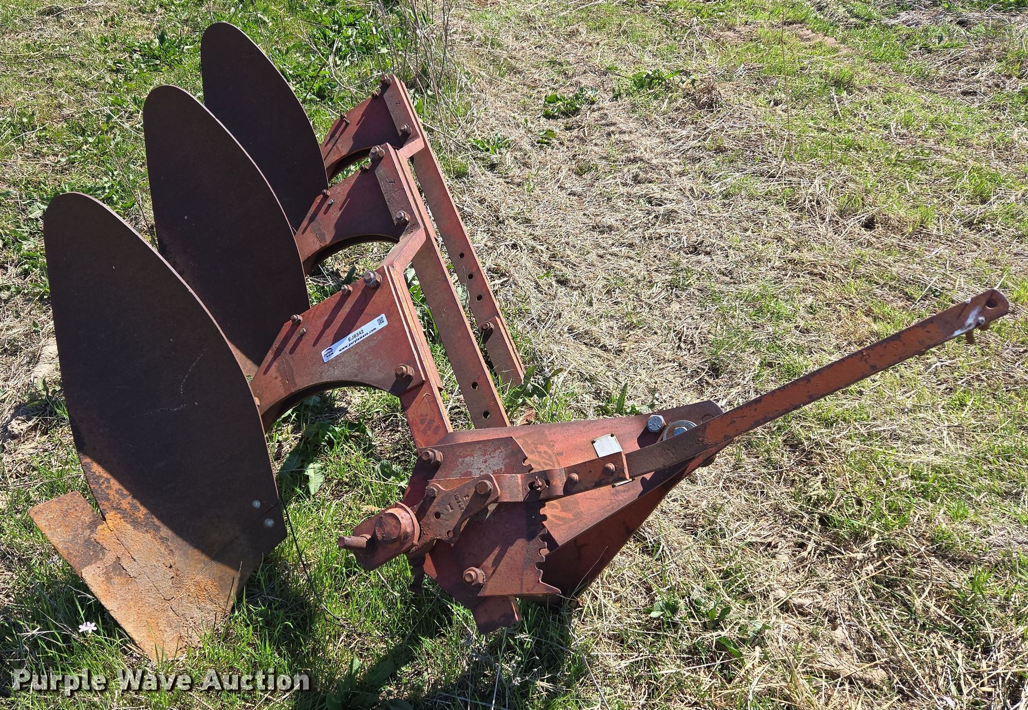 Purple Wave is selling a used Plow in Oklahoma. This item is a Ford I0-458 three bottom plow with the following: Serial: I975, Spacing: 14", Hitch: Three point