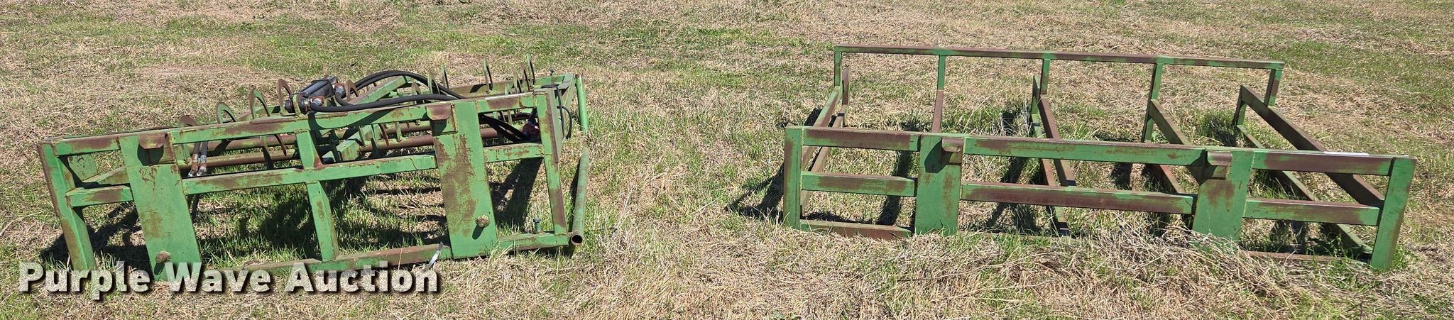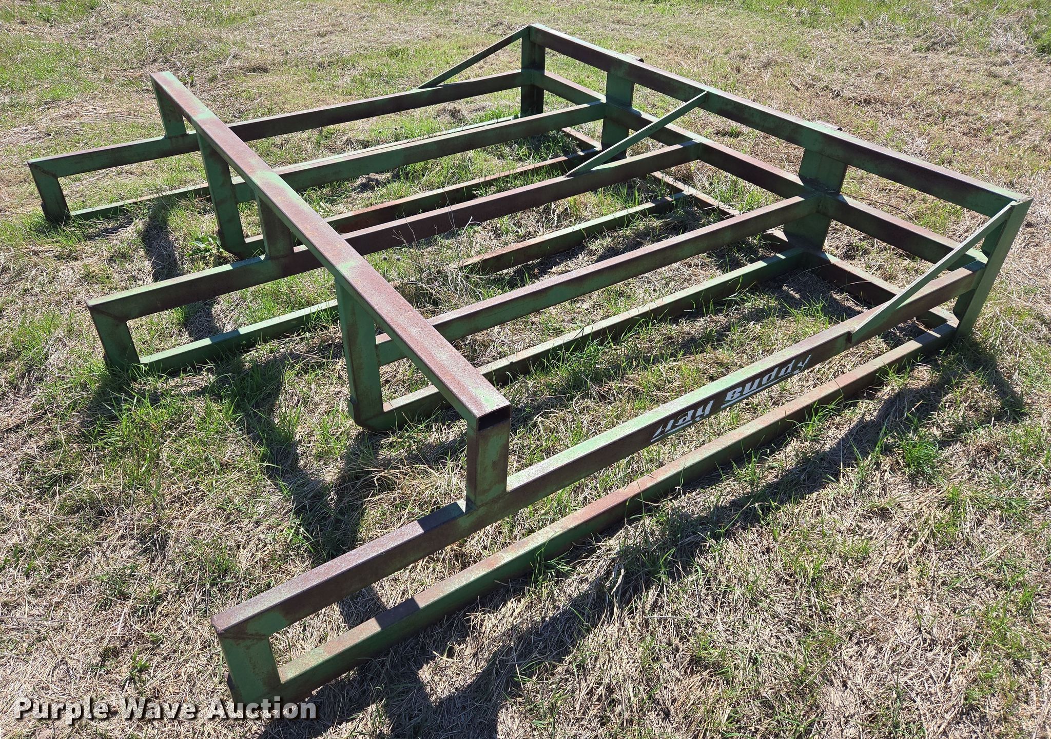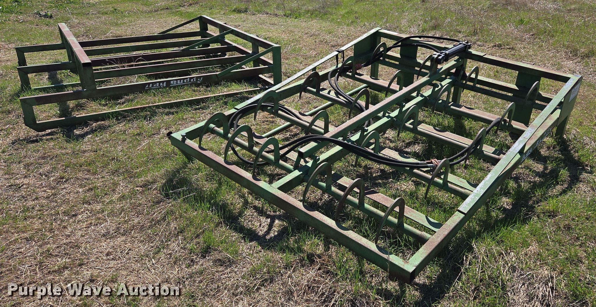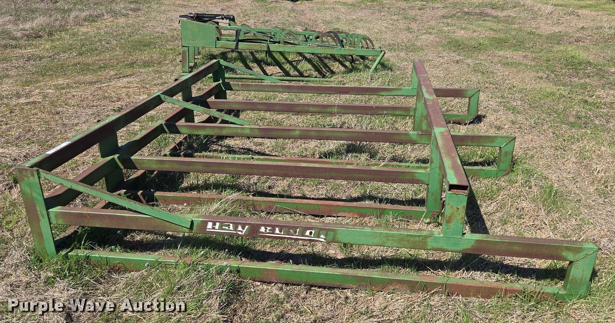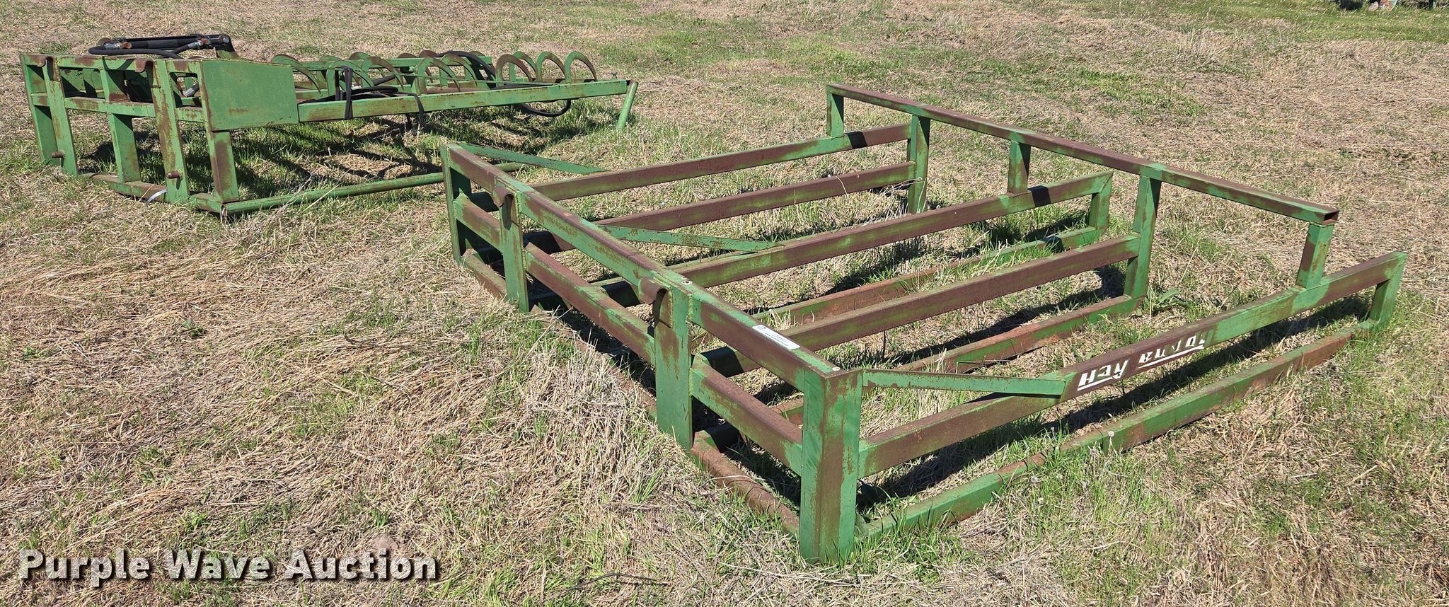 Purple Wave is selling a used Hay Handling in Oklahoma. This item is a Hay Buddy hay handling equipment with the following: Hay Buddy bale accumulator grapple, 6' L x 93" W, Bale capacity: 10, Hay Buddy bale accumulator, 8' L x 8' W, Bale capacity: 10