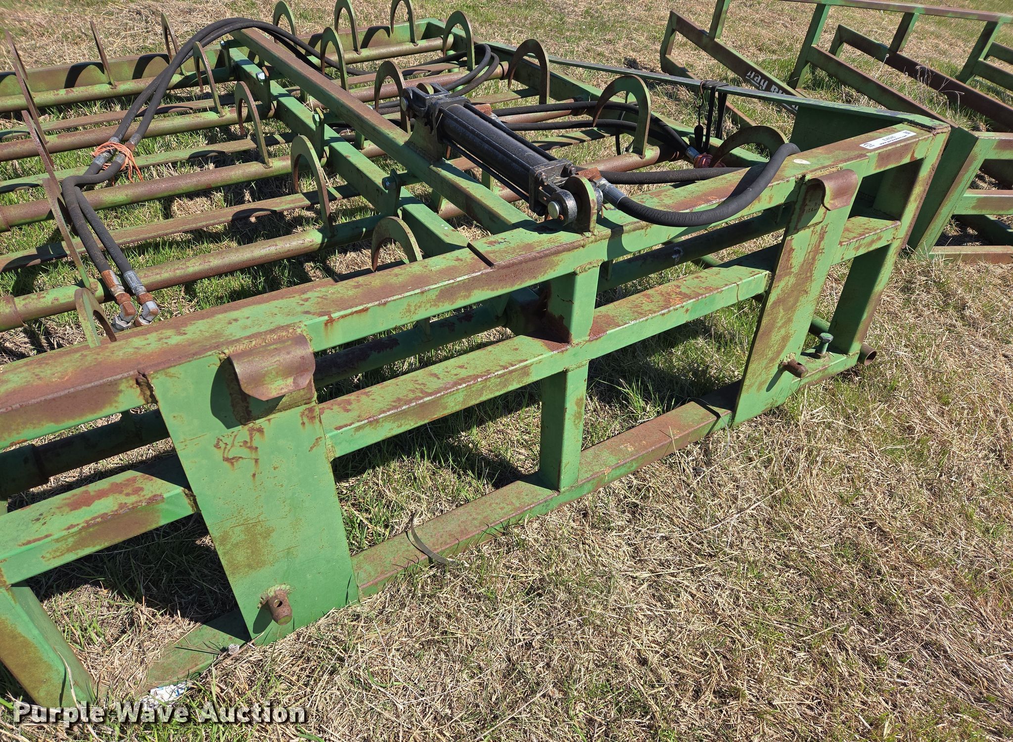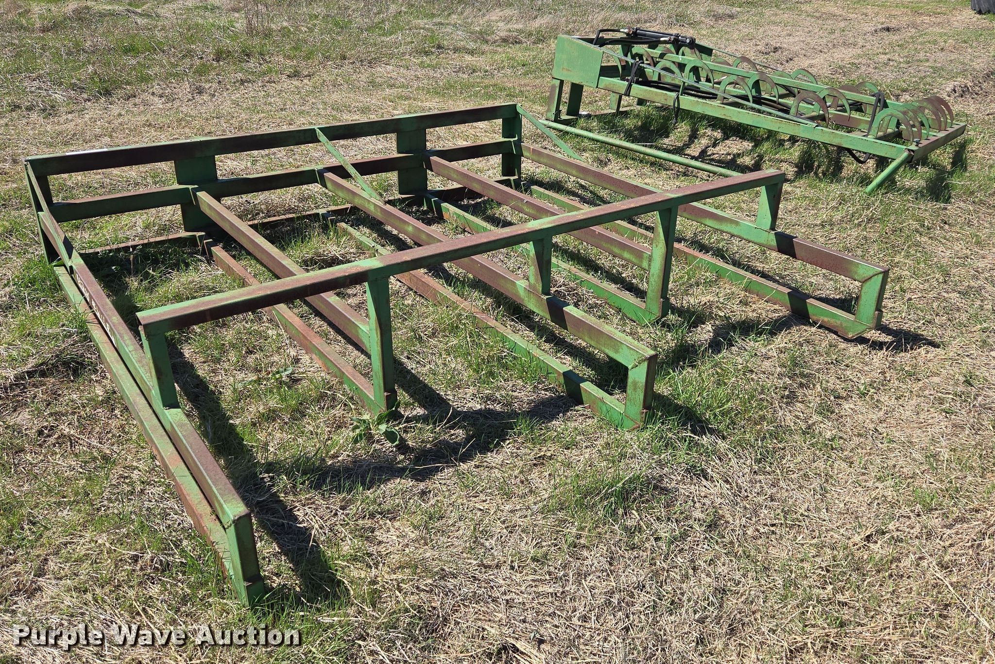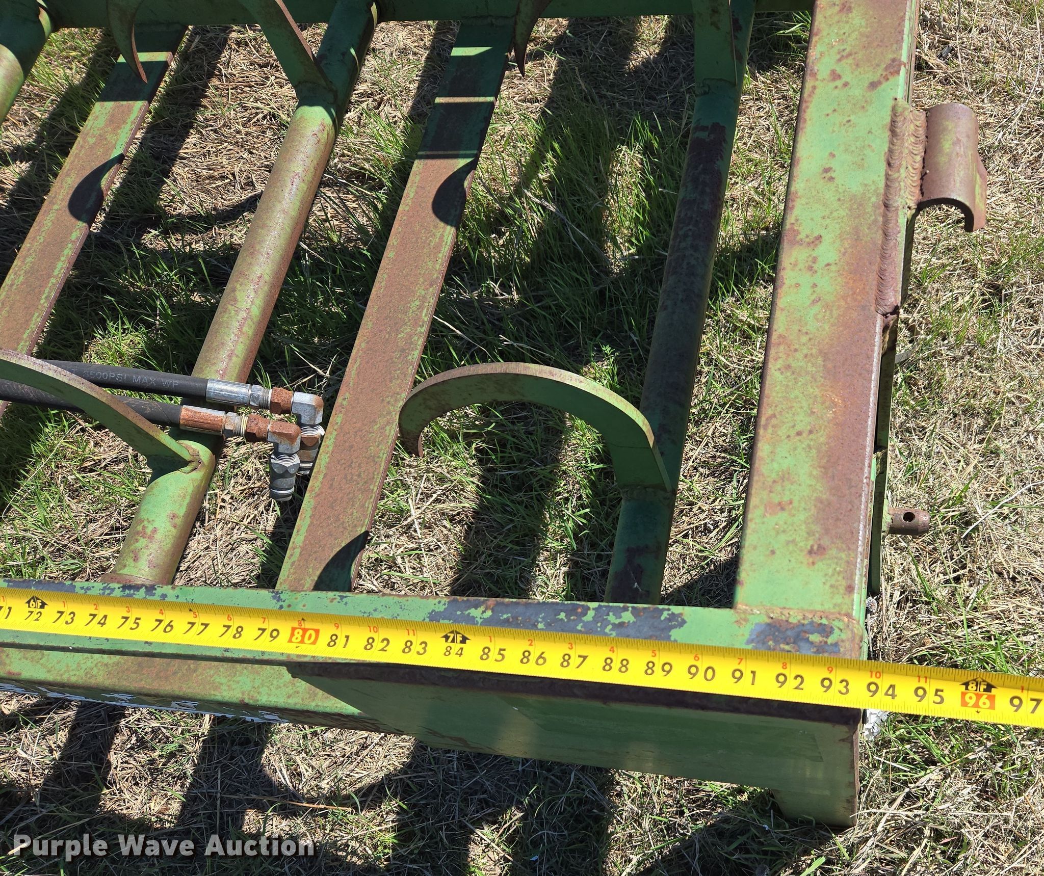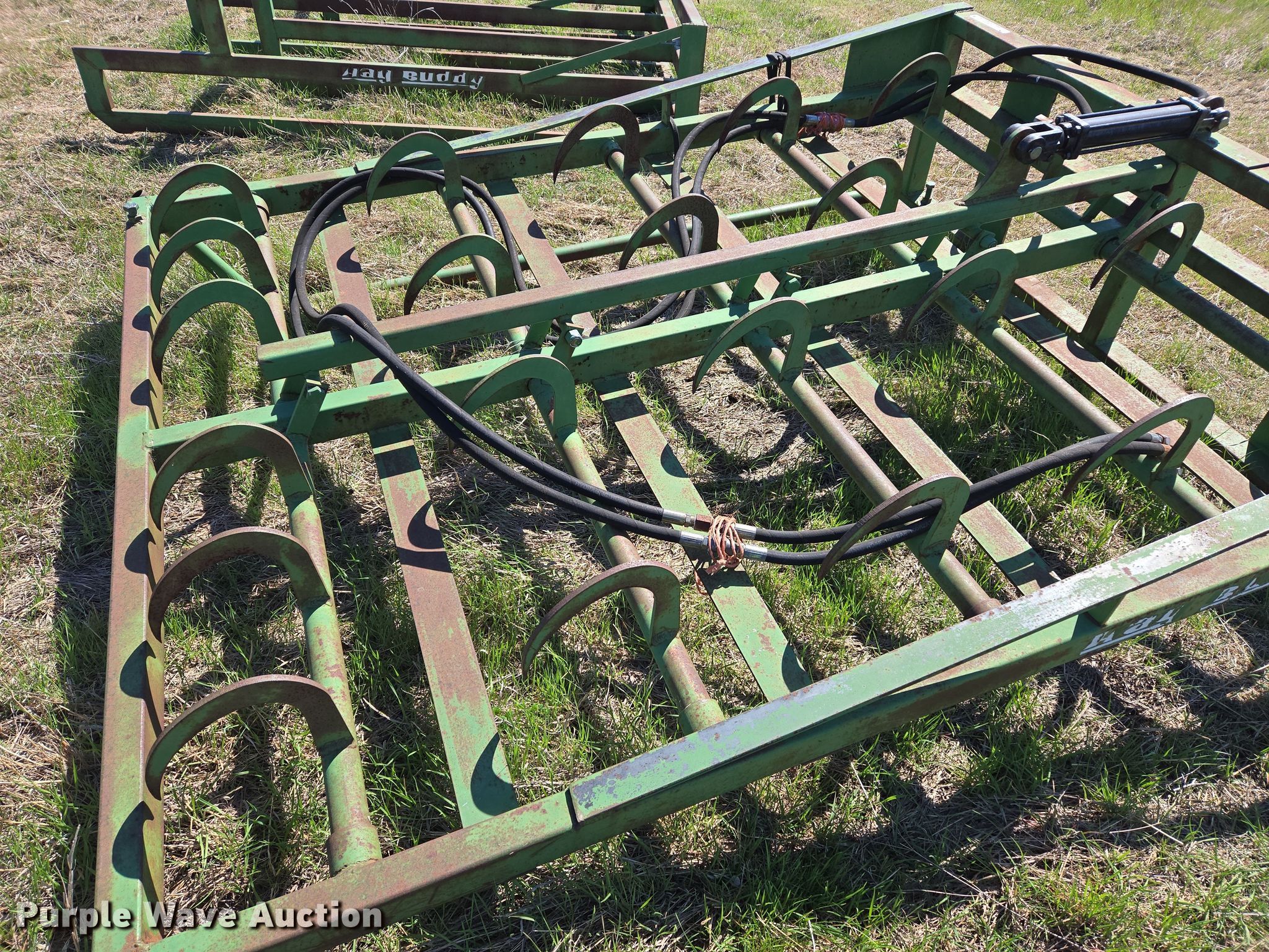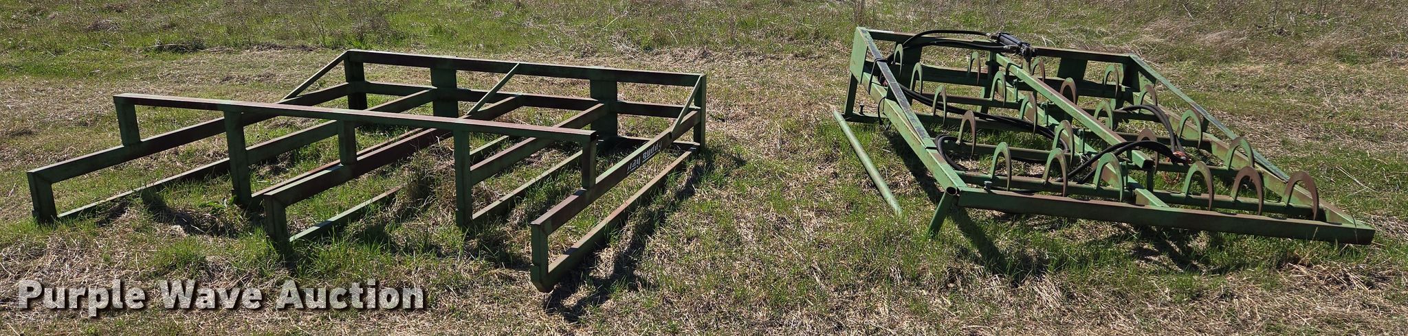 Purple Wave is selling a used Hay Handling in Oklahoma. This item is a Hay Buddy hay handling equipment with the following: Hay Buddy bale accumulator grapple, 6' L x 93" W, Bale capacity: 10, Hay Buddy bale accumulator, 8' L x 8' W, Bale capacity: 10