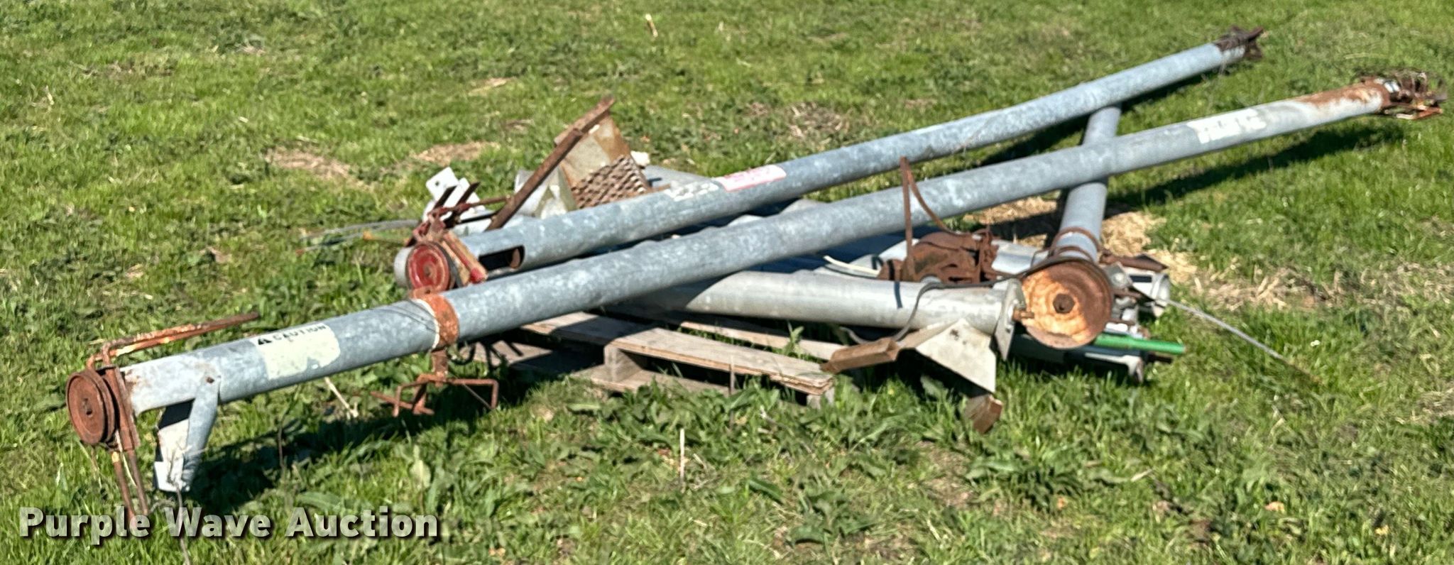 Purple Wave is selling a used Auger or Conveyor in Oklahoma. This item is a (3) augers with the following: My-D Han-D auger, 16' L x 4" diameter, Speed King auger, 16' L x 4" diameter, Auger, Length: 11', Electric motor, Phase: Single,, (6) extensions, (3) 6' L, (3) 4' L