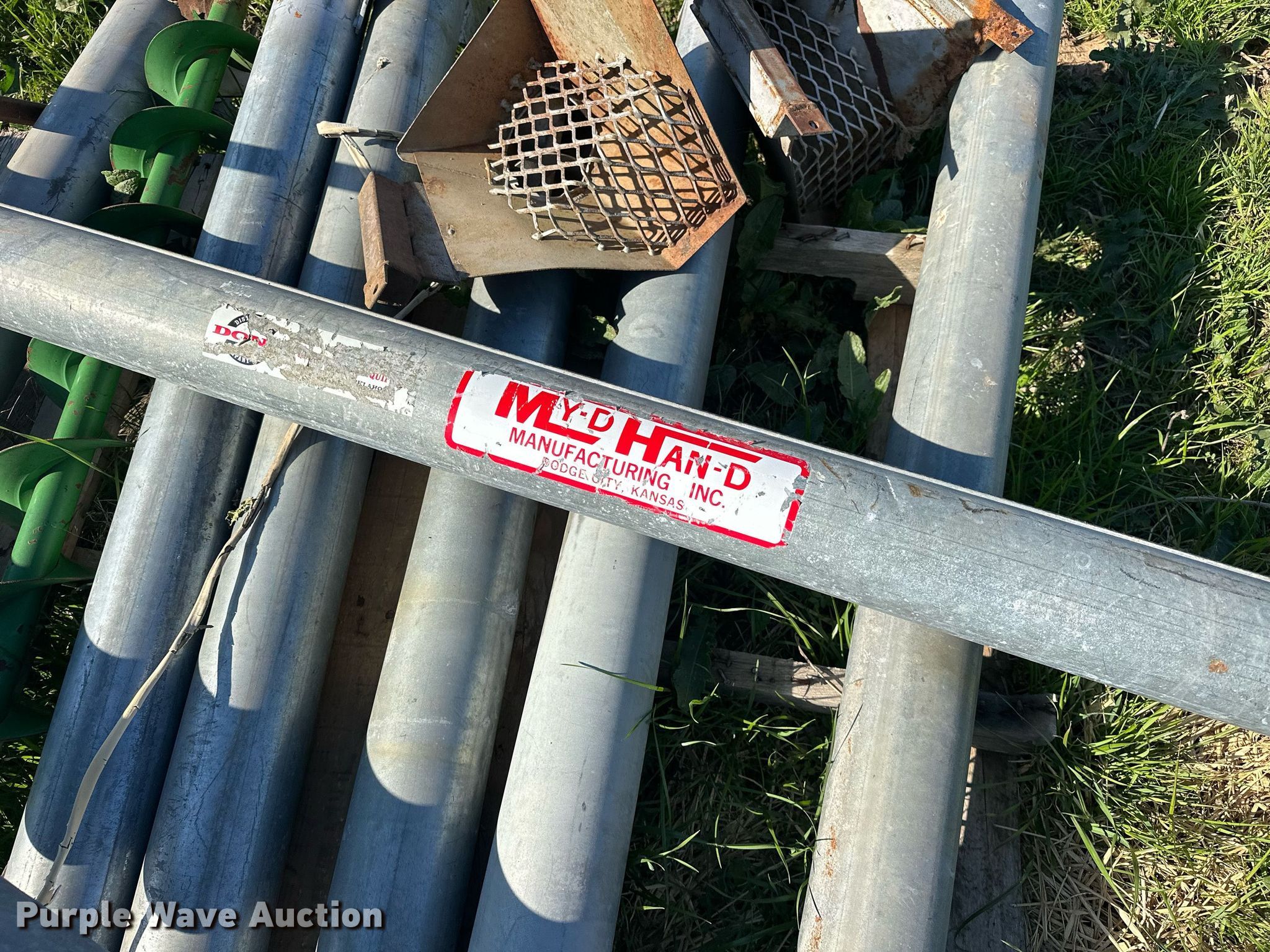 (3) augers. My-D Han-D auger 16' L x 4" diameter, Speed King auger 16' L x 4" diameter, Auger Length: 11', Electric motor Phase: Single, (6) extensions (3) 6' L, (3) 4' L. Notes Non-operational electric motor, Electric motors missing. Okemah, OK 74859