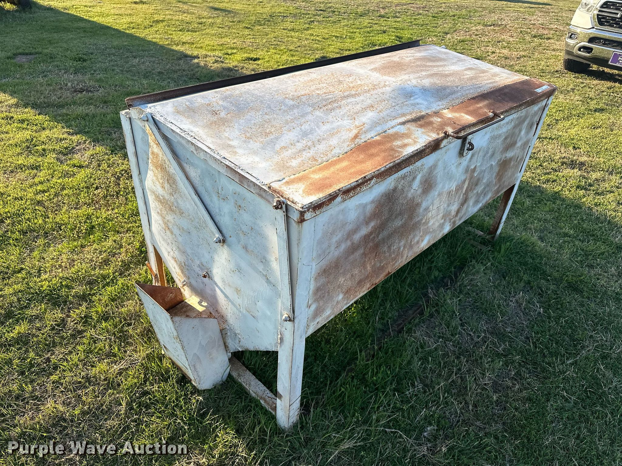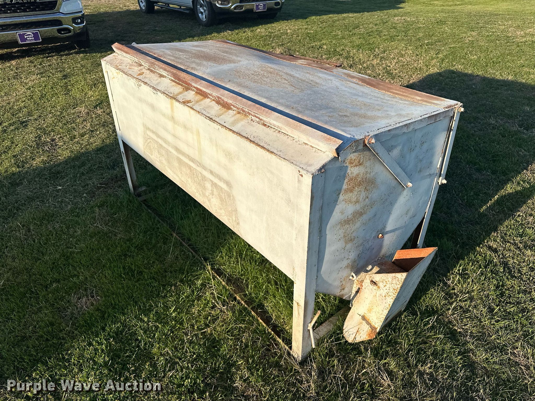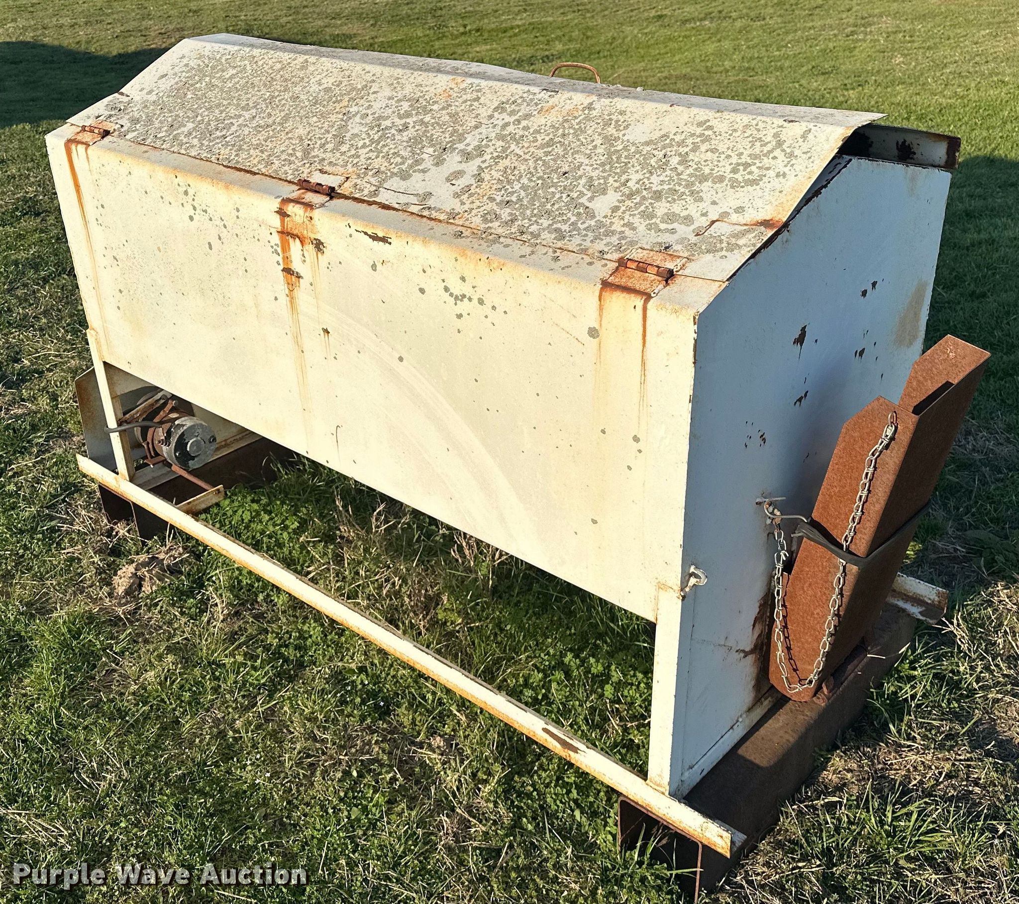 Purple Wave is selling a used Livestock Equip. in Oklahoma. This item is a (2) cake feeders with the following: Bar-Six cake feeder, 5' 1" L x 30" W, Electric motor, Cake feeder, 6' 2" L x 36" W