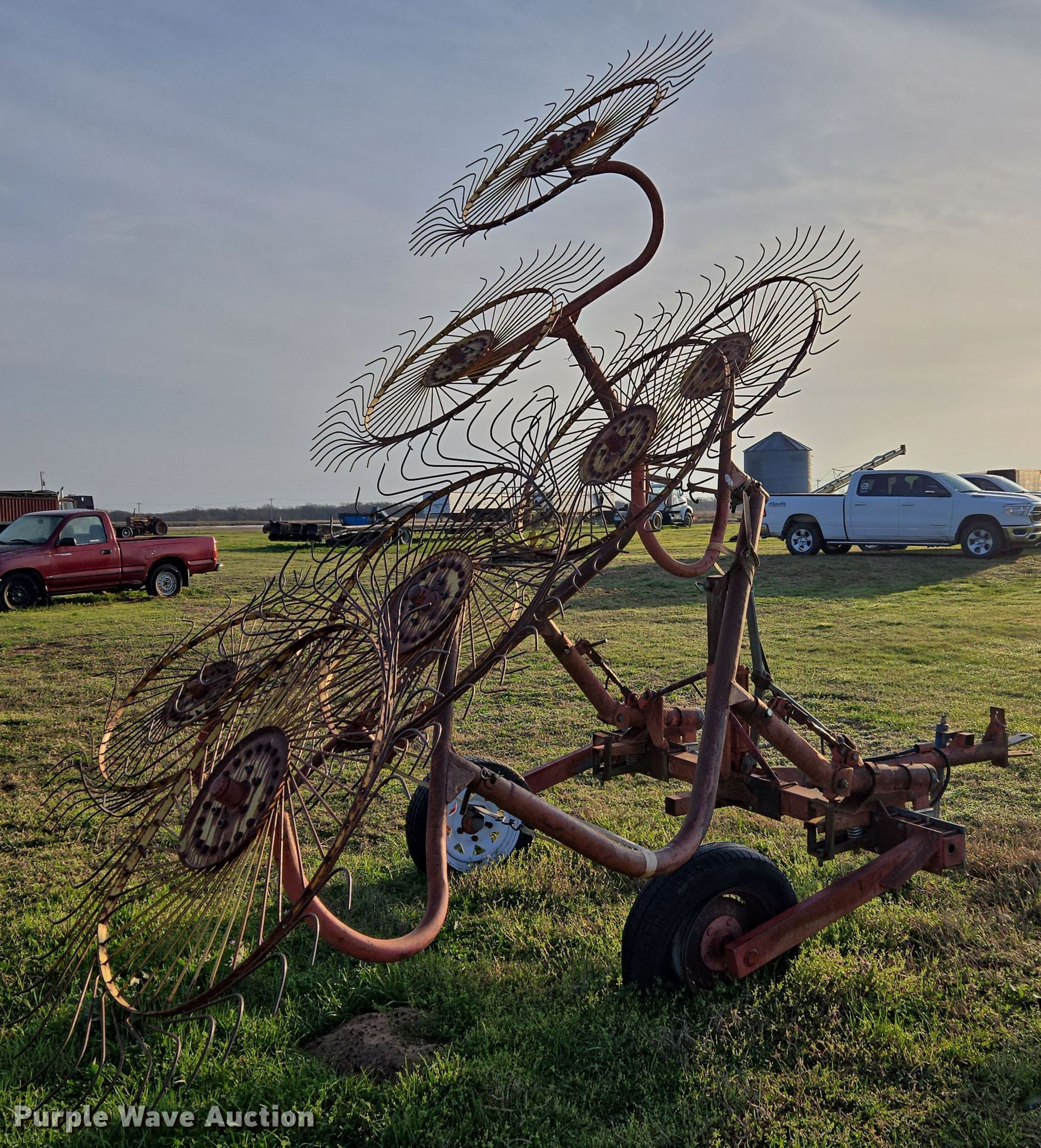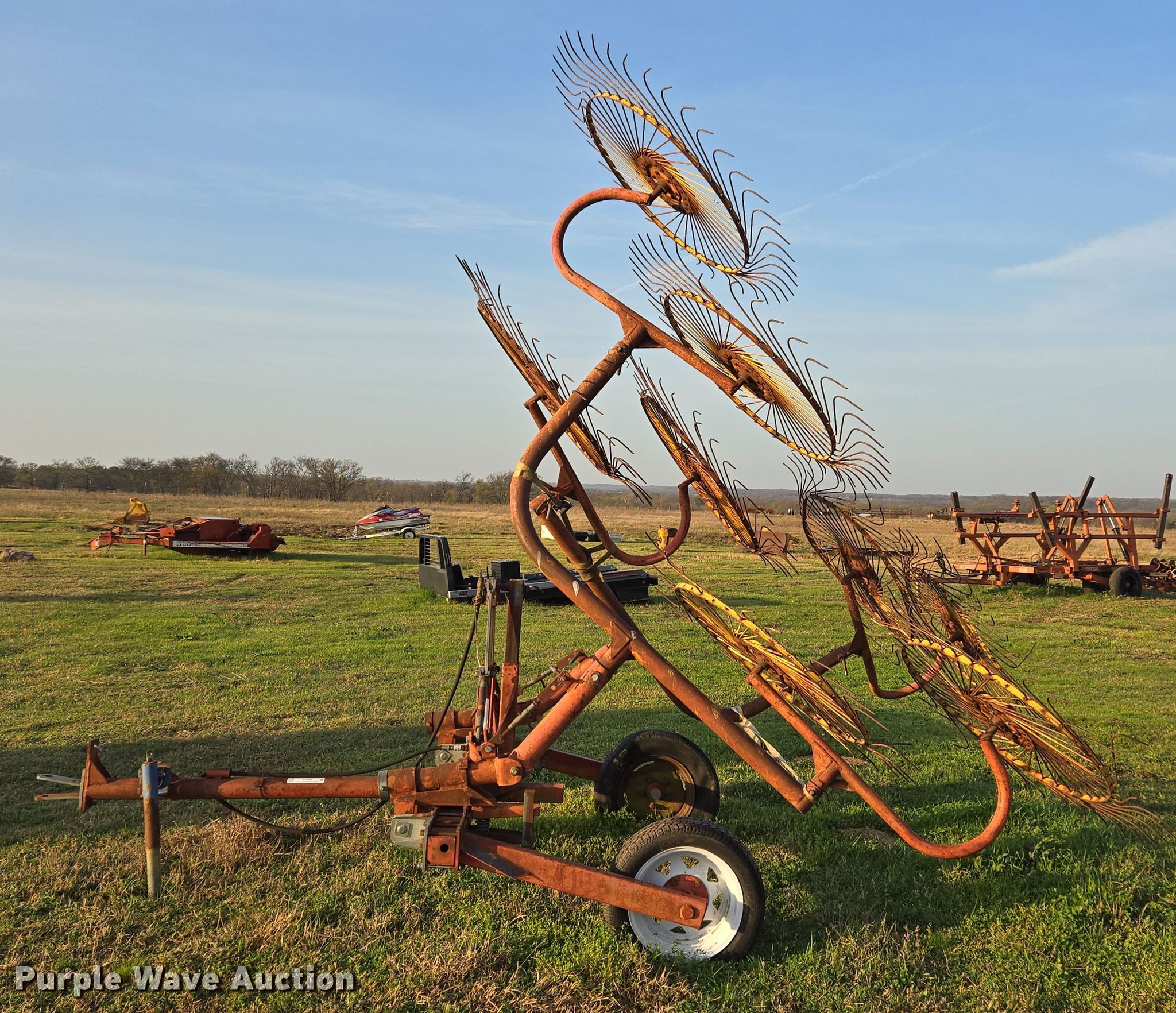 Purple Wave is selling a used Hay Rake in Oklahoma. This item is a Tonutti RCS 8 hay rake with the following: Wheels: 8, Diameter: 54", Hydraulic fold, Hitch: Pin