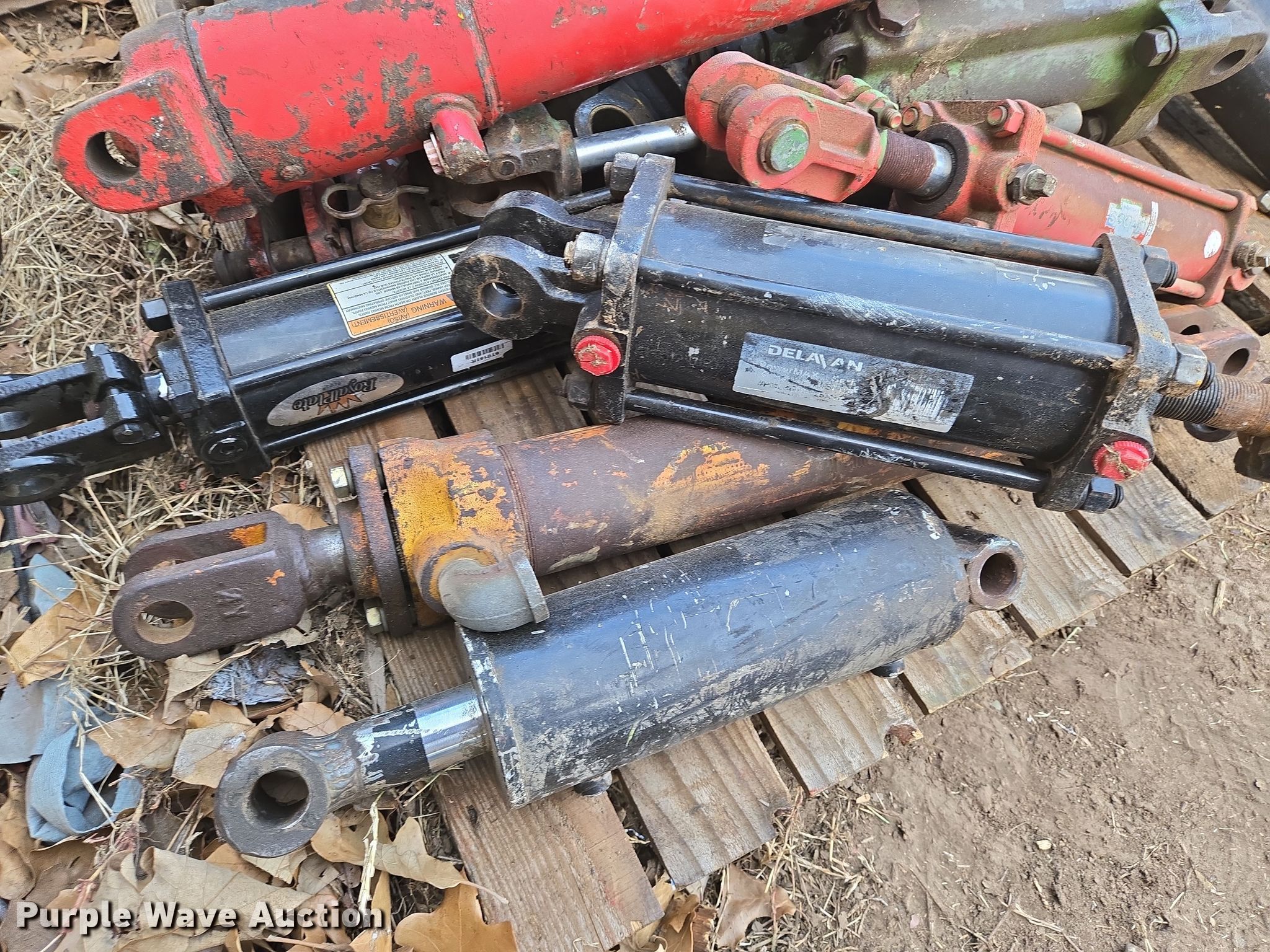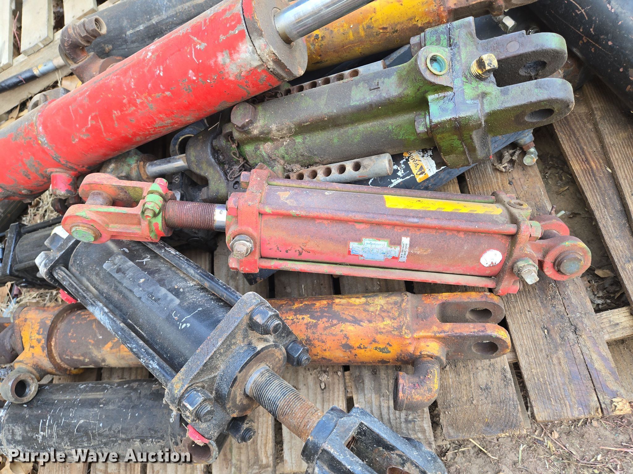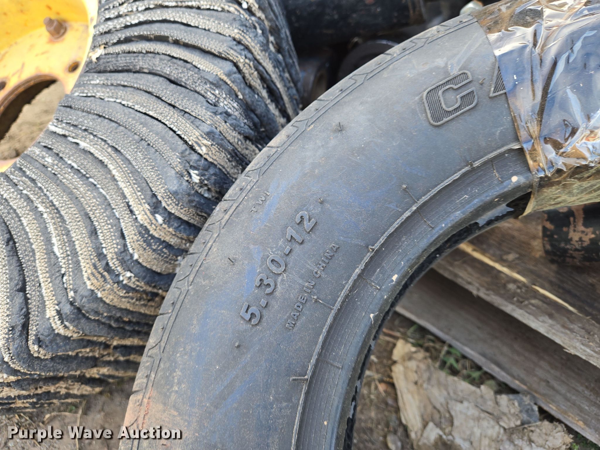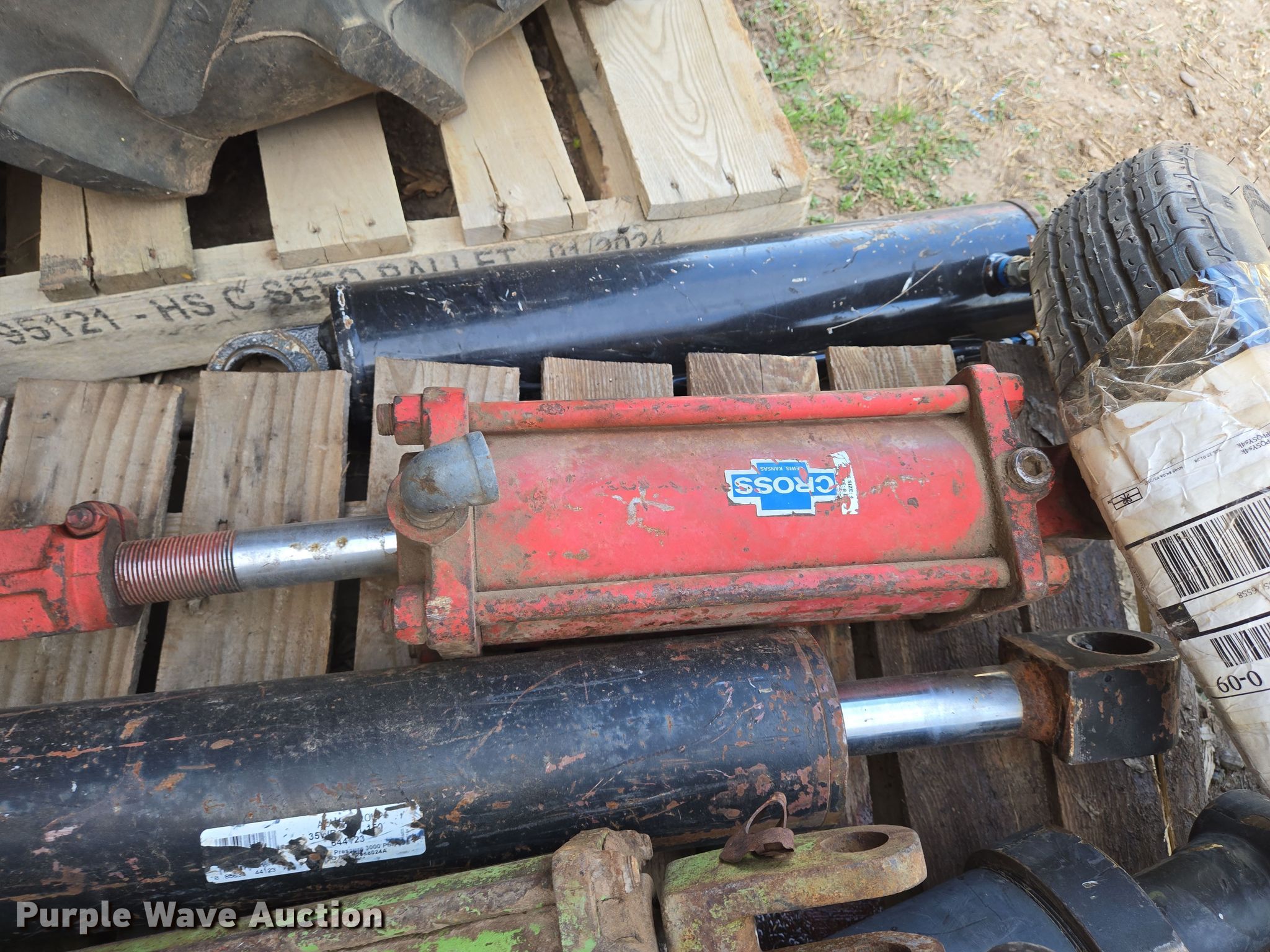Tires and wheels. (4) John Deere tires and wheels Size: 11.2-24, 20" mower tire and wheel Solid, Carlise 5.30-12 tire, Approx. 18 hydraulic cylinders. Ponca City, OK 74604
