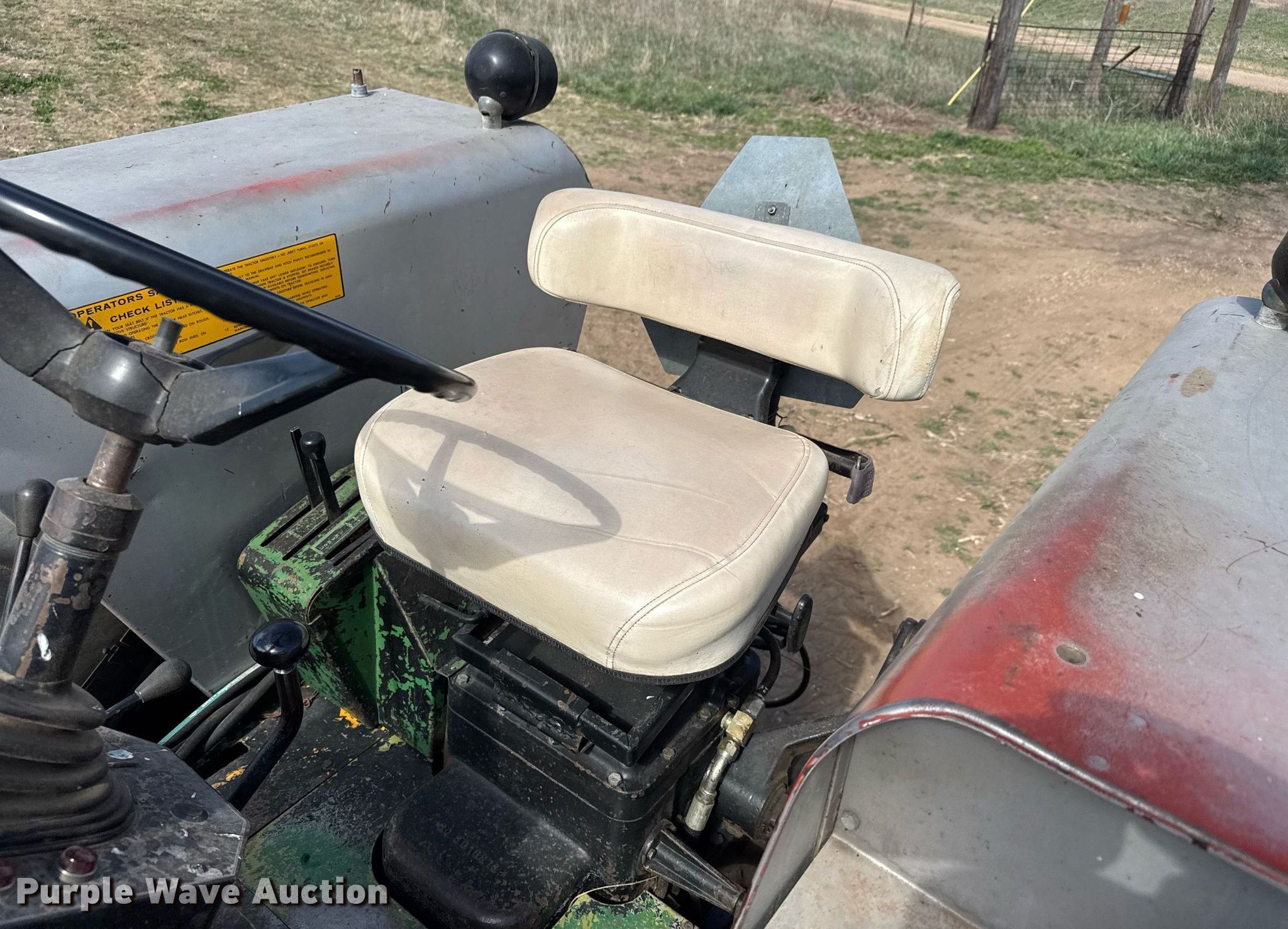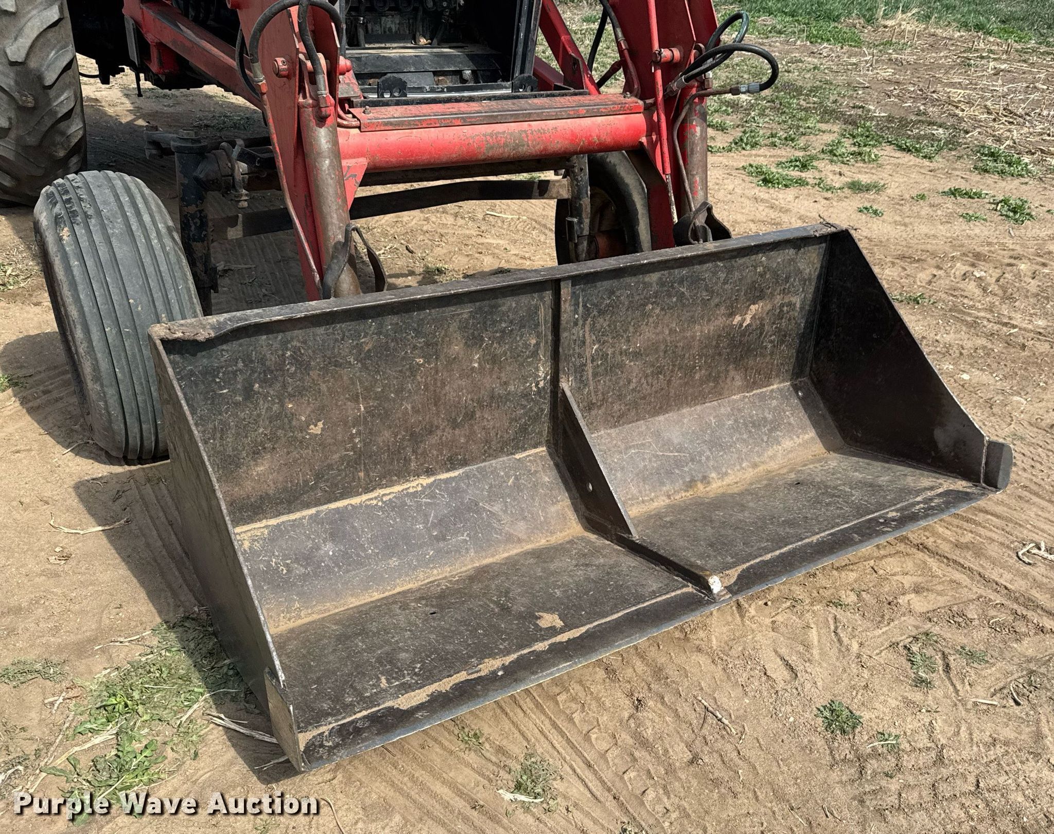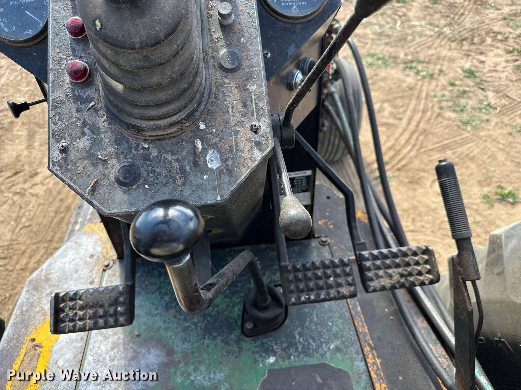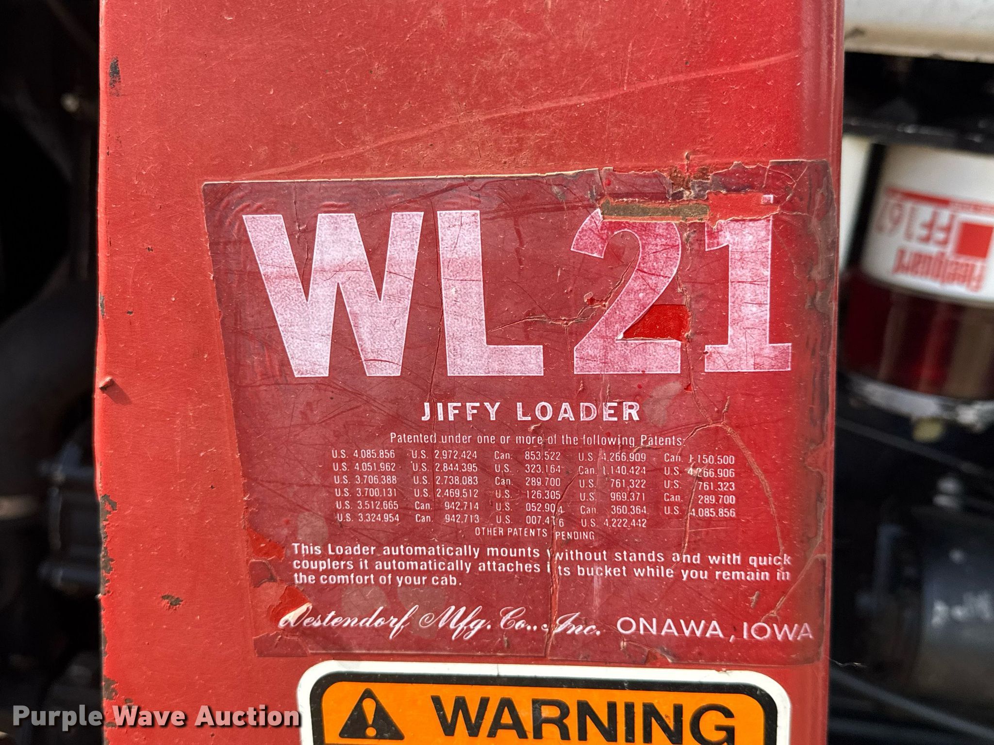 1976 White 2-85 tractor. Hours: 3,823 on meter, Serial: 270460-408. Engine Cylinders: 6, Fuel type: Diesel. Transmission Powershift, 18F - 6R. Features PTO: 540, Three point Top link, Hydraulic remote sets Rear: 2, Loader Westendorf WL21, Controls: Two-lever, Bucket Width: 74".. Tires Front: 11L-15, Rear: 18.4-38. Notes Clutch issues. Marquette, KS 67464