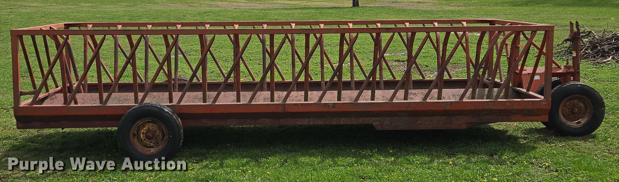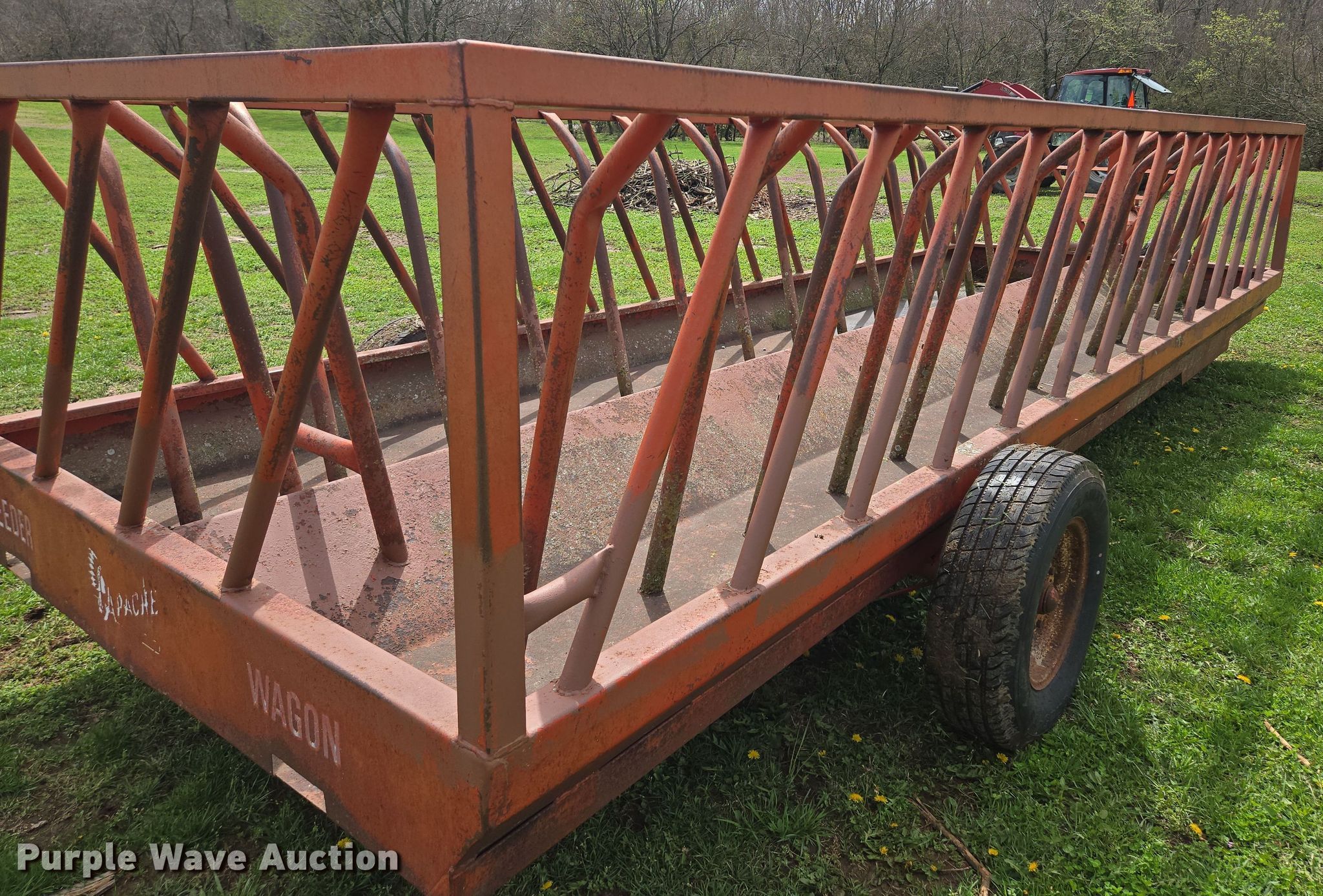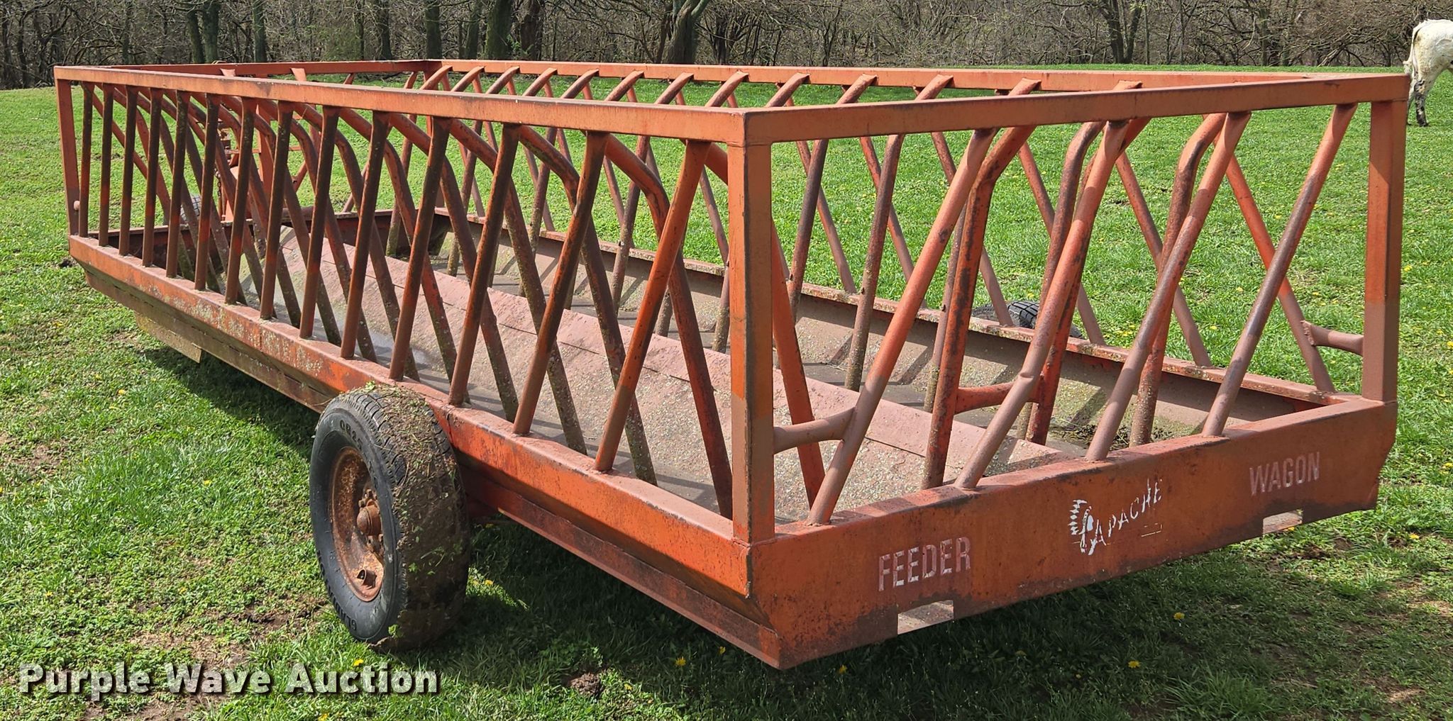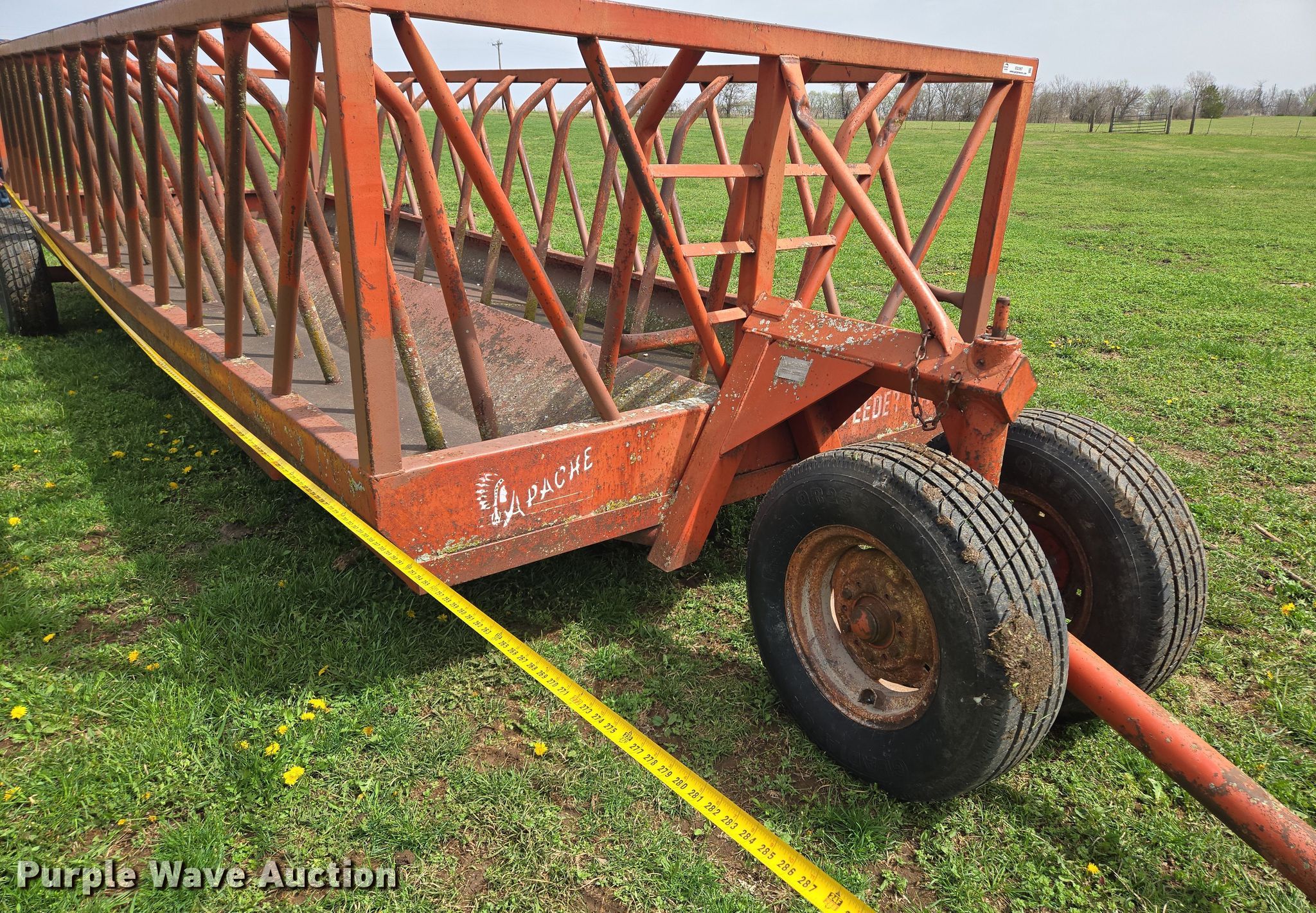 Apache hay bale feeder. VIN: 0810192. Dimensions Overall: 26' L x 104" W, Body: 20' L x 82" W. Features Body type: Steel. Tires Steel wheels, Size: 225/75R15. Austin Fitterling. Centerview, MO 64019