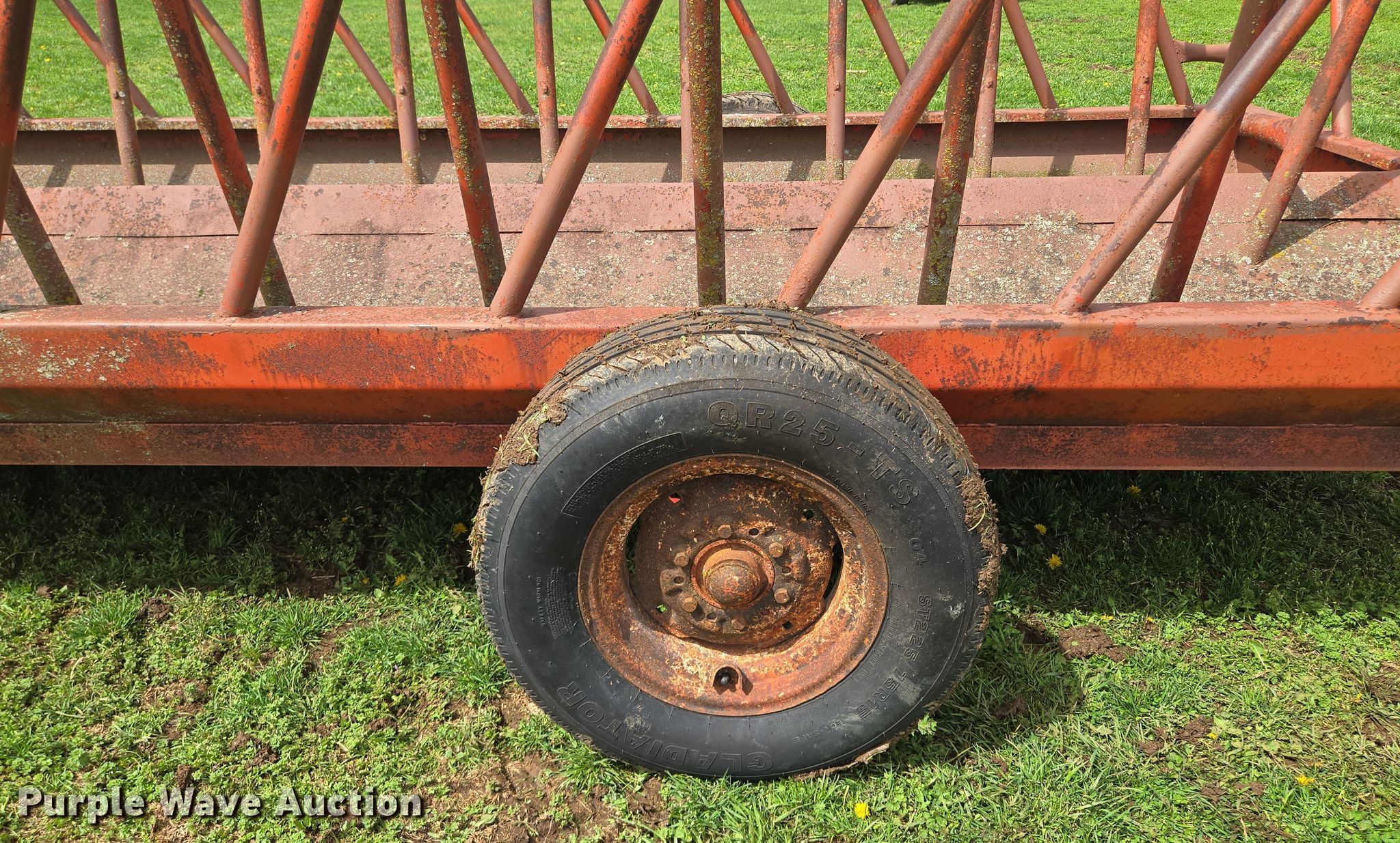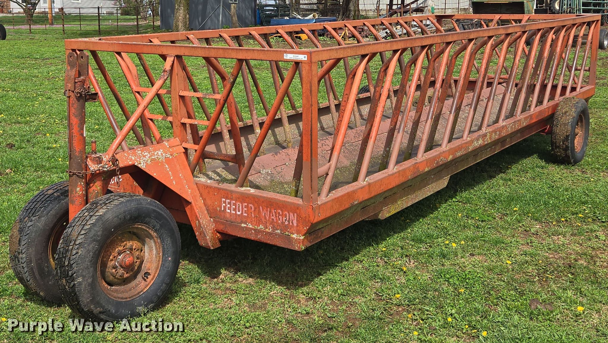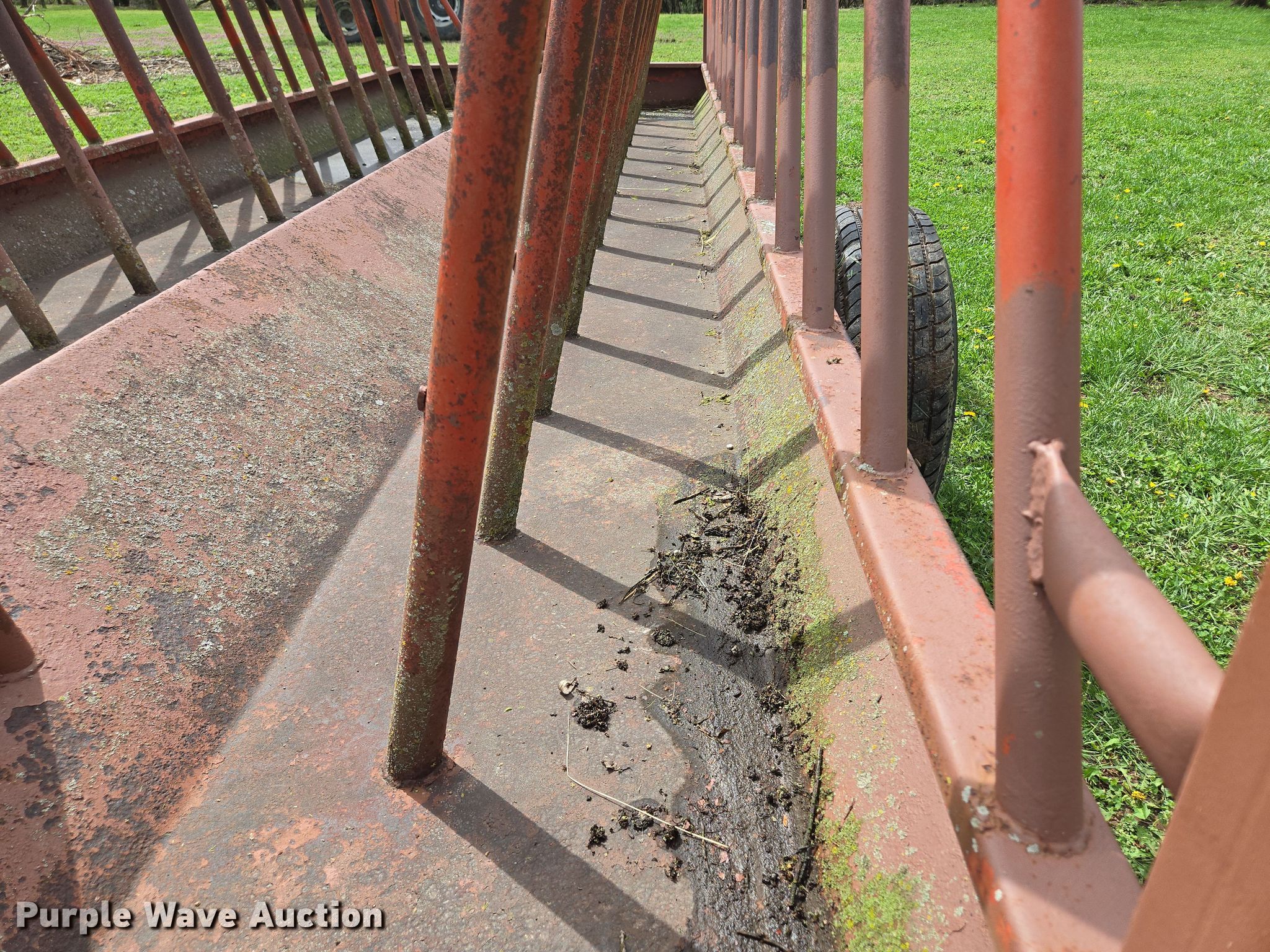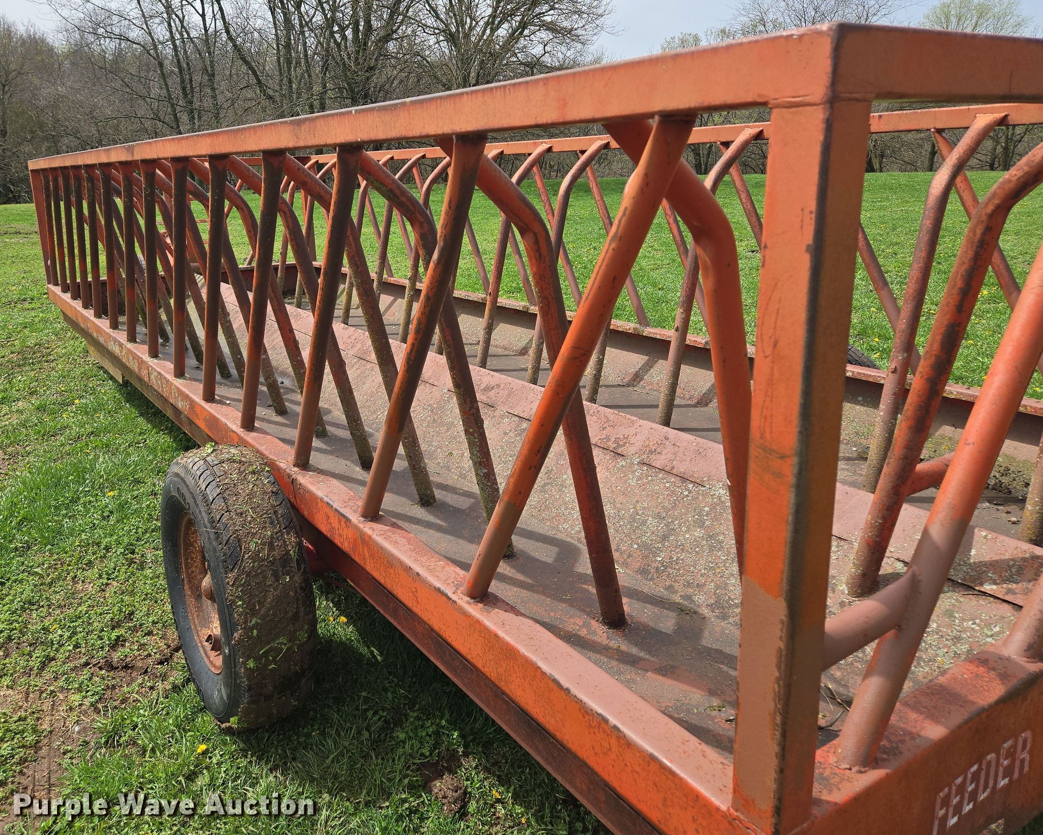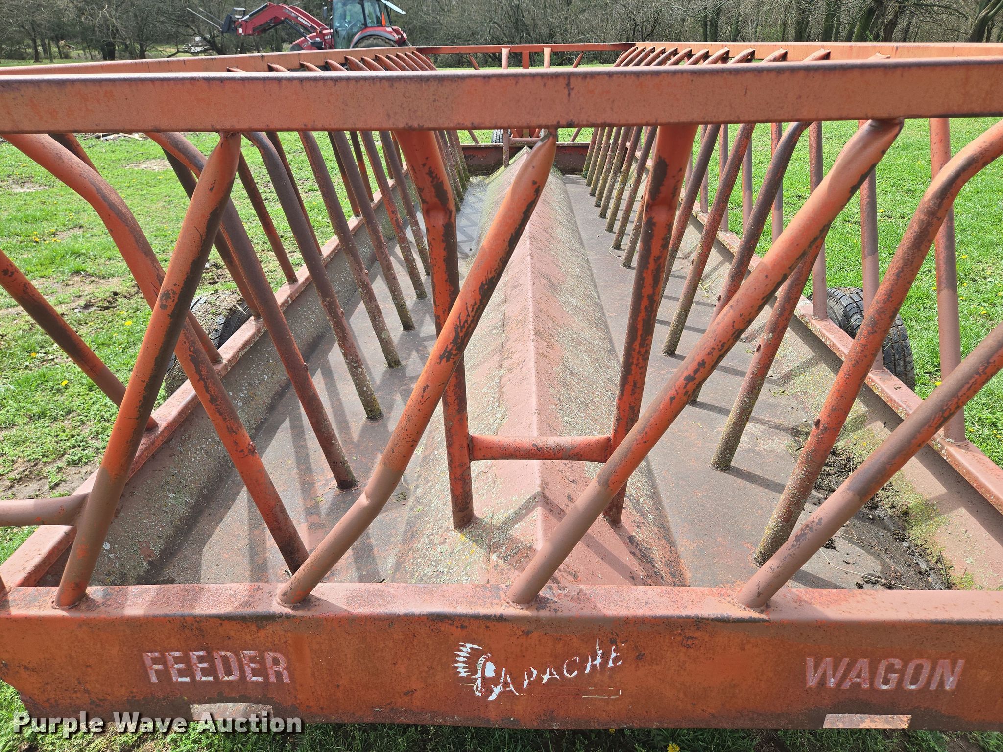 Apache hay bale feeder. VIN: 0810192. Dimensions Overall: 26' L x 104" W, Body: 20' L x 82" W. Features Body type: Steel. Tires Steel wheels, Size: 225/75R15. Austin Fitterling. Centerview, MO 64019