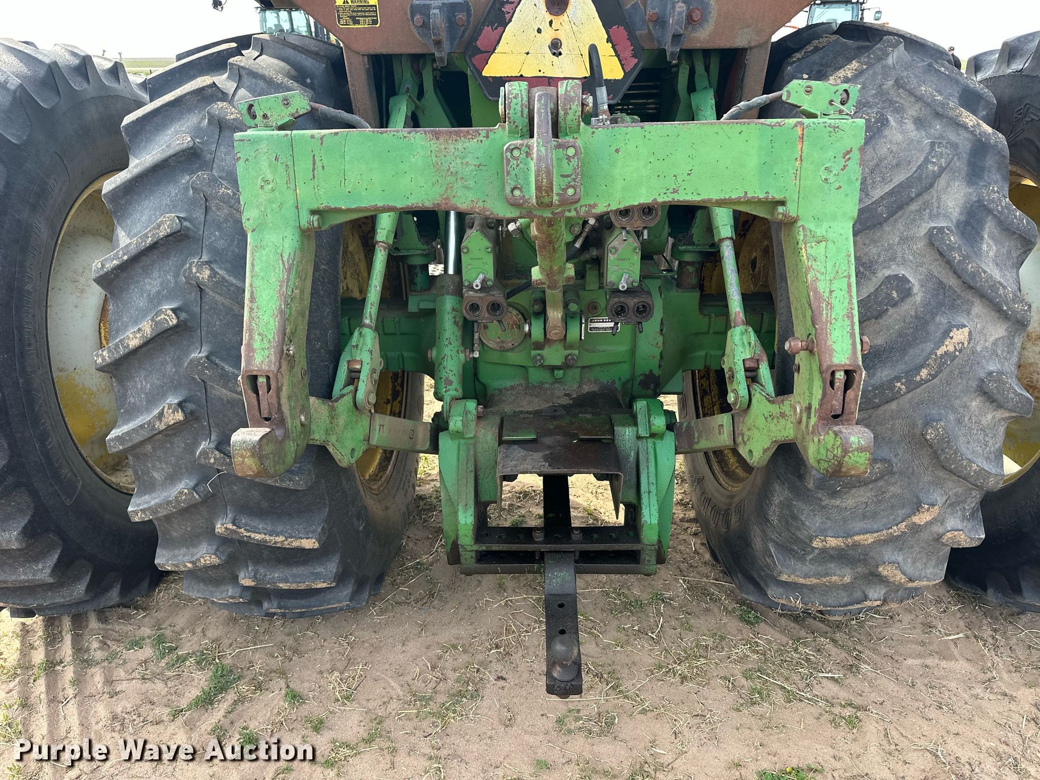 1979 John Deere 4640 tractor. Hours: 2,933 on meter, Serial: 4640P011581R. Engine John Deere 6466T, Displacement: 7.6L, Cylinders: 6, Fuel type: Diesel. Transmission Powershift, 8F - 4R, Differential lock. Operators station AC, Heat. Features PTO: 1 3/4" 1000, Three point Top link, Quick attach, Hydraulic remote sets Rear: 3, Suitcase weights: 10, Loader Controls: Two-lever. Tires Front: 11.00-16, Rear: 18.4R38, Duals. Estate of David E. McClaren. Lewis, KS 67552