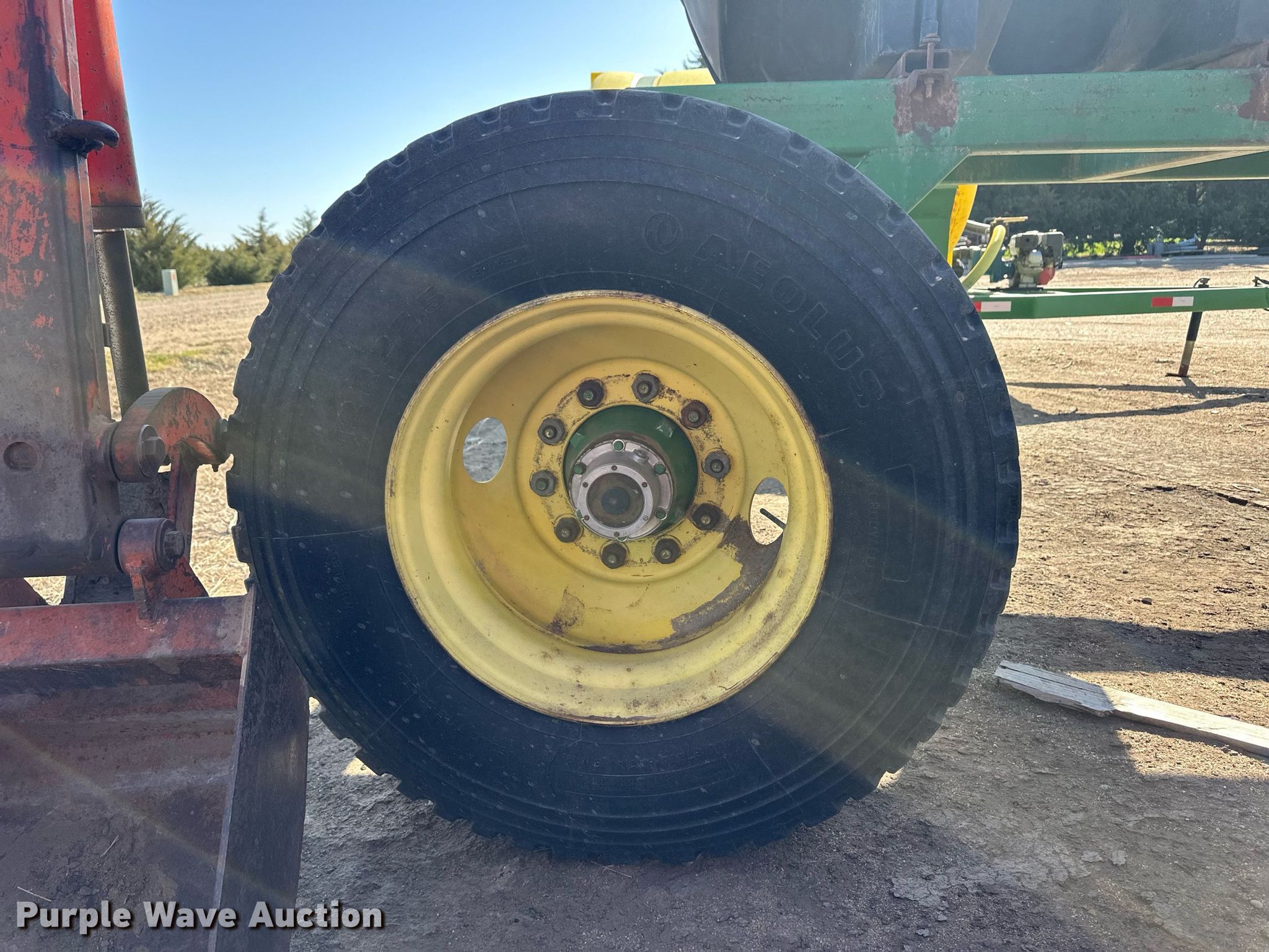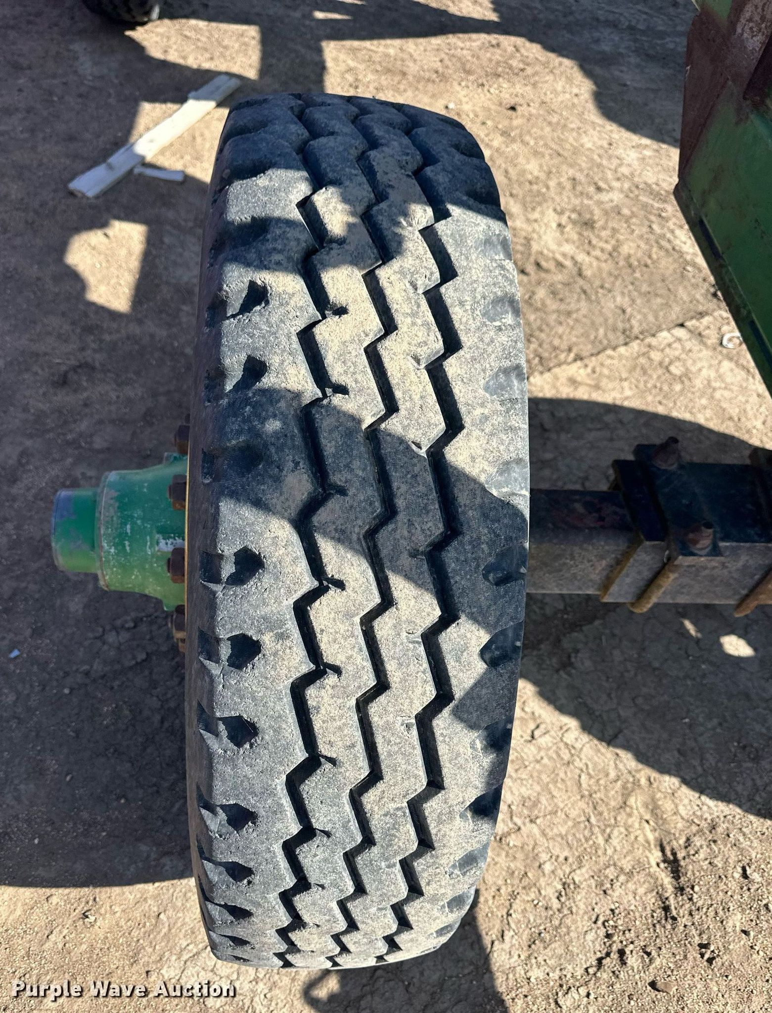 Nurse tank trailer. Dimensions. Overall: 19' L x 128" W. Features Tank type: Poly Capacity: 1,000 gallons, Sight glass. Chassis Landing gear: Single. Tires Steel wheels, Size: 12R22.5. Sublette, KS 67877