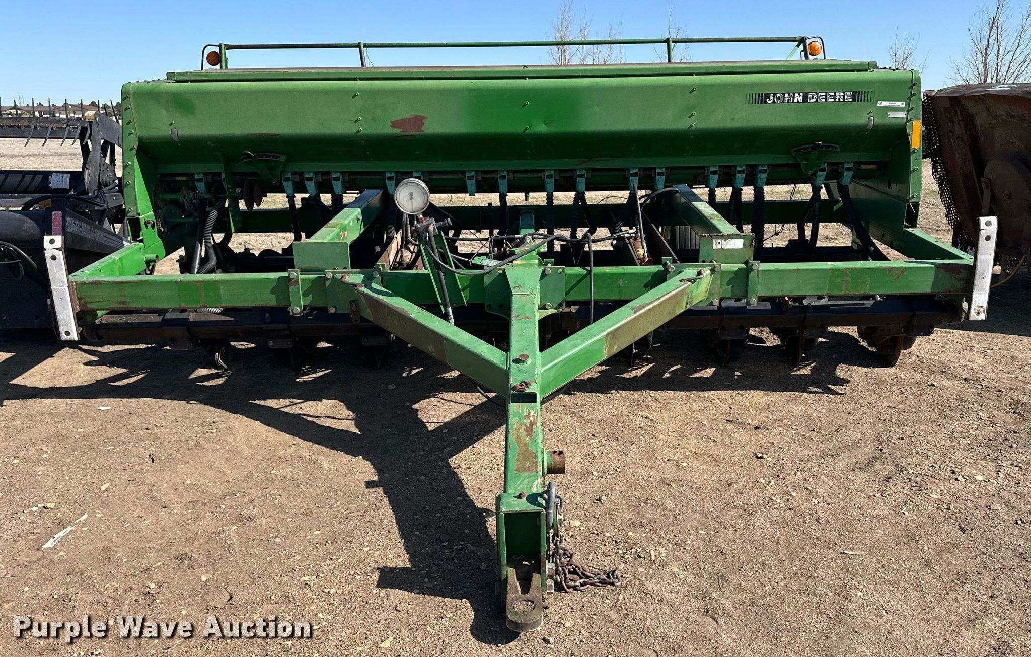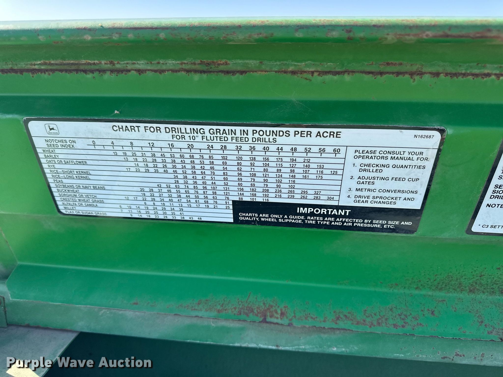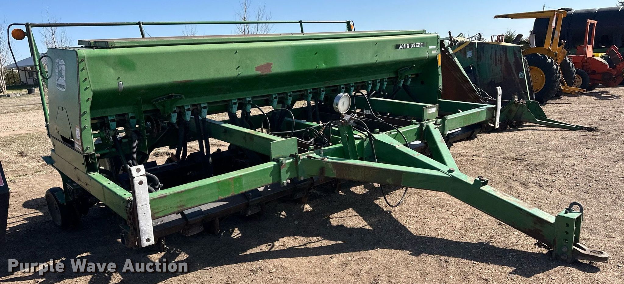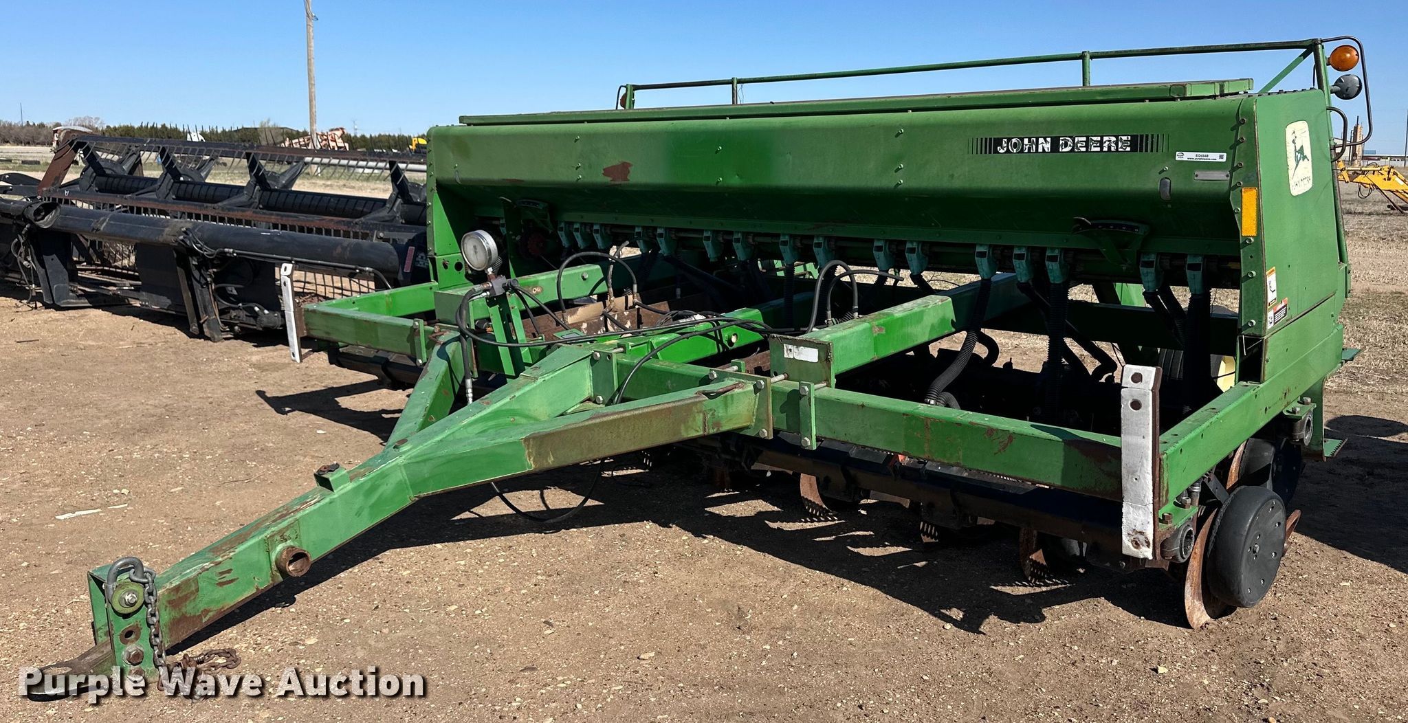 Purple Wave is selling a used Grain Drill or Seeder in Kansas. This item is a John Deere 750 grain drill with the following: Width: 15', Row units: 18, Row spacing: 10", Serial: N00750X014103