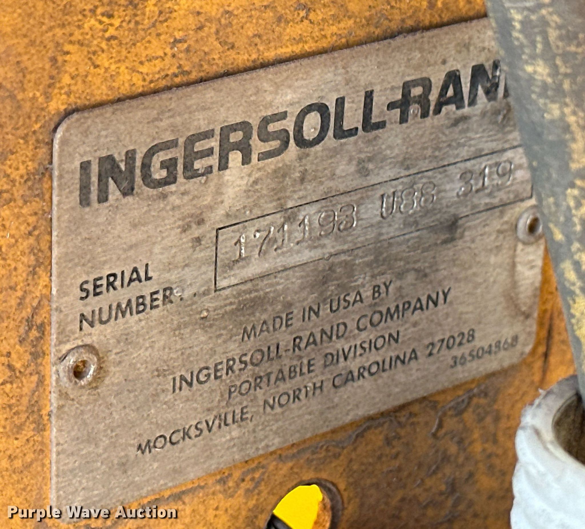 Purple Wave is selling a used Air Compressor in Kansas. This item is a Ingersoll Rand air compressor with the following: Hours: Unknown, Serial: 171193U88319