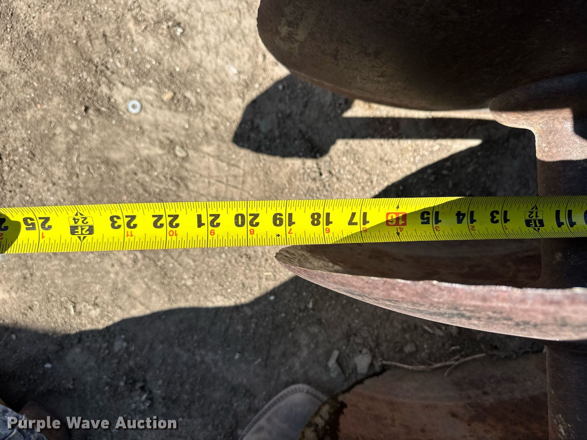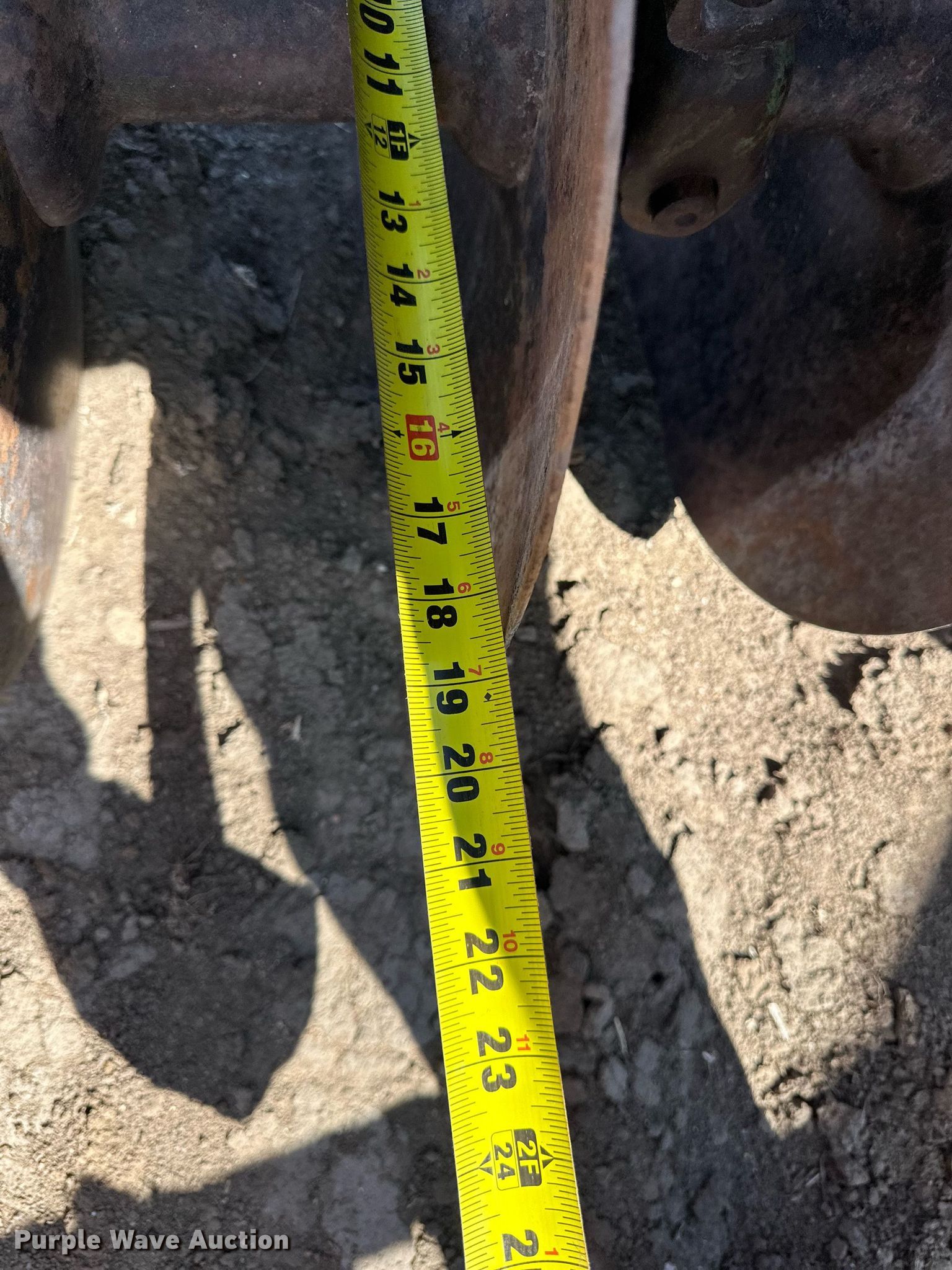 Tandem disk. Overall width: 15'. Features Front blades Diameter: 19", Spacing: 7", Rear blades Diameter: 19", Spacing: 7", Attachments Hitch: Three point. Sublette, KS 67877