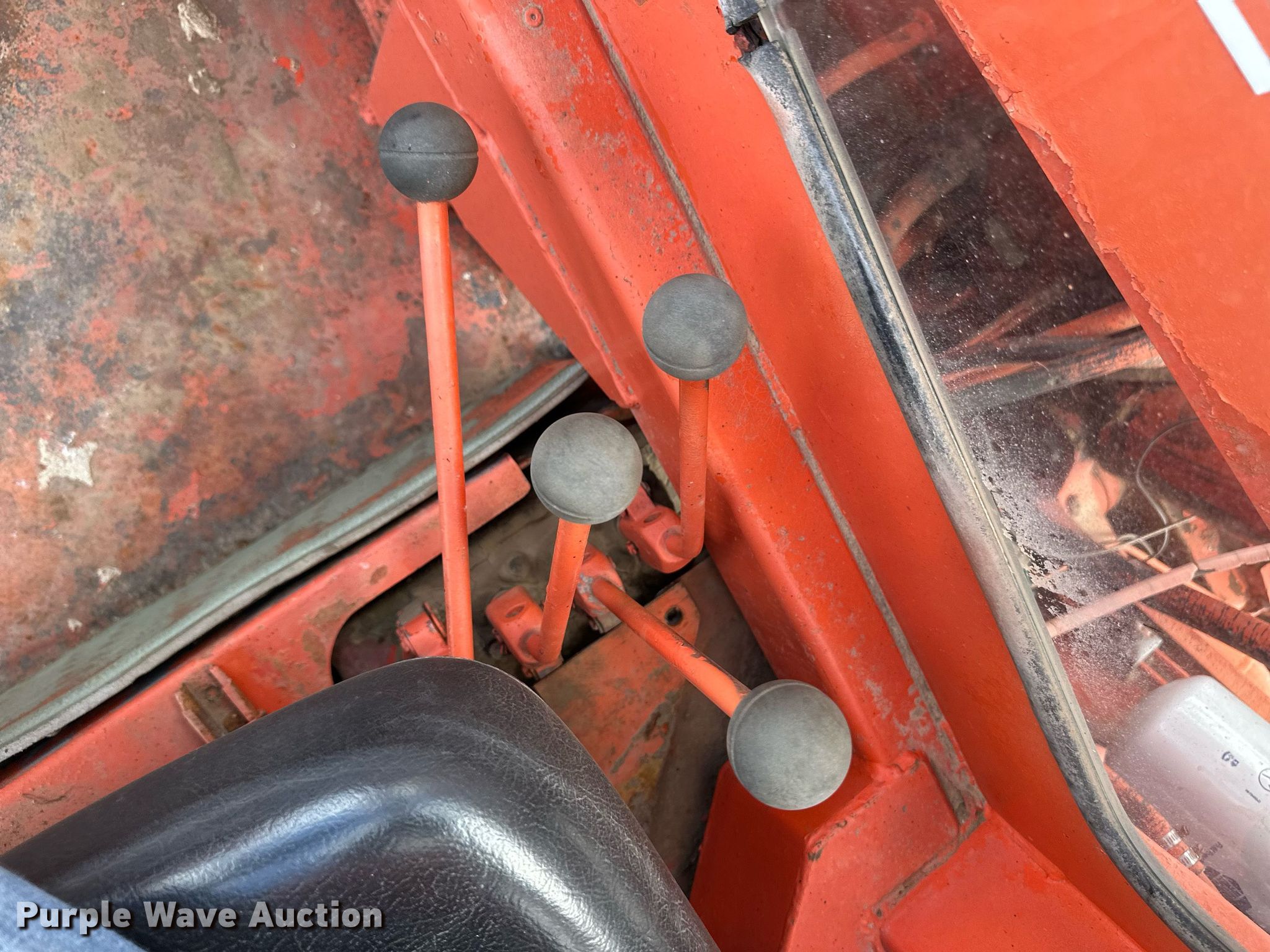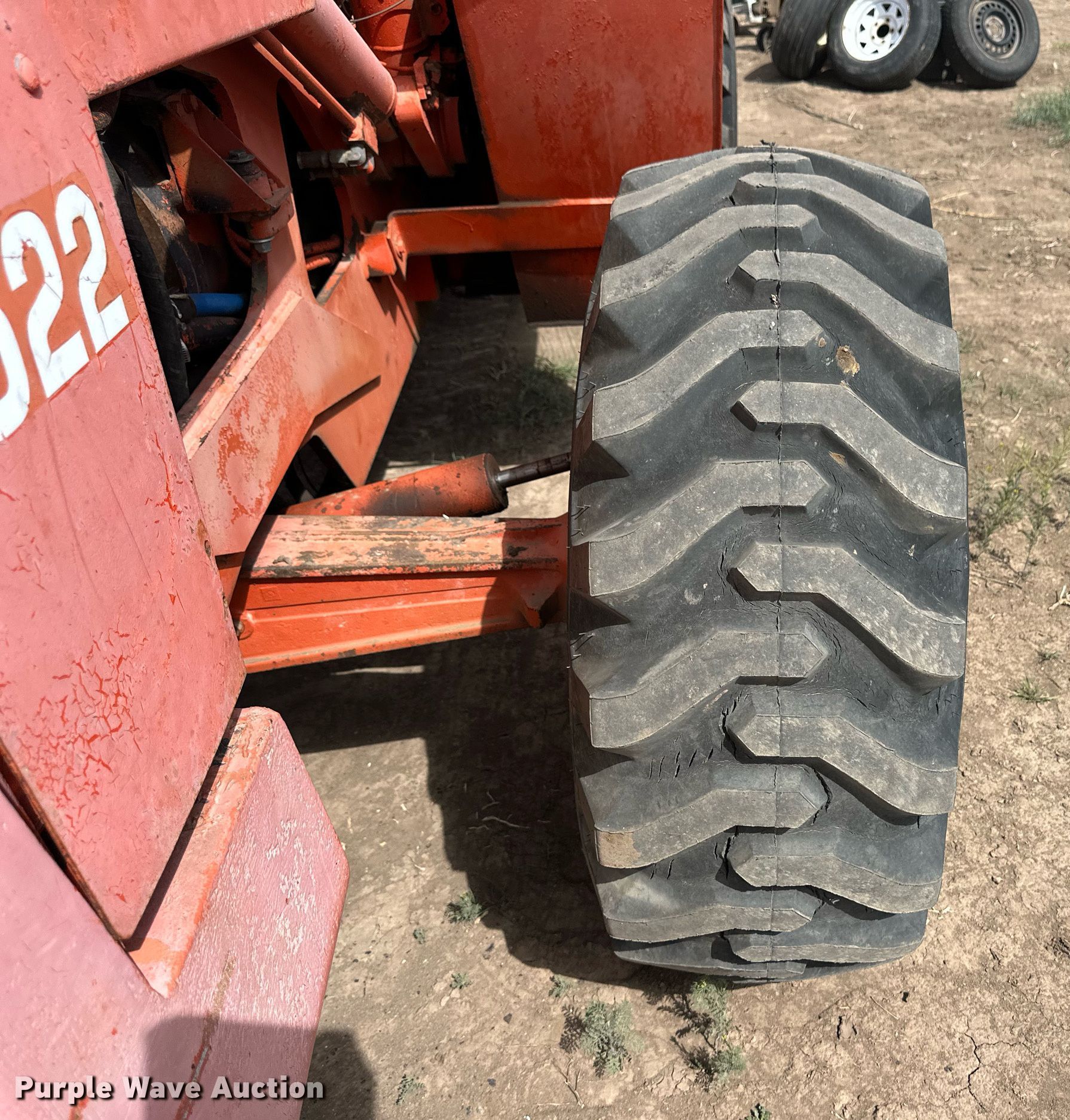 Koehring 5522 telehandler. Serial: 6G5188. Engine Cylinders: 4, Fuel type: Diesel. Transmission Powershift, 2F - 2R, Four wheel drive. Operators station Canopy, Steering: Crab. Features Maximum lift capacity: 5,500 lbs, Maximum lift height: 21.5', Boom stages: 2, Fork length: 48", Quick attach: Manual. Tires Size: 15-10.5. Notes Non-operational parking brake. Plains, KS 67869