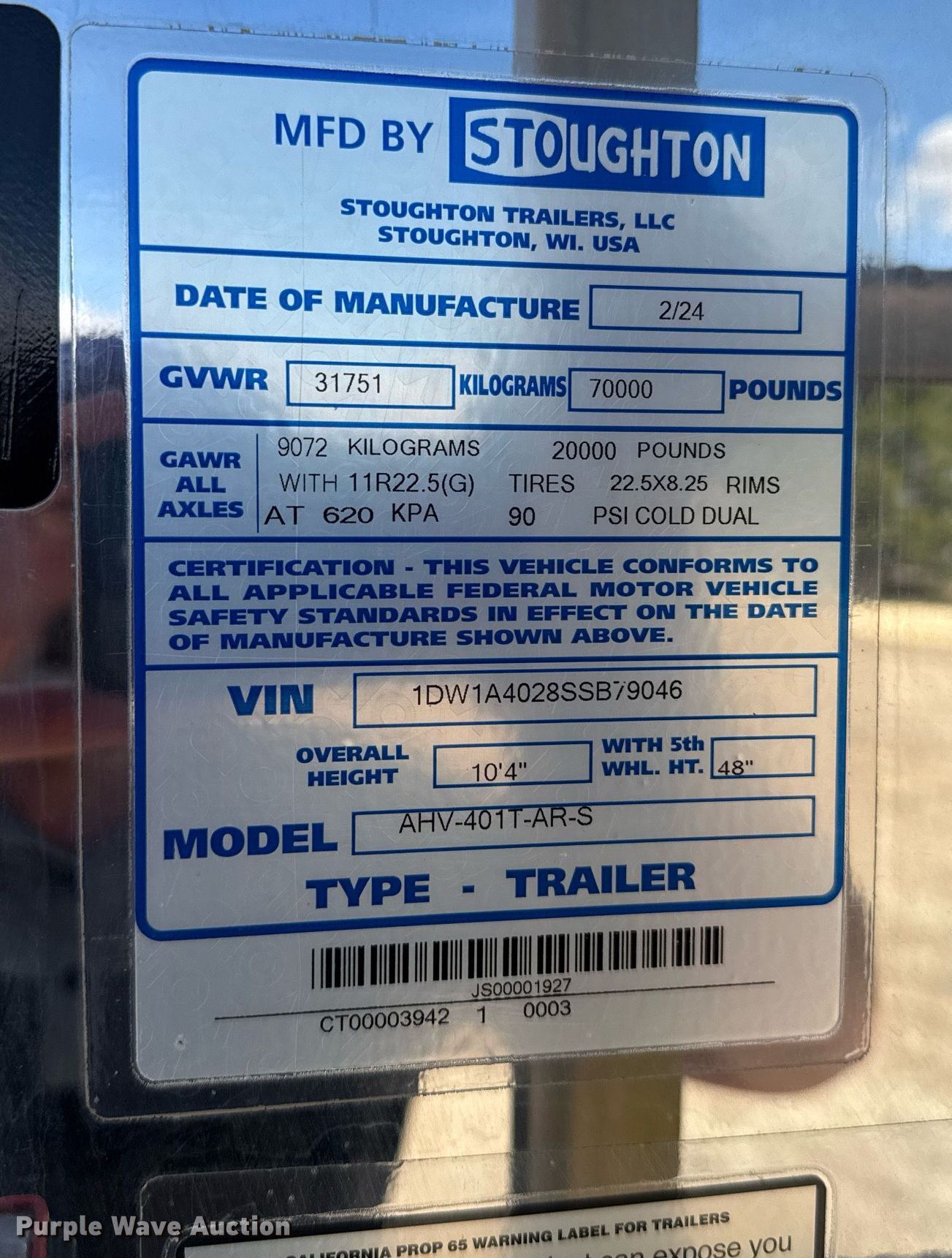 Purple Wave is selling a used Grain or Commodity Trailer in Kansas. This item is a 2025 Stoughton AHV-401T-AR-S grain trailer with the following: VIN: 1DW1A4028SSB79046
