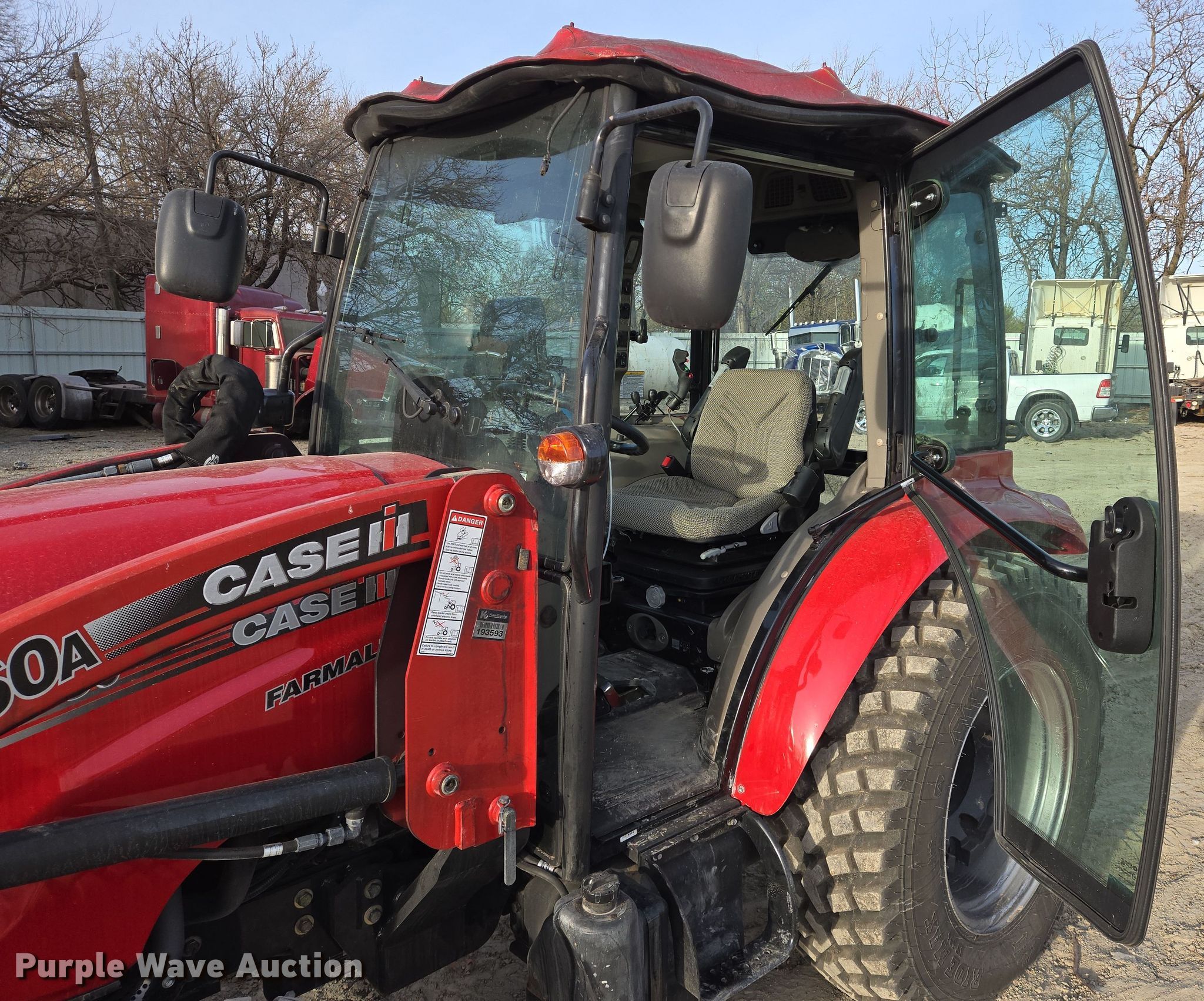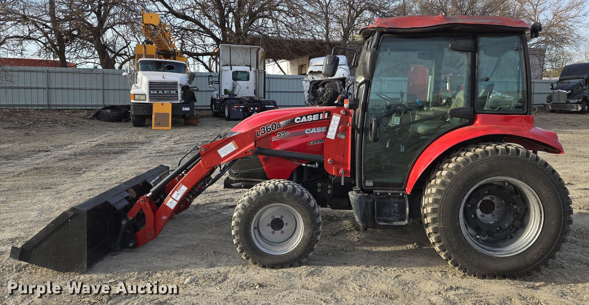 2024 Case Farmall 55C MFWD tractor. Hours: 43 on meter, Serial: LSMF55CCKR0020145, Unit #: 48807925. Engine Cylinders: 3, Fuel type: Diesel. Transmission Hydrostatic. Operators station AC, Heat. Features PTO: 540, Three point, Hydraulic remote sets Rear: 4, Loader Case L360A, Controls: Joystick, Bucket Width: 72".. Tires Front: 260/70R16, Rear: 360/80R24, Wheel weights: 2. Notes Roof damaged. Insurance salvage, stored at a secured facility. Please review REQUIRED REMOVAL INSTRUCTIONS. Insurance Salvage. Wichita, KS 67216