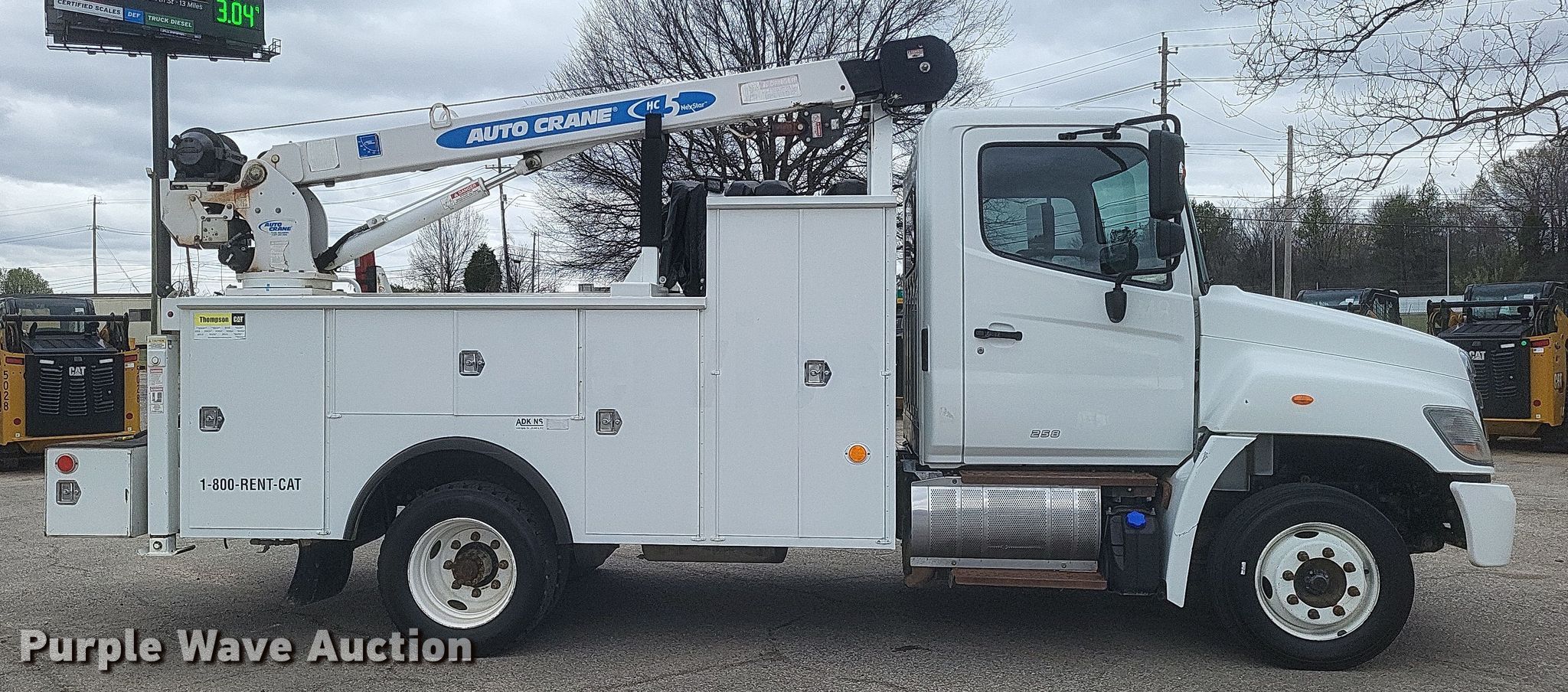 2018 Hino 268 utility / service truck. Miles: 187,889 on odometer, VIN: 5PVNE8JG1J4S50066, Unit #: 258. Engine J08E, Cylinders: 6, Fuel type: Diesel. Transmission Automatic. Chassis Axles: Single, Suspension: Spring, Brakes: Hydraulic, PTO, GVWR: 25,500 lbs. Interior AC, Heat, Heated mirrors, Power windows, Cruise control, Auxiliary controls. Features Bed Adkins 133-94-CB, 11' 1" L x 7' 10" W, Torch bottle rack Tanks not included, Generator Vanair, Fuel type: Diesel, Crane Auto Crane HC-5, Maximum boom length: 22' Maximum lift capacity: 5,000 lbs.. Tires Size: 245/70R19.5. Notes Dash warning indicator: Check engine, Windshield chipped or cracked, Dead battery. Titles will be distributed after confirmation of payment and removal. Tennessee title. Title distribution may be delayed up to 30 days from verification of funds. Thompson Machinery. Memphis, TN 38132